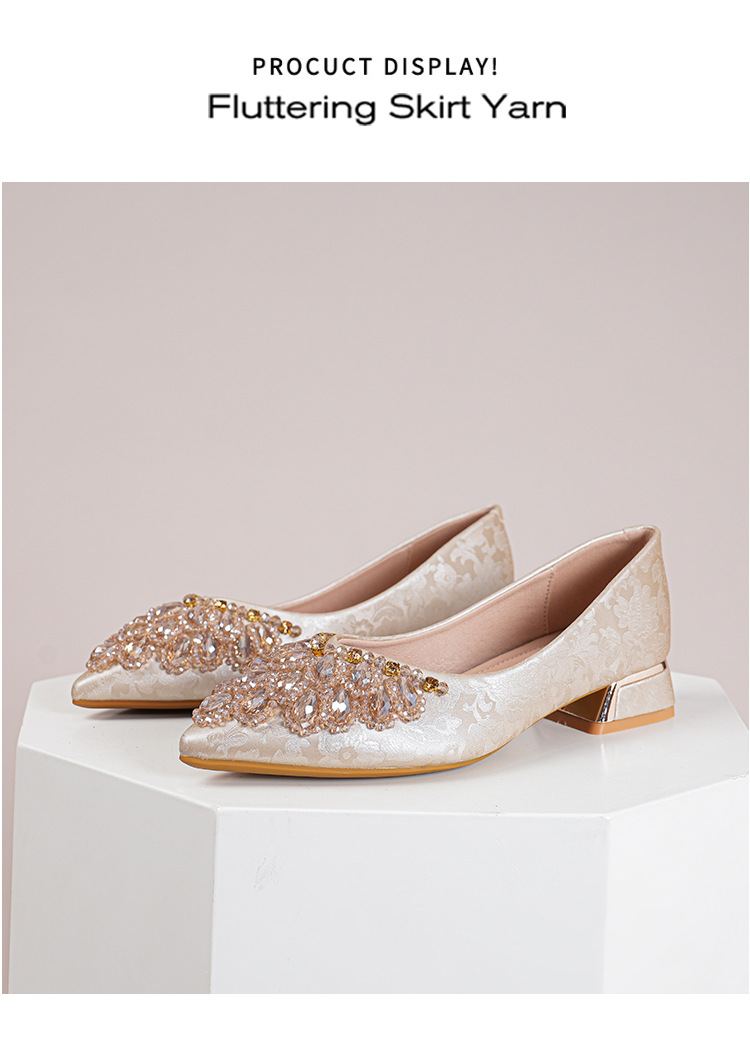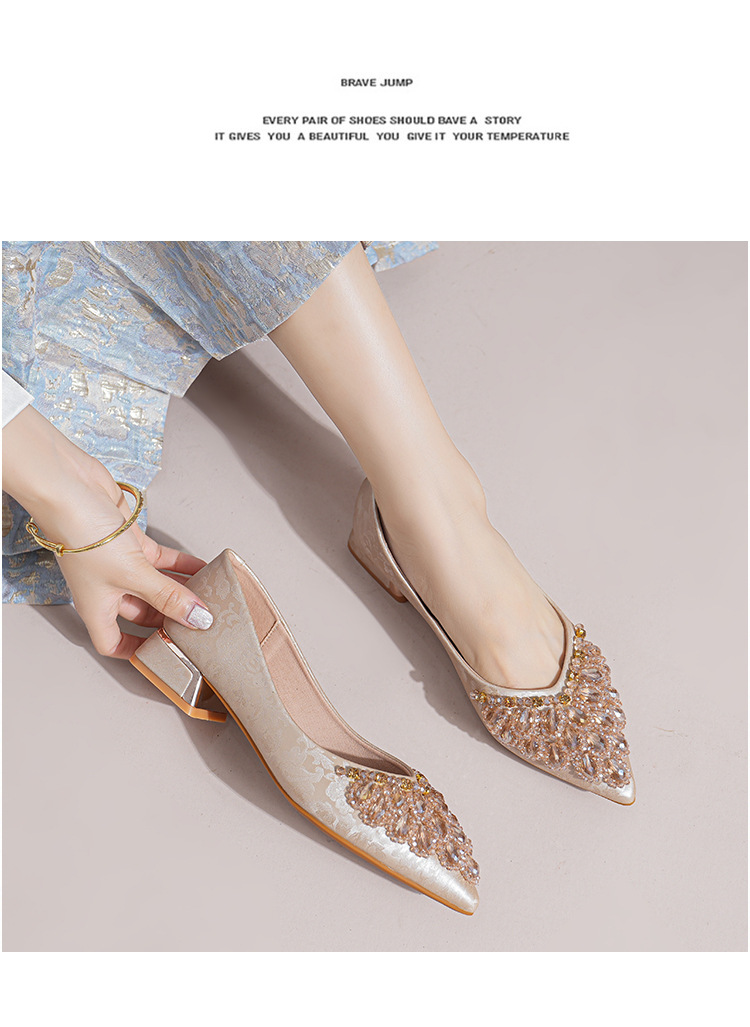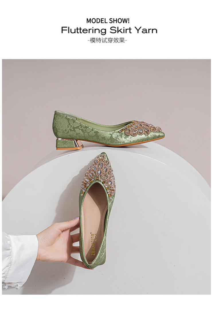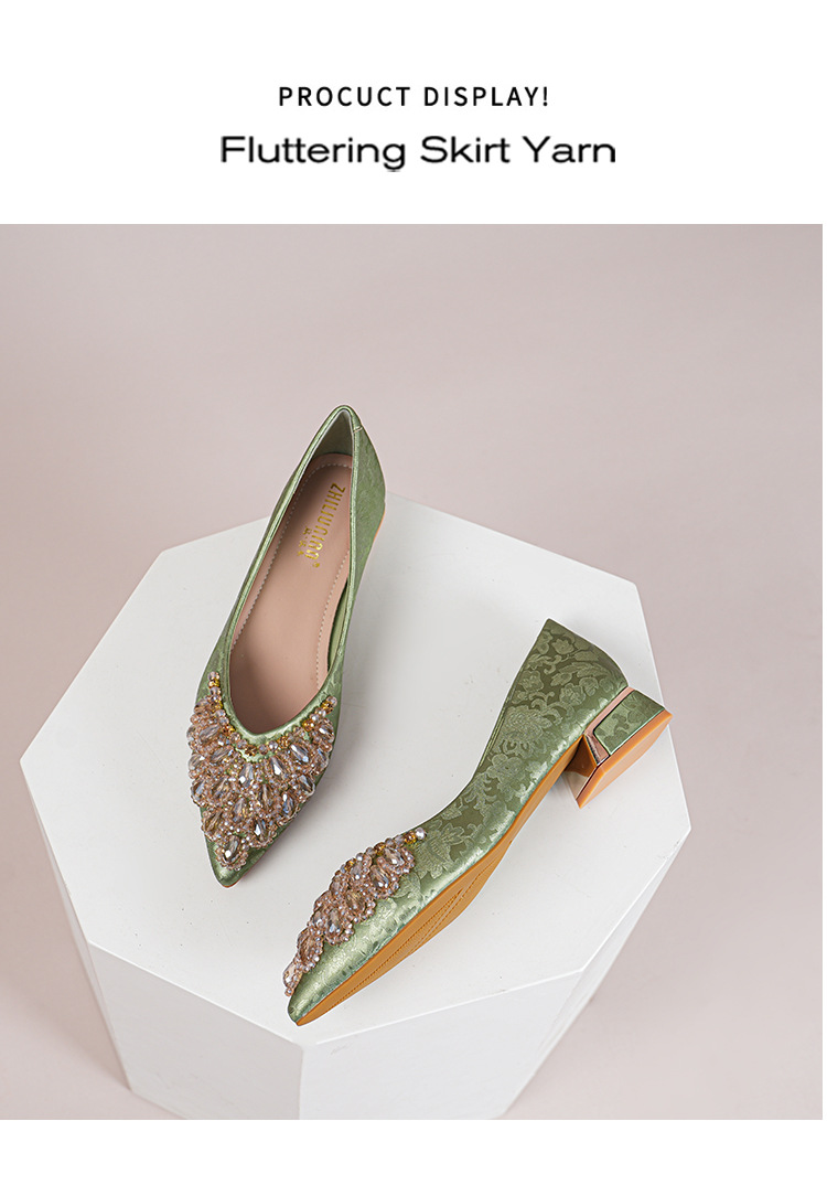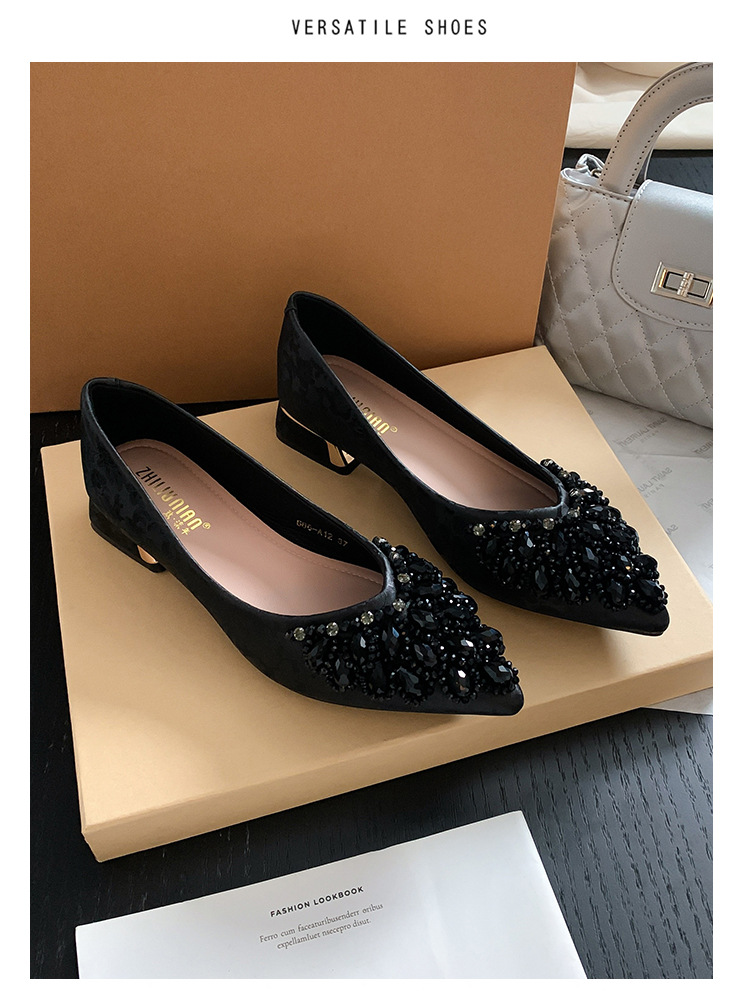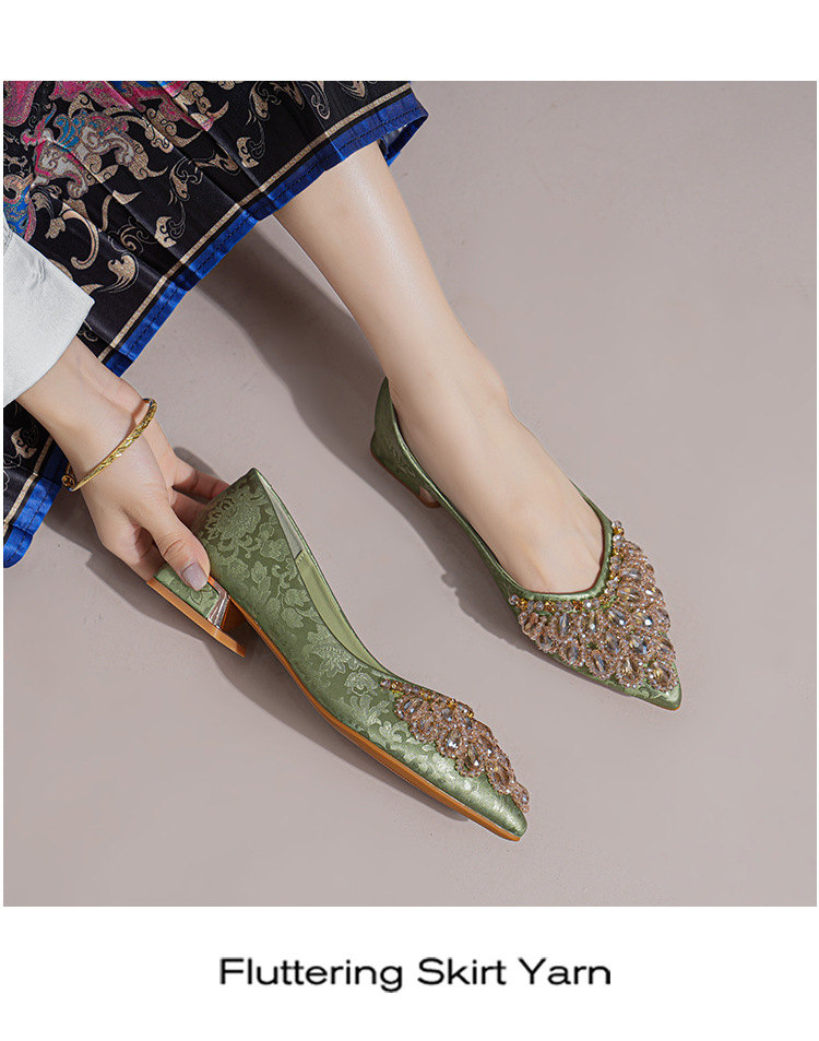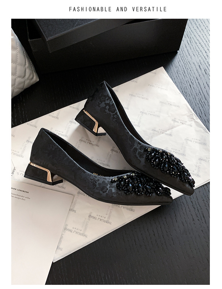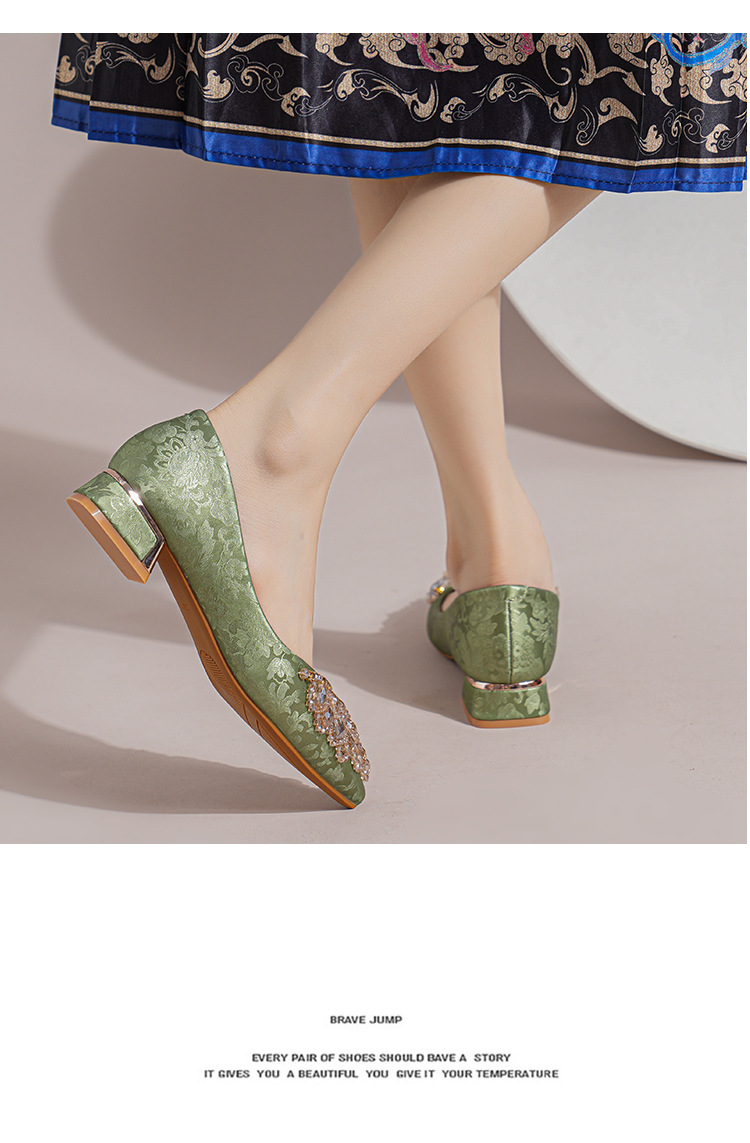 66-A2 국가 스타일 2024 새로운 중국 뾰족한 신발 두꺼운 힐 미드 힐 수제 구슬 여성 신발 패션 올 매치 여성 신발스토어 가기