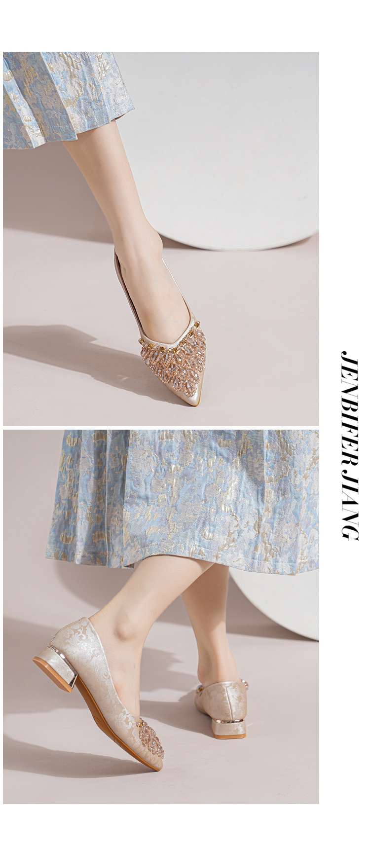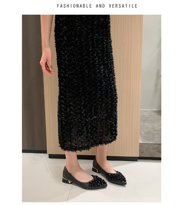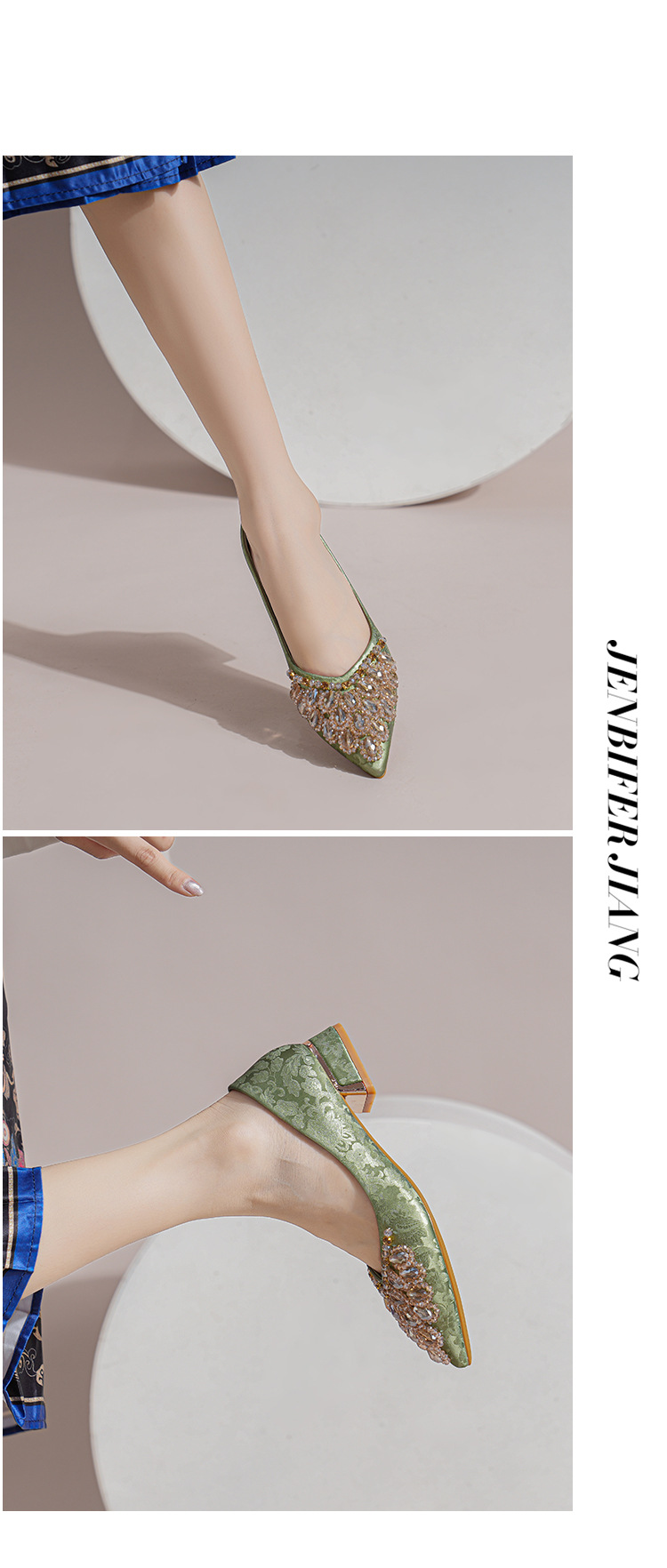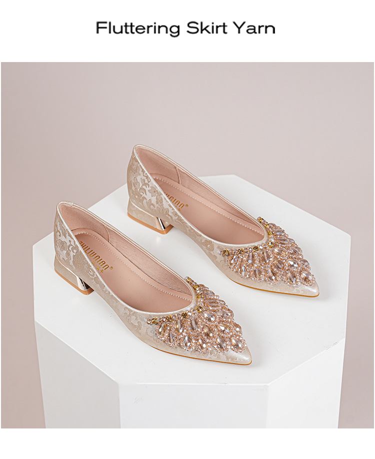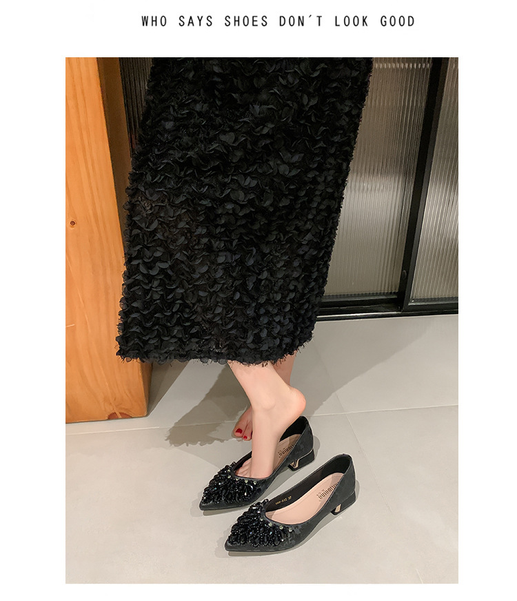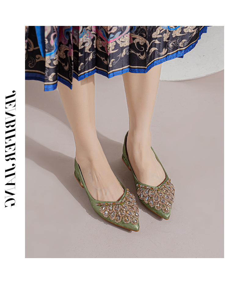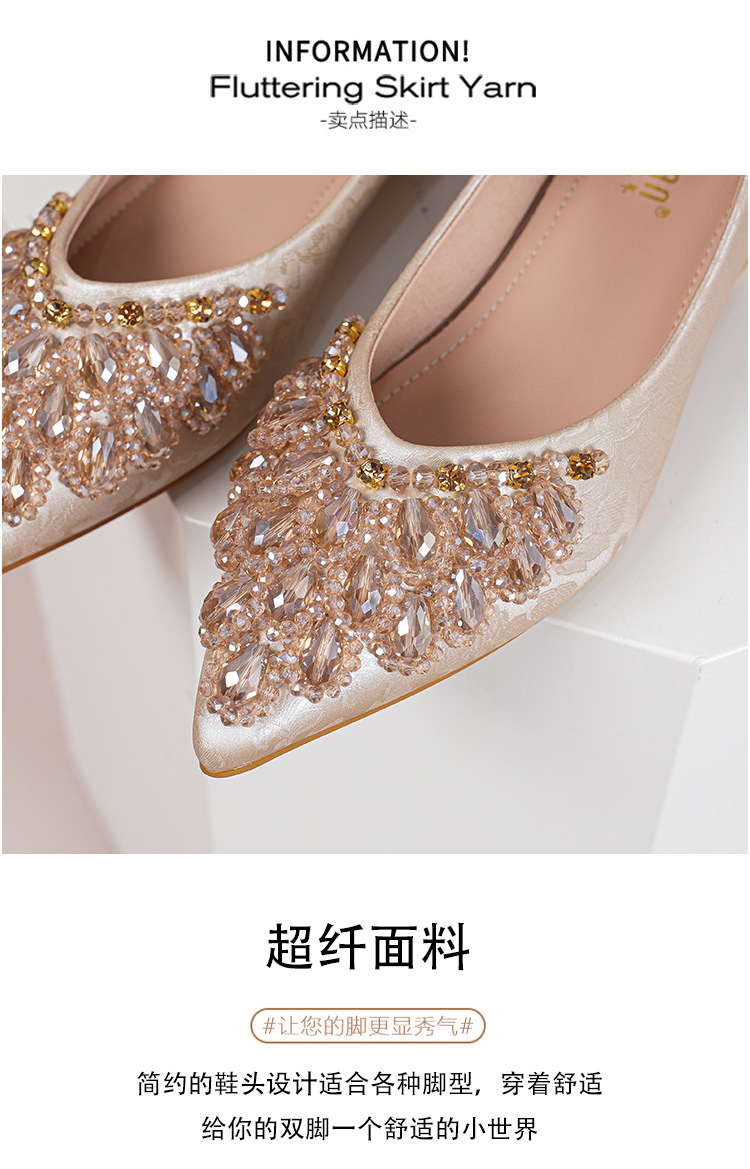 66-A2 국가 스타일 2024 새로운 중국 뾰족한 신발 두꺼운 힐 미드 힐 수제 구슬 여성 신발 패션 올 매치 여성 신발스토어 가기