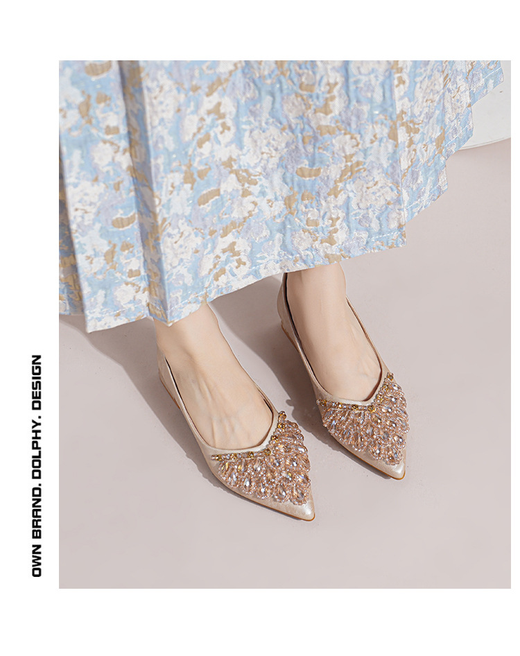 66-A2 국가 스타일 2024 새로운 중국 뾰족한 신발 두꺼운 힐 미드 힐 수제 구슬 여성 신발 패션 올 매치 여성 신발