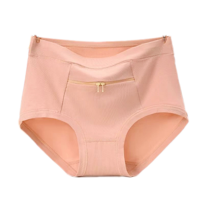 포켓 도난 방지 바지가 달린 대형 포켓 지퍼 여성용 순수 코튼 브리프 포켓 여행 머니 안티 도둑 반바지