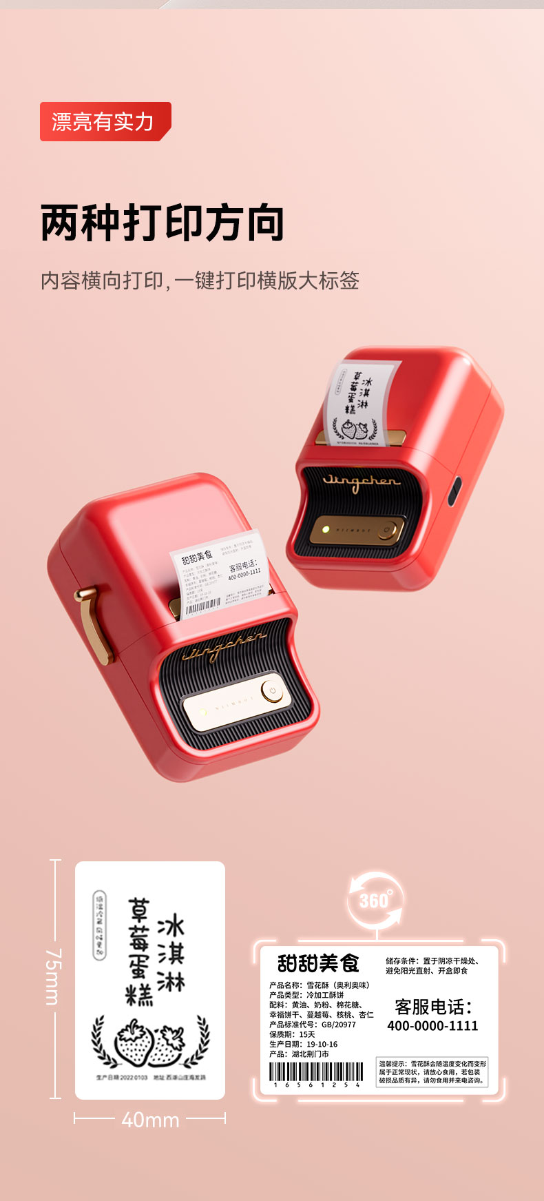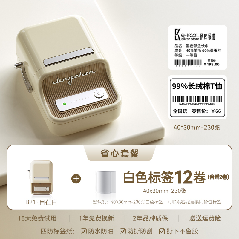 B21 라벨 프린터 휴대용 휴대용 블루투스 열 인쇄 작은 가격 태그 스티커 바코드 의류 태그 구슬스토어 가기