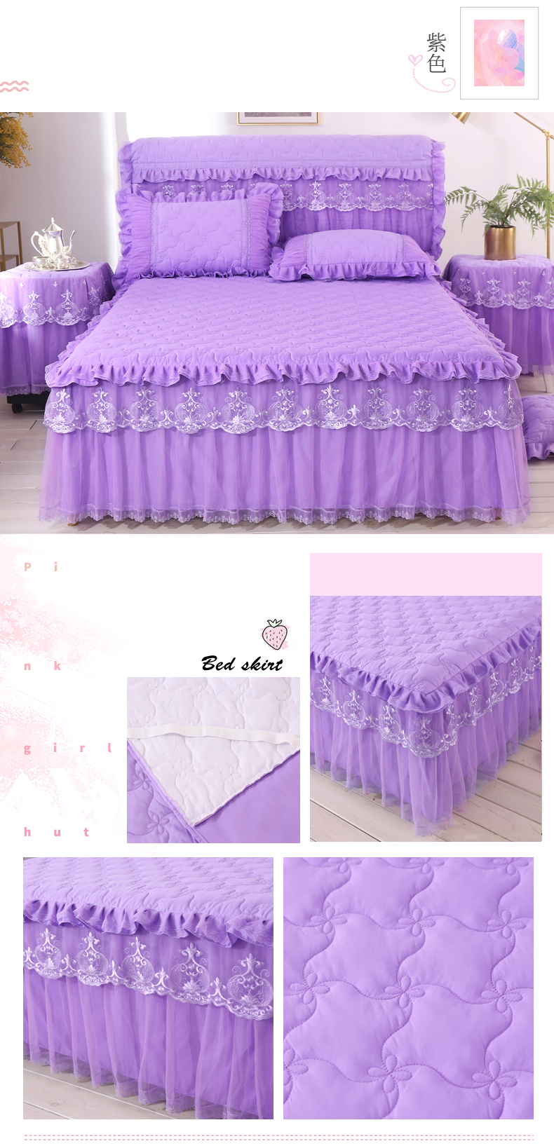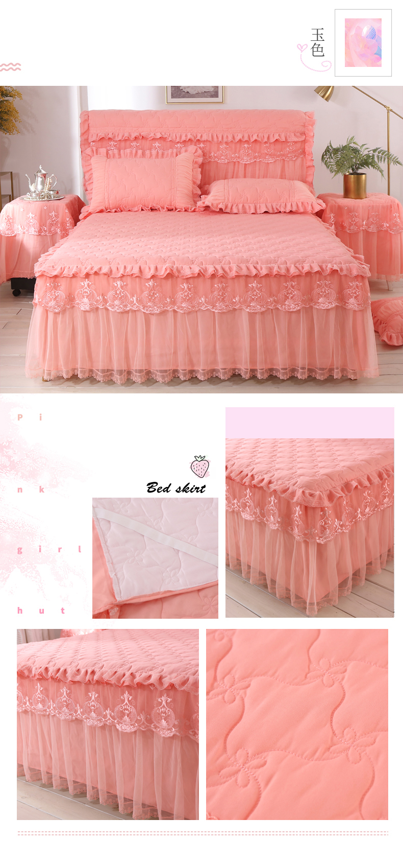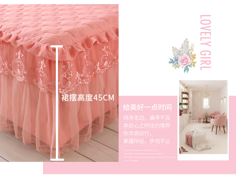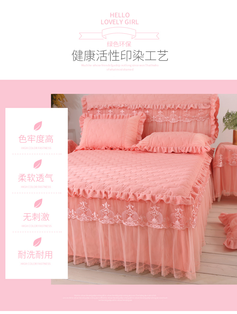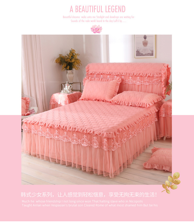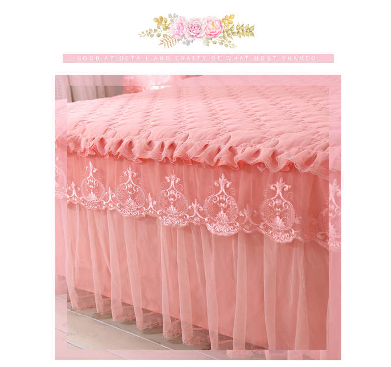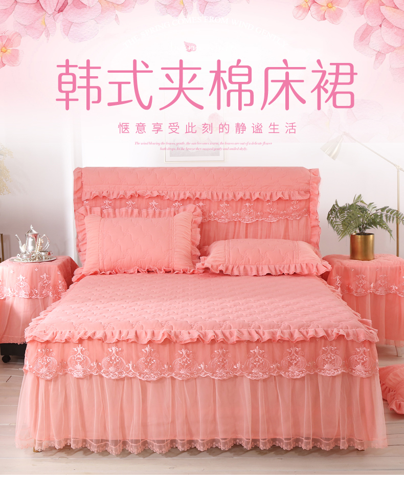 한국 공주 레이스 퀼트 두꺼운 침대 스커트 싱글 조각 퀼트 침대 커버 스커트 미끄럼 방지 침대 커버 1.8m 침대 커버스토어 가기