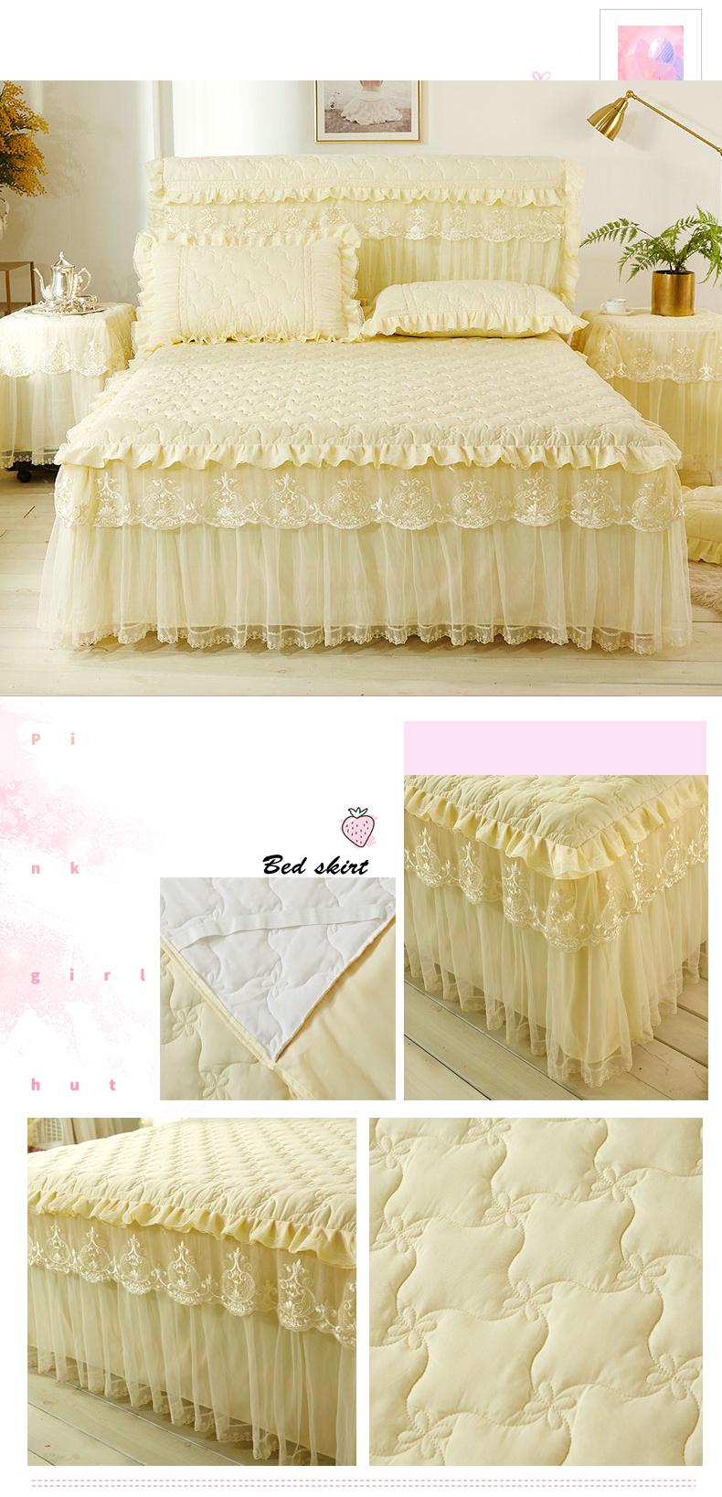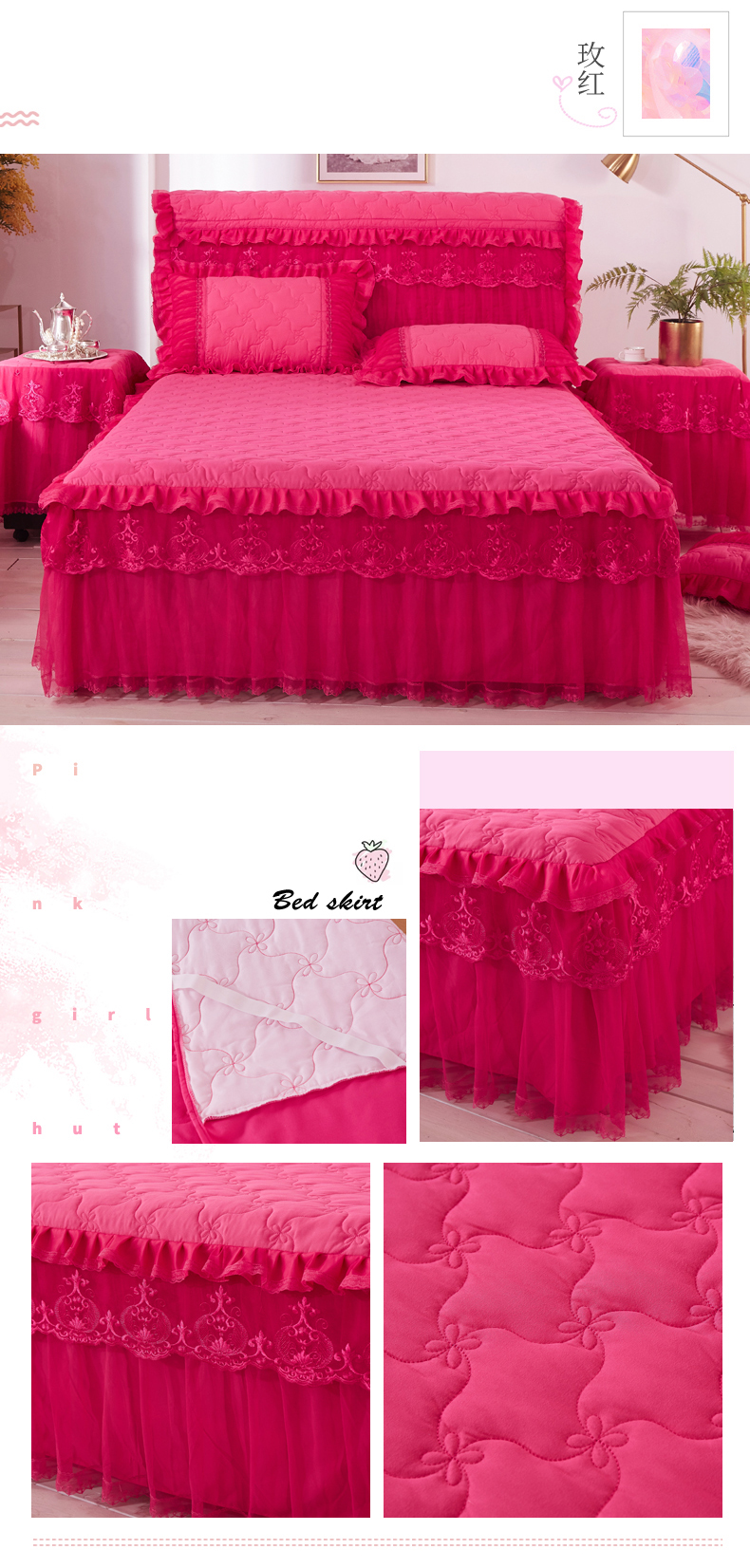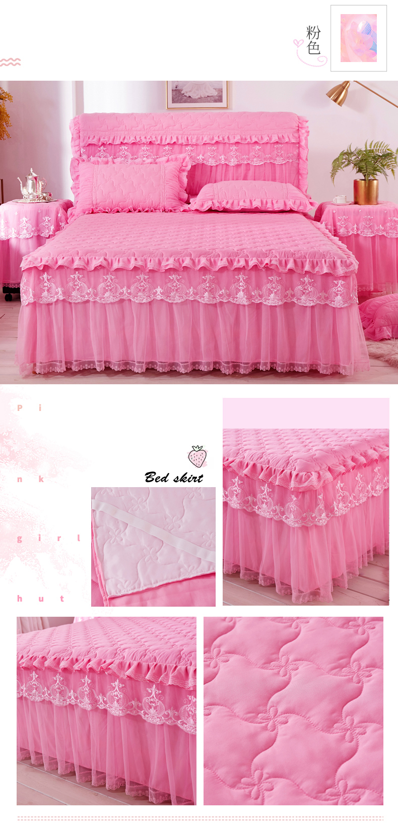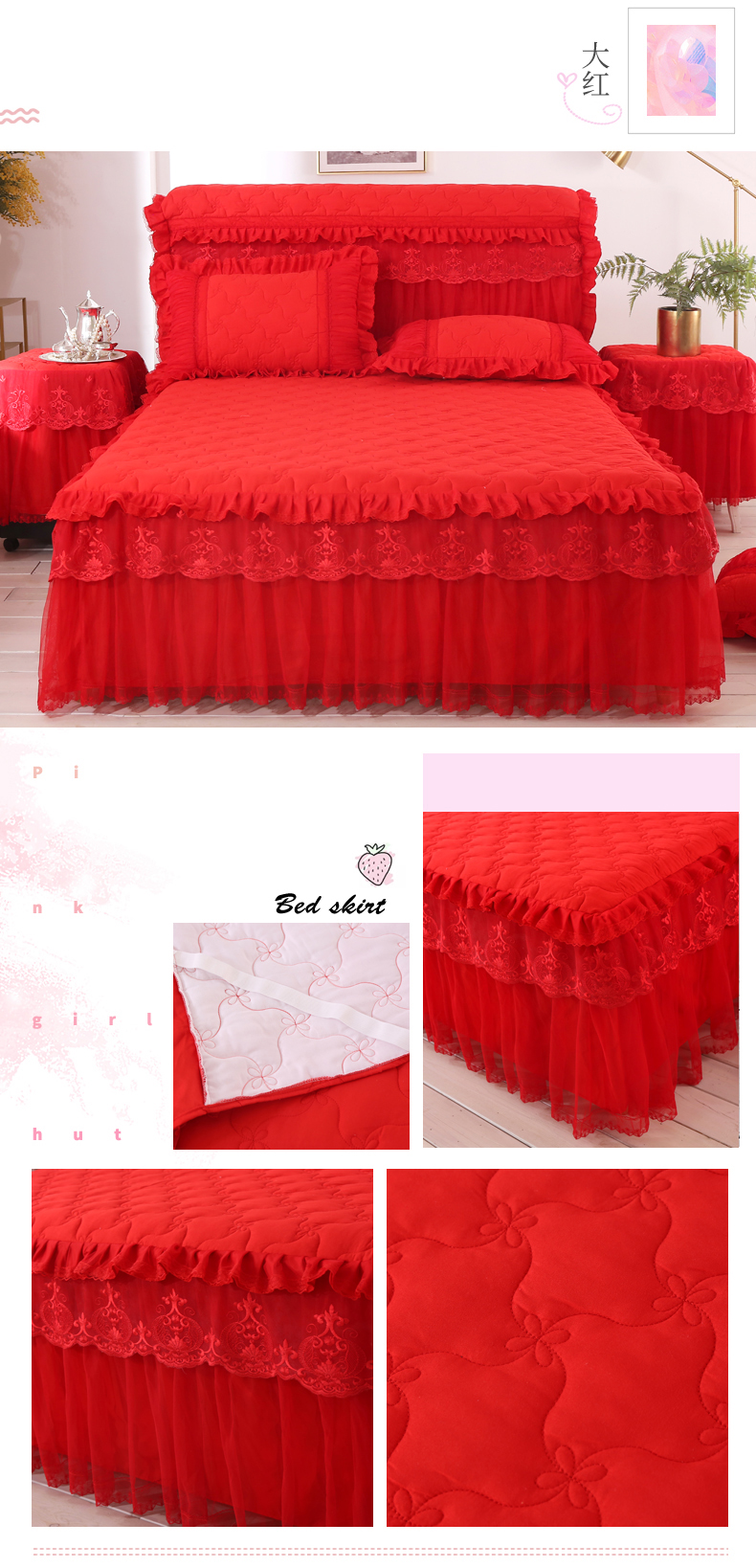 한국 공주 레이스 퀼트 두꺼운 침대 스커트 싱글 조각 퀼트 침대 커버 스커트 미끄럼 방지 침대 커버 1.8m 침대 커버스토어 가기