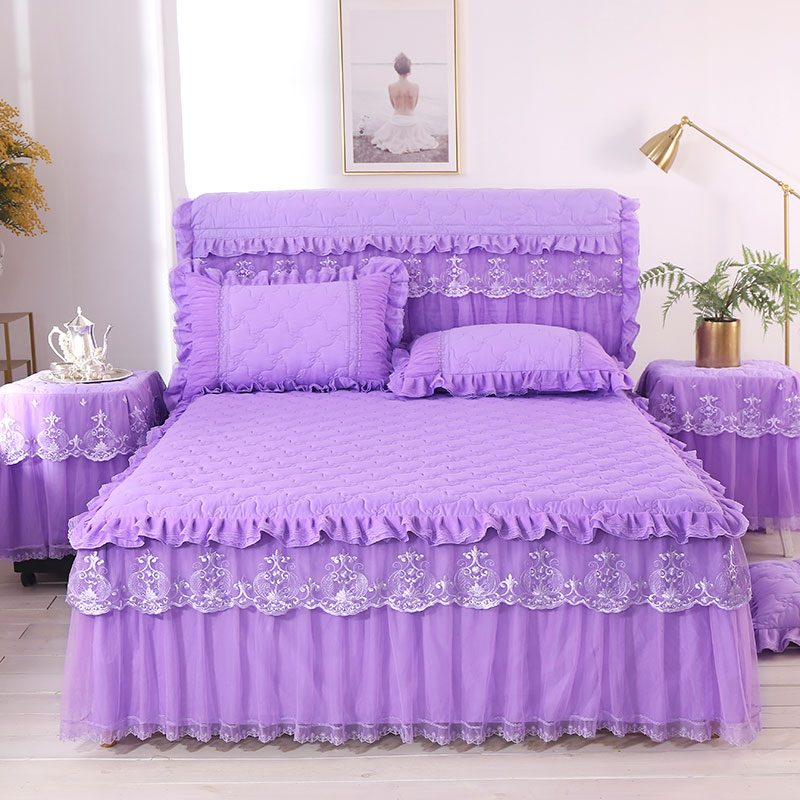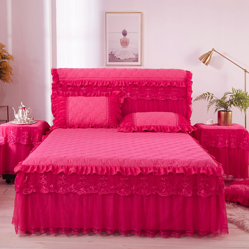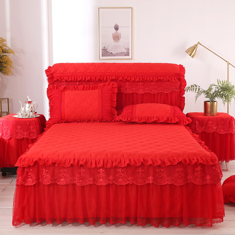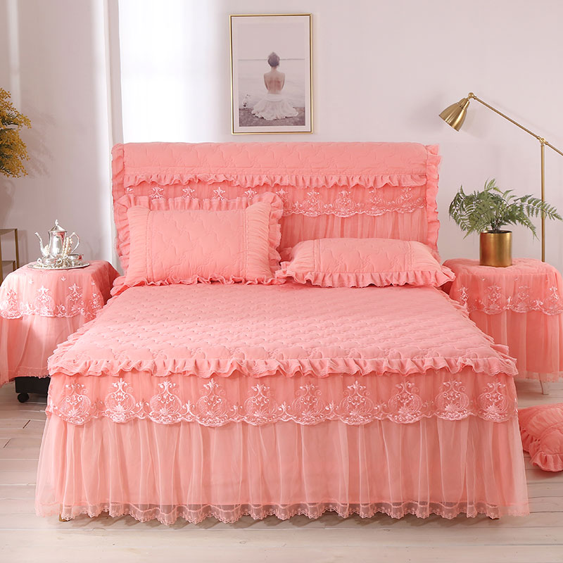 한국 공주 레이스 퀼트 두꺼운 침대 스커트 싱글 조각 퀼트 침대 커버 스커트 미끄럼 방지 침대 커버 1.8m 침대 커버