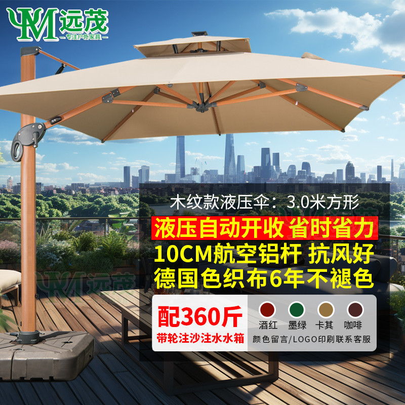 • ☆★나뭇결 유압 자동 우산: 항공 알루미늄 기둥 3.0m 평방, 바퀴가 달린 물 180kg개☆★