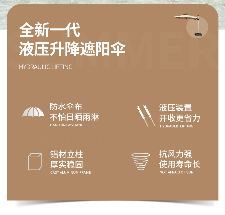 • ☆★카타르 유압식 자동 라이트 바 우산: 항공 알루미늄 기둥 2.5m 정사각형, 180kg개 밴드 포함☆★