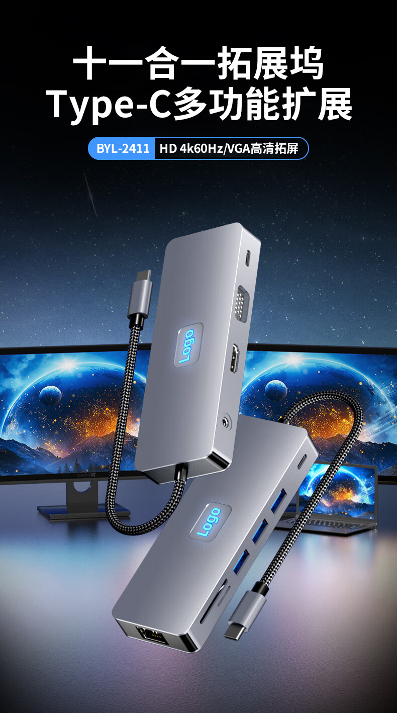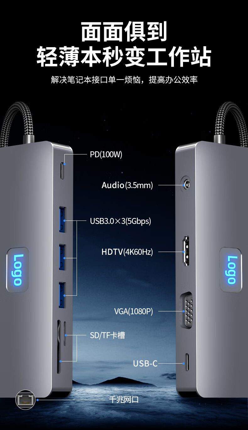 국경 간 유형-c 개발 도크 10 대 1 HD 4K60Hz VGA 도킹 스테이션 노트북 어댑터
