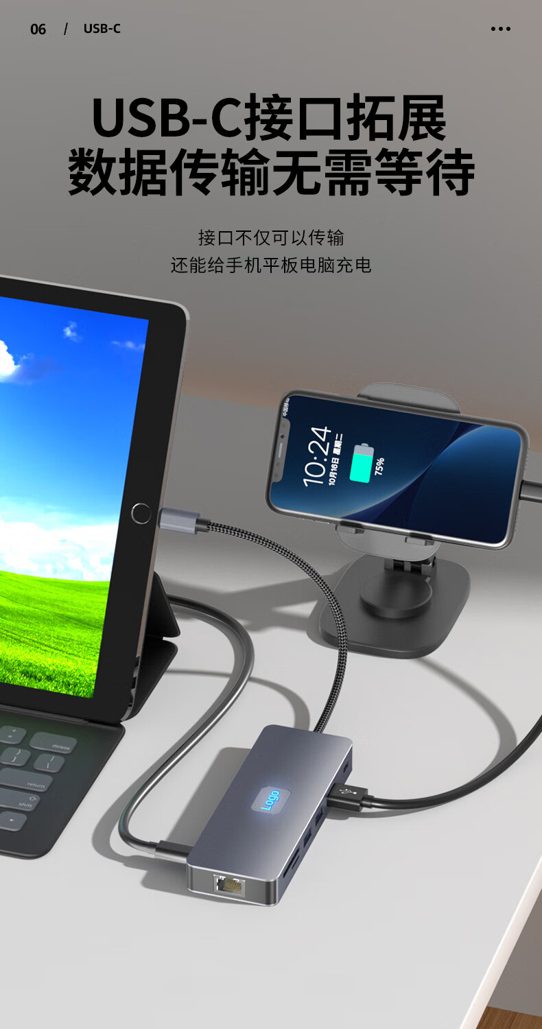 국경 간 유형-c 개발 도크 10 대 1 HD 4K60Hz VGA 도킹 스테이션 노트북 어댑터스토어 가기