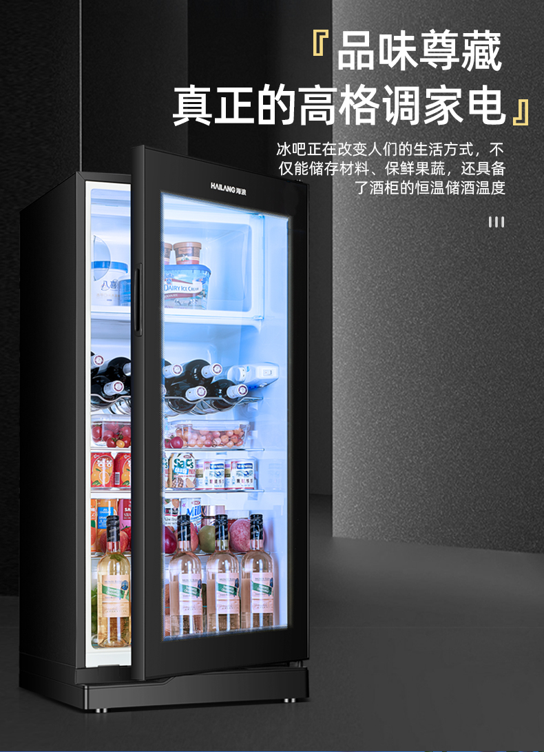 90L 아이스 바 차 캐비닛 냉장고 신선한 보관 캐비닛 일정한 온도 버건디 와인 가정용 싱글 도어 미니 냉장고