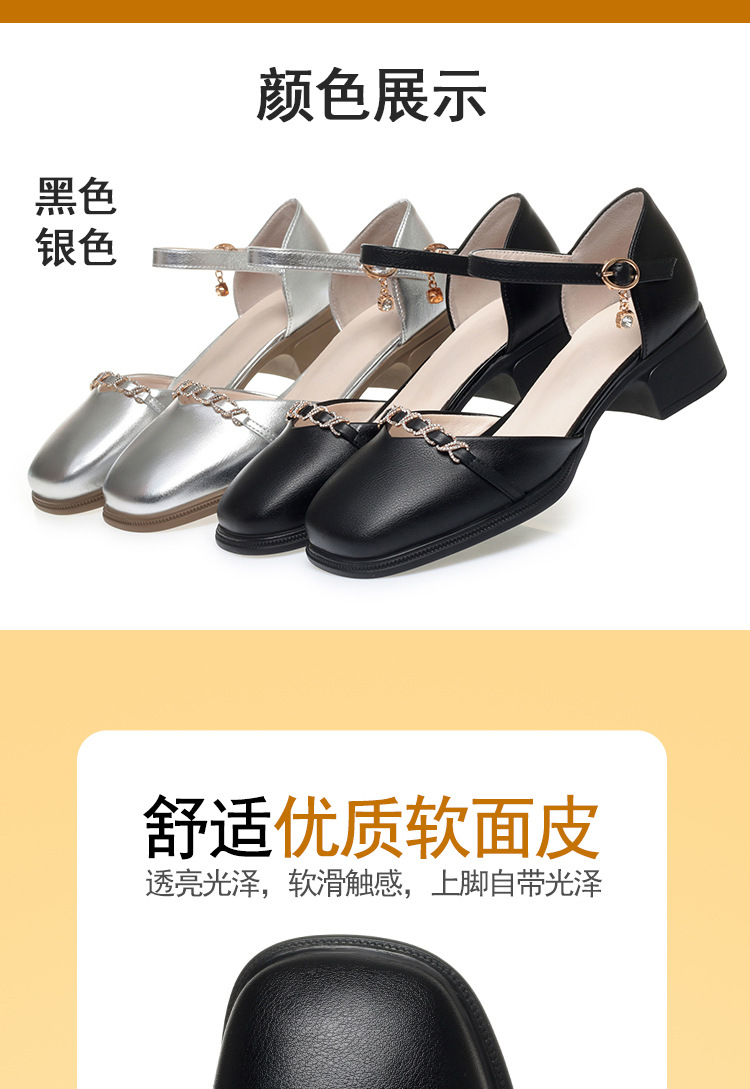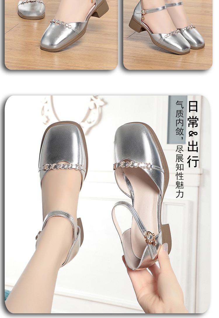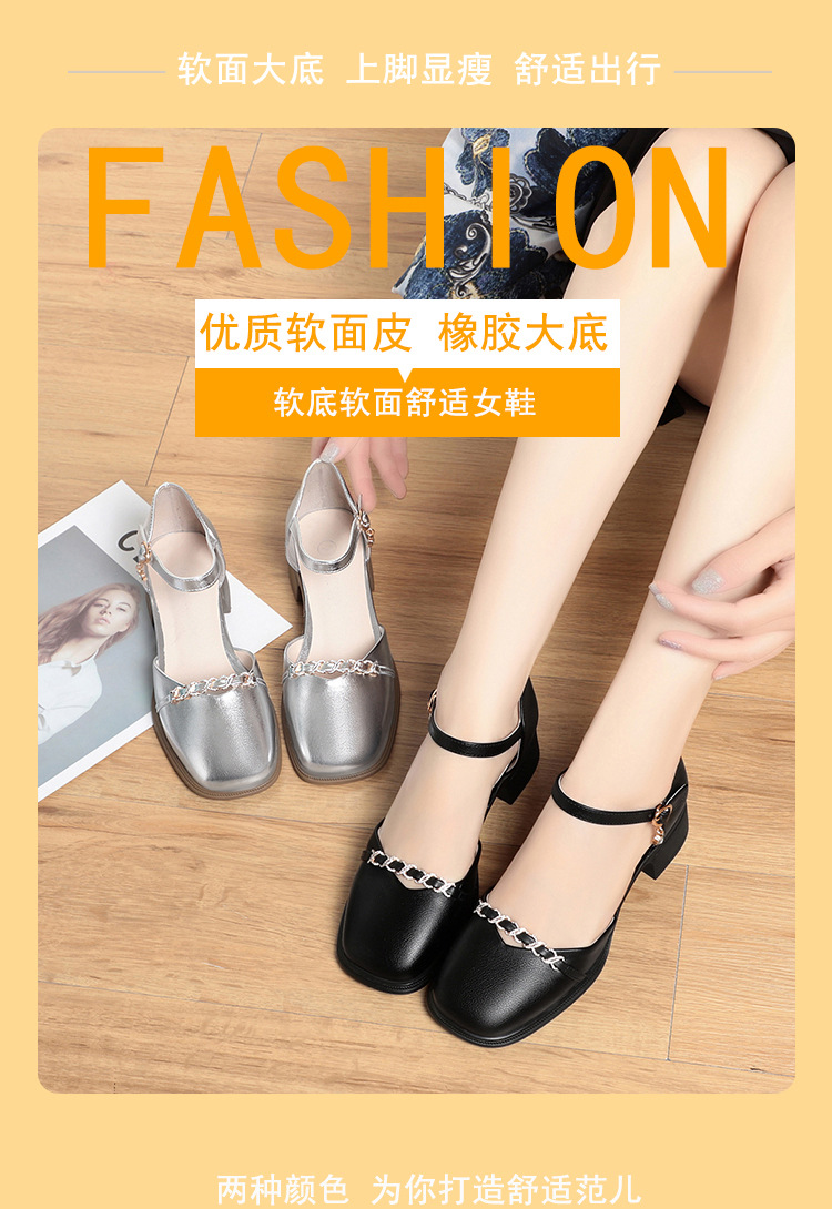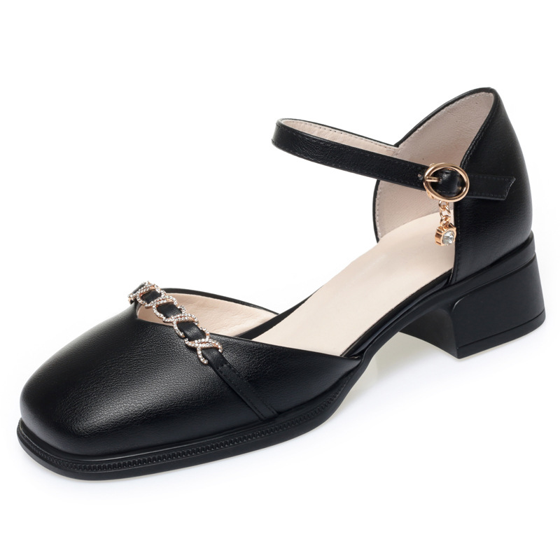 패션 샌들 새로운 가죽 신발 여성 샌들 소프트 가죽 소프트 솔 올 매치 미드 힐 두꺼운 힐 편안한 홀 슈즈