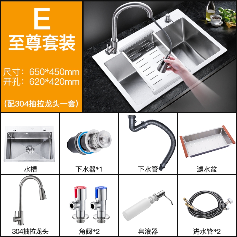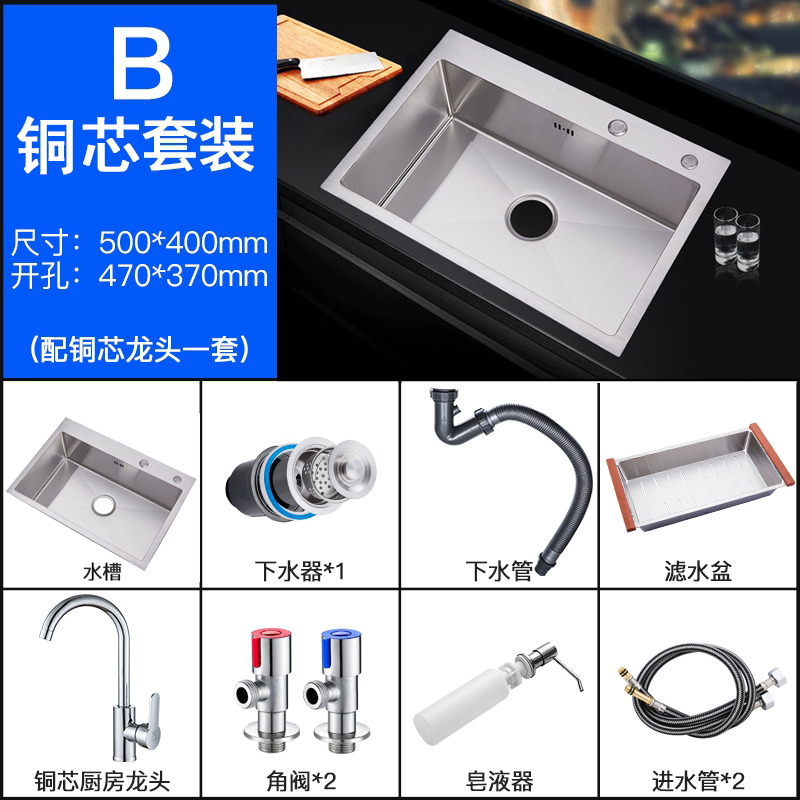 두꺼운 싱크 싱글 싱크 주방 304 스테인레스 스틸 손으로 만든 야채 세척 분지 가정용 싱크대스토어 가기