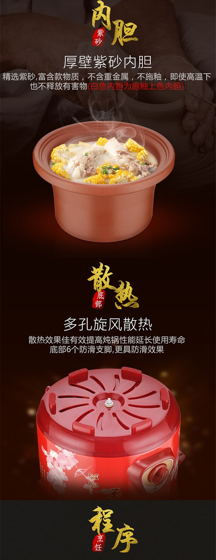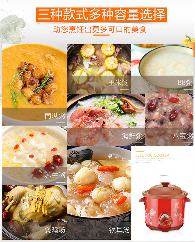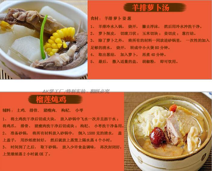【功能】炖汤、炖补品、炖甜品、煲粥、熬药。