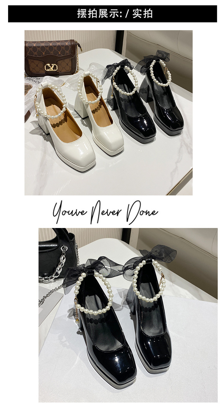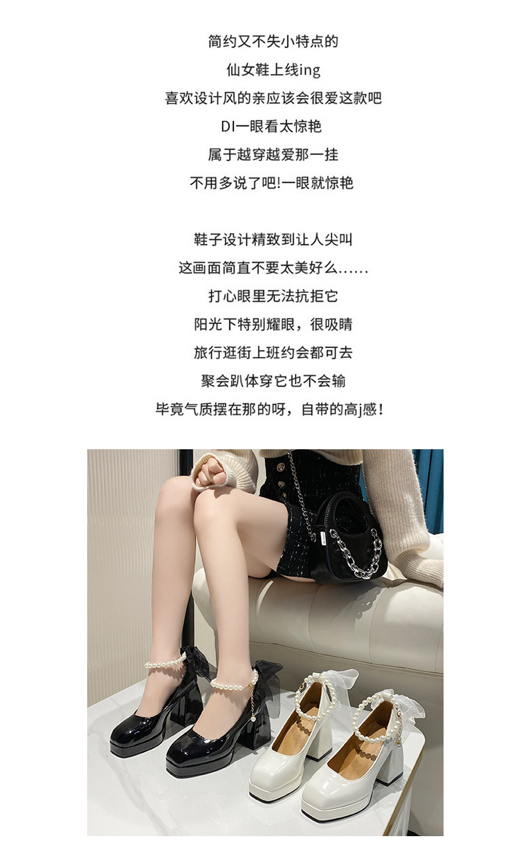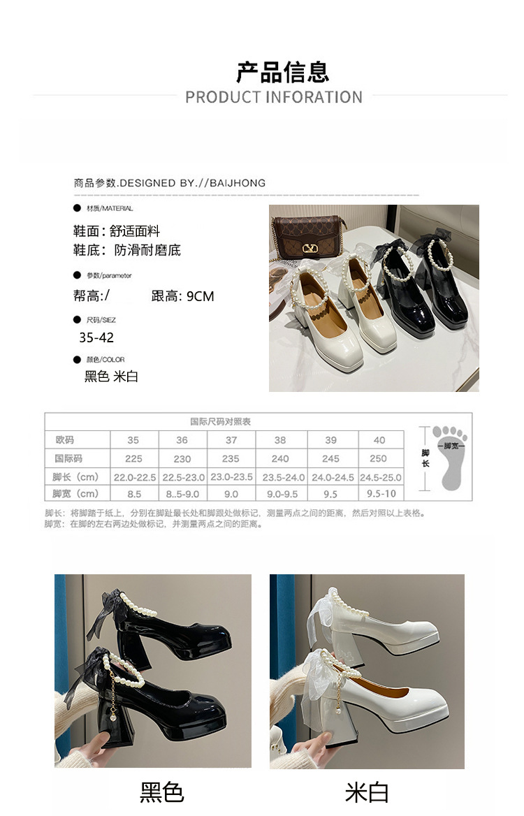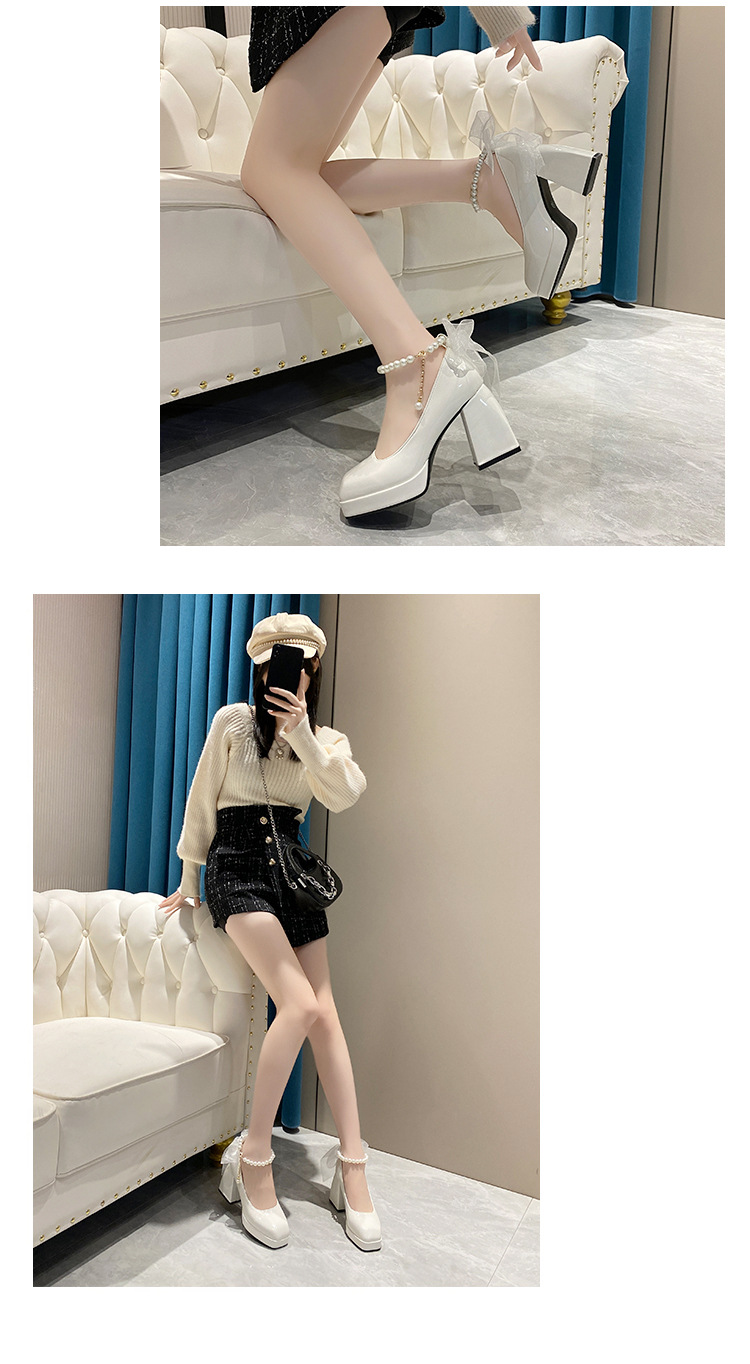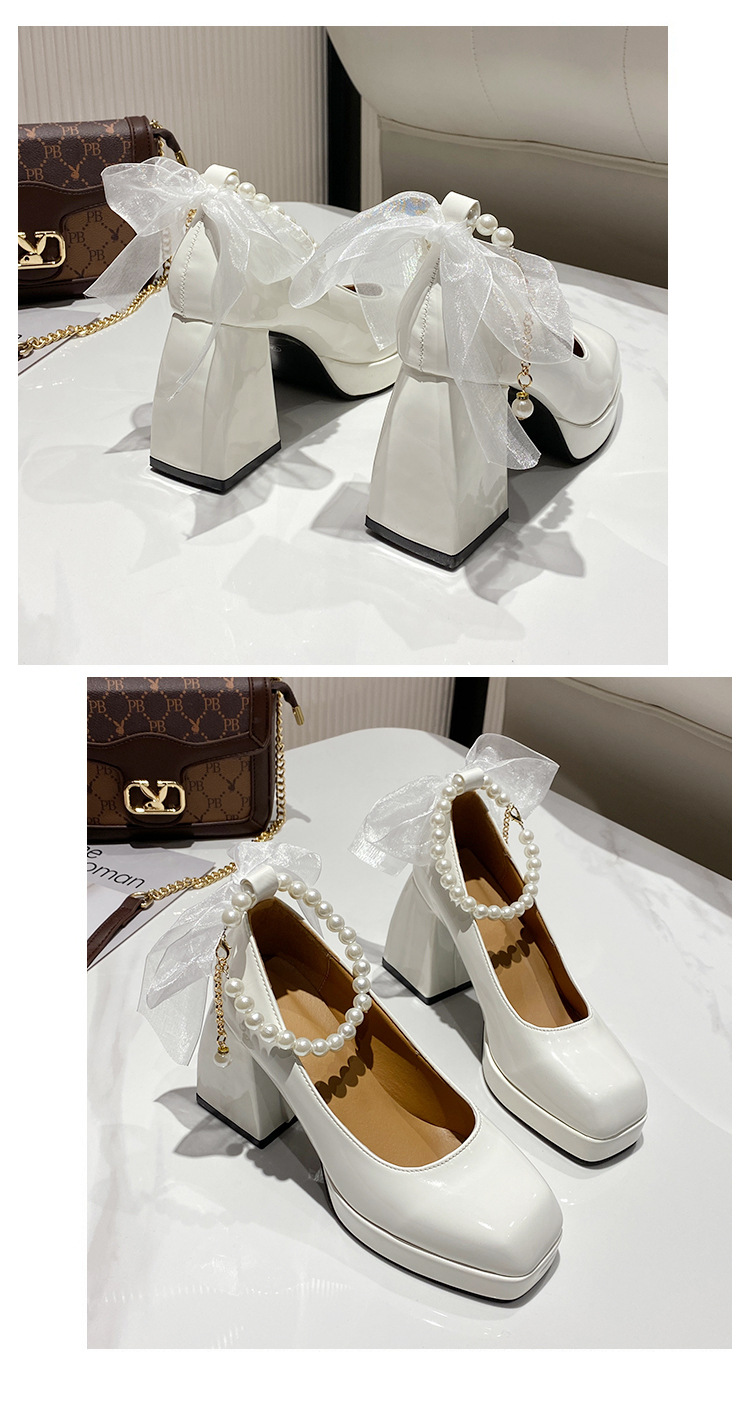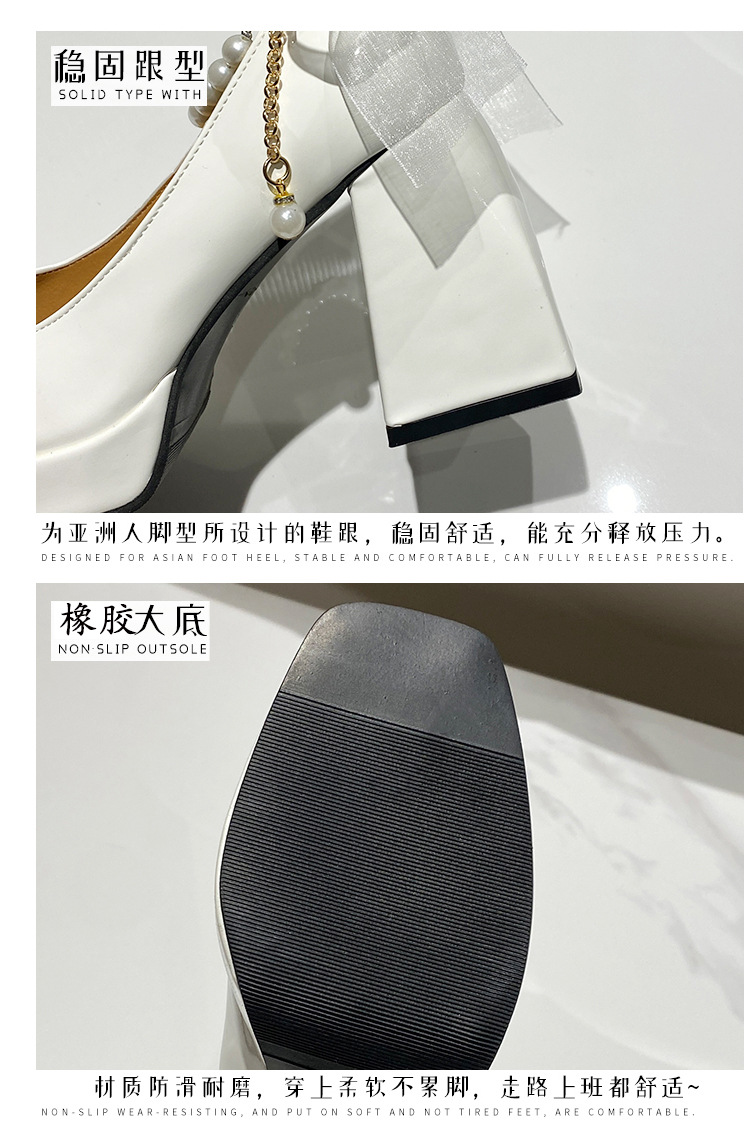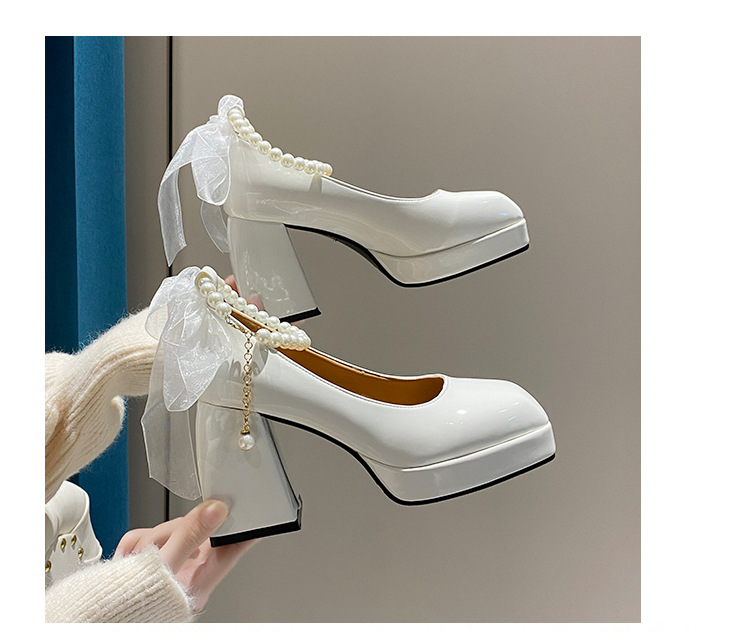 하이힐 메리 제인 신발 여성 2024 년 여름 새 흰색 웨딩 신발 프랑스 스타일 스커트 두꺼운 굽 가죽 신발스토어 가기