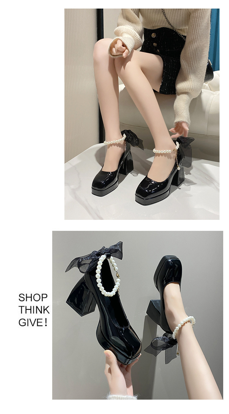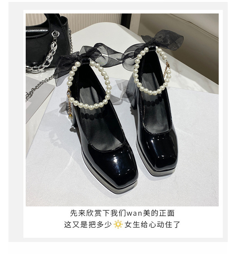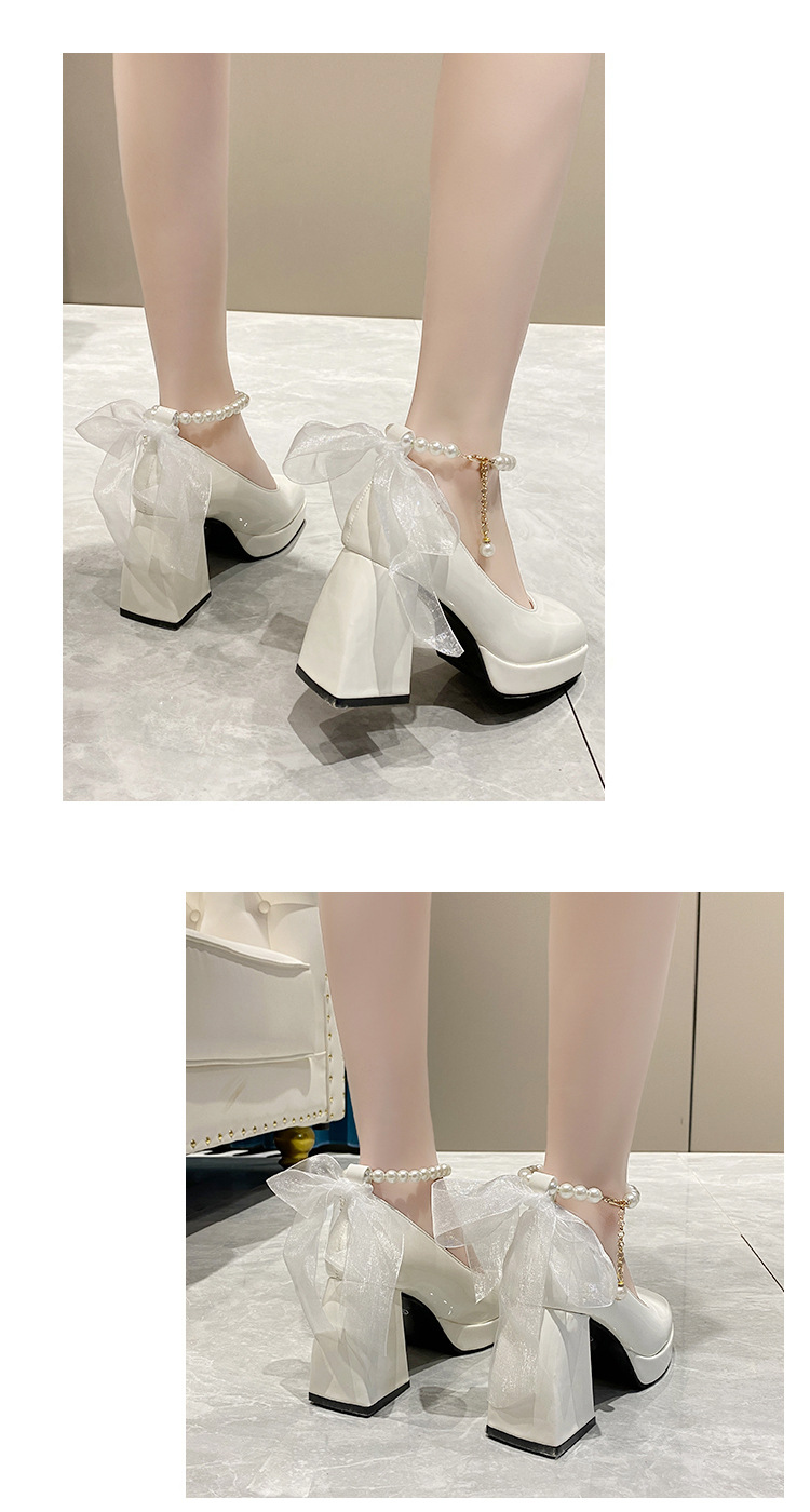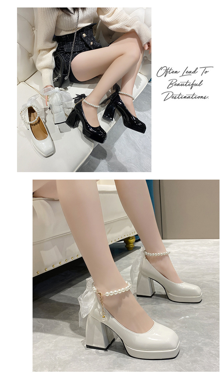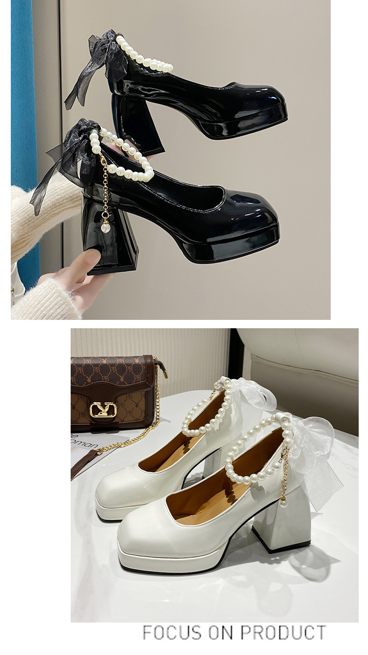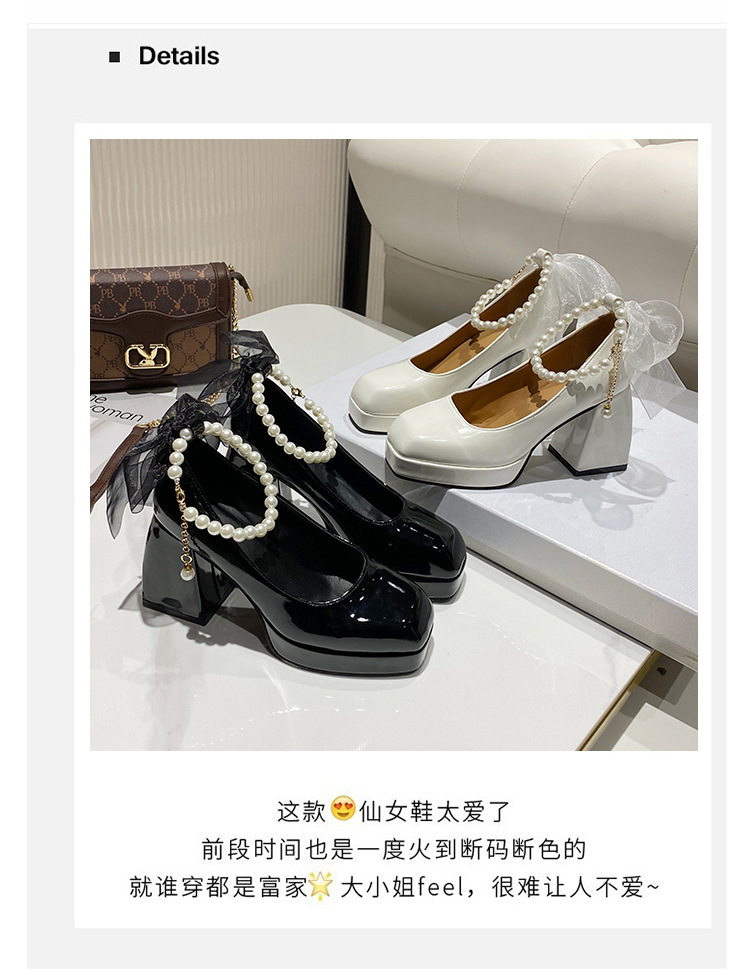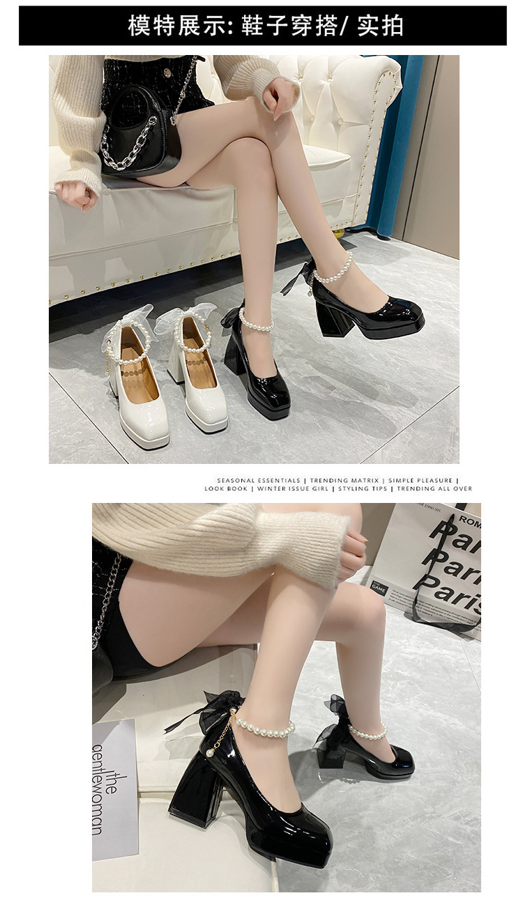하이힐 메리 제인 신발 여성 2024 년 여름 새 흰색 웨딩 신발 프랑스 스타일 스커트 두꺼운 굽 가죽 신발스토어 가기