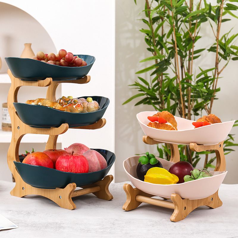 가정용 솔리드 우드 멀티 레이어 인터넷 연예인 트레이 인기 스타일 거실 과일 트레이 저장 과일 바구니 스낵 트레이 디저트 디스플레이 랙