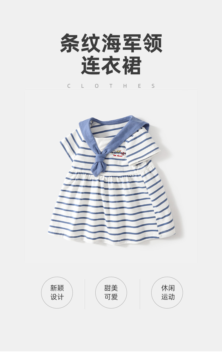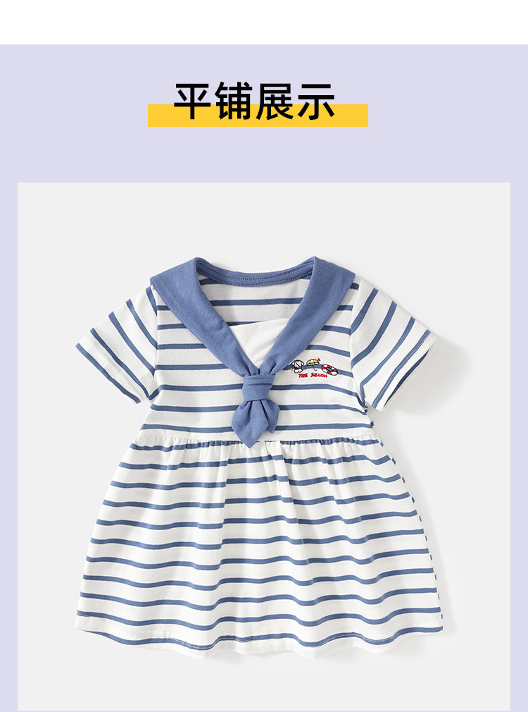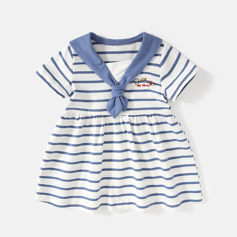 유아 원피스 소녀의 해군 칼라 줄무늬 짧은 소매 원피스 어린이 원피스 아기의 여름 원피스 공연 의류 새로운 도착스토어 가기