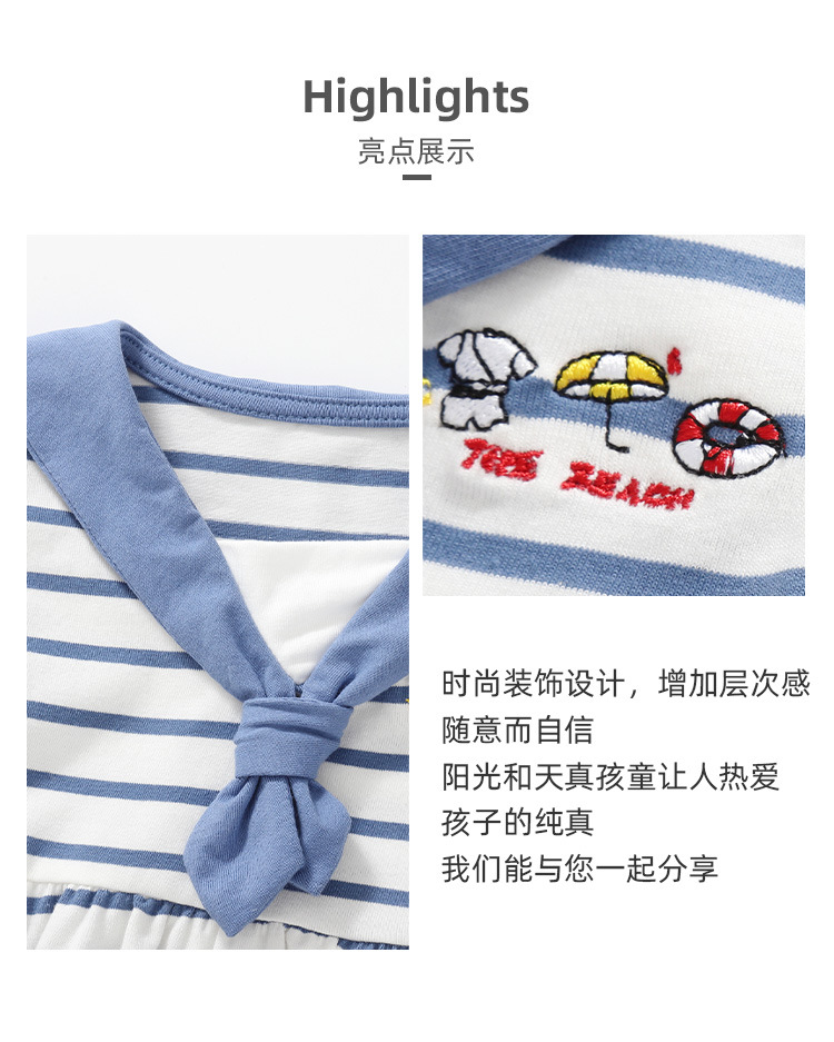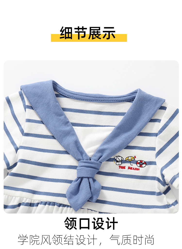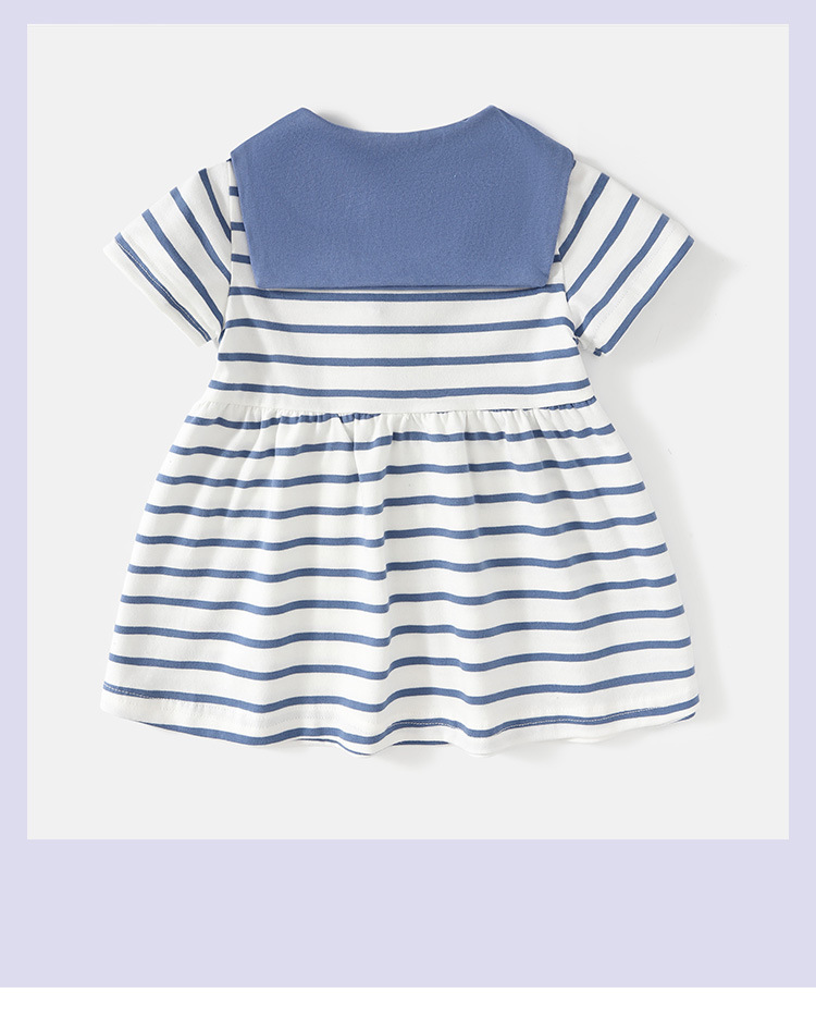 유아 원피스 소녀의 해군 칼라 줄무늬 짧은 소매 원피스 어린이 원피스 아기의 여름 원피스 공연 의류 새로운 도착