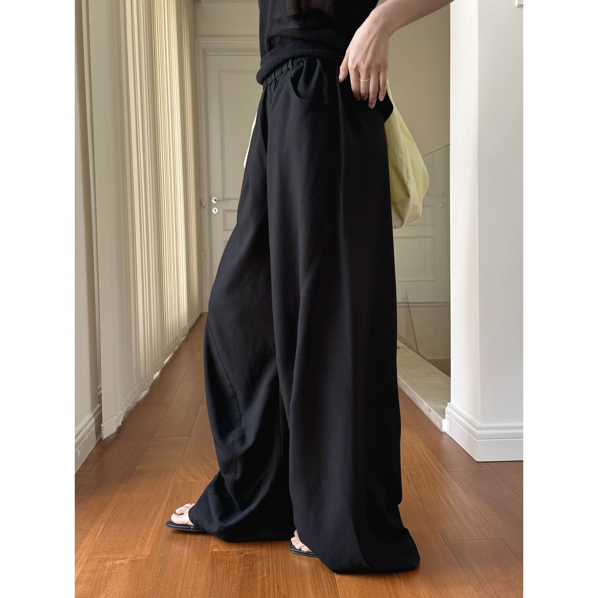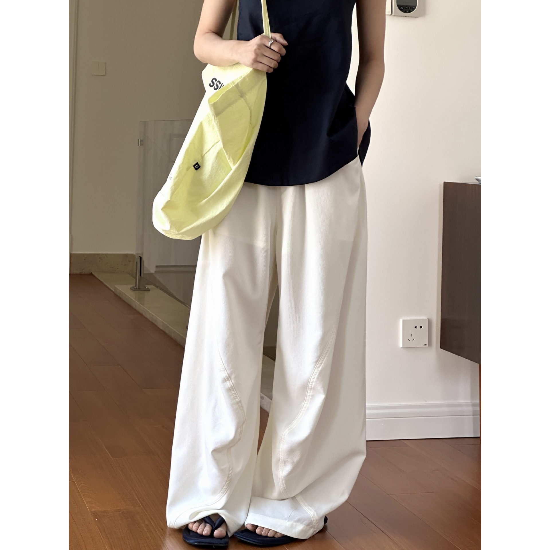 루푸 여름 새로운 일본 스타일 게으른 디자인 아크 바느질 캐주얼 바지 느슨한 슬림 넓은 다리 바지 여성스토어 가기