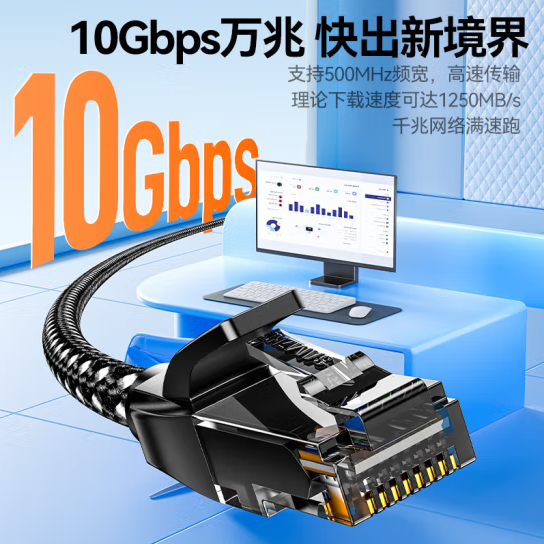 山泽超六类网线 CAT6A类纯铜高速万兆成品棉网线 家用电脑网络宽带工程监控跳线8芯双绞连接线