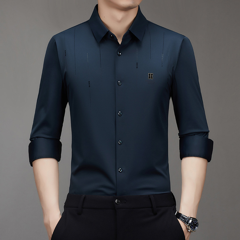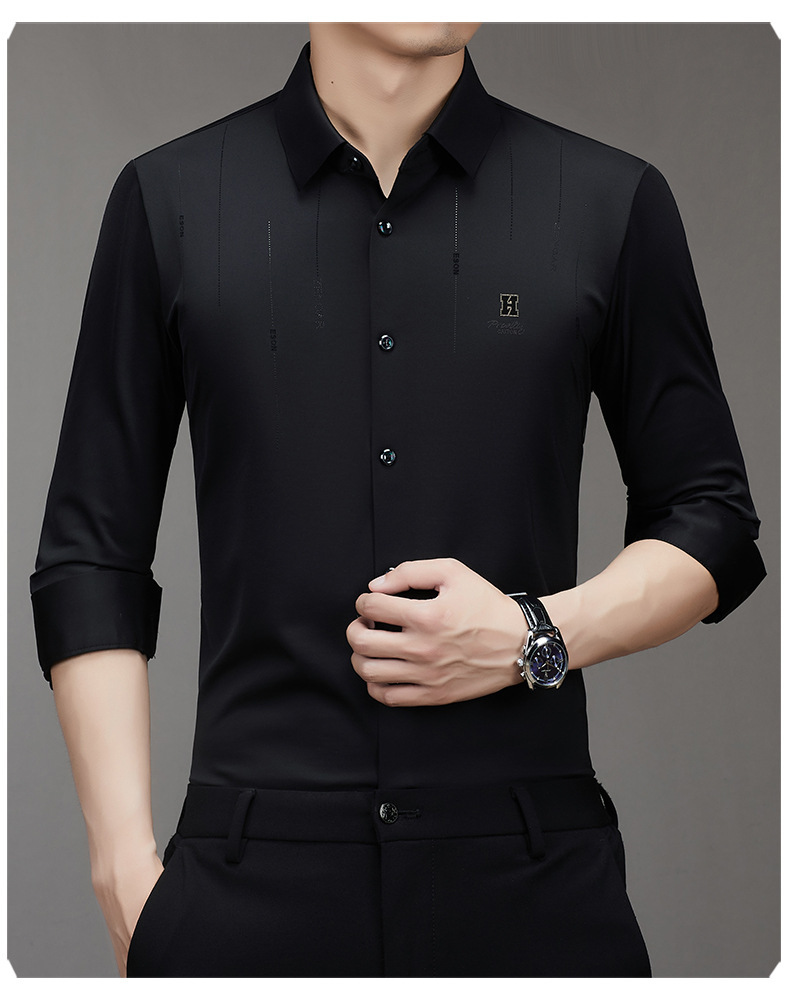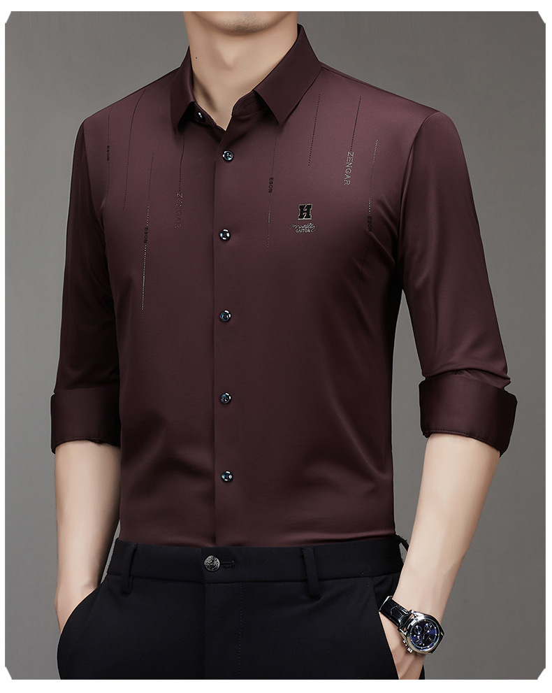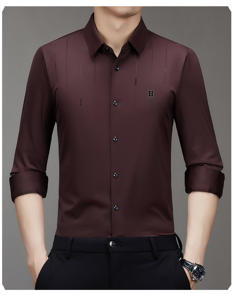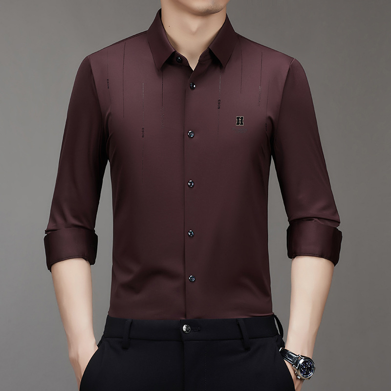 Linghao 의류 버건디 셔츠 2024 가을 남자 셔츠 광장 칼라 얇은 중년 비즈니스 신사 아빠의 옷
