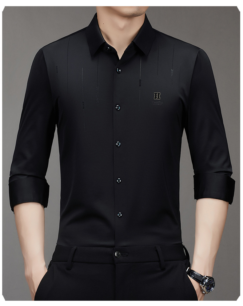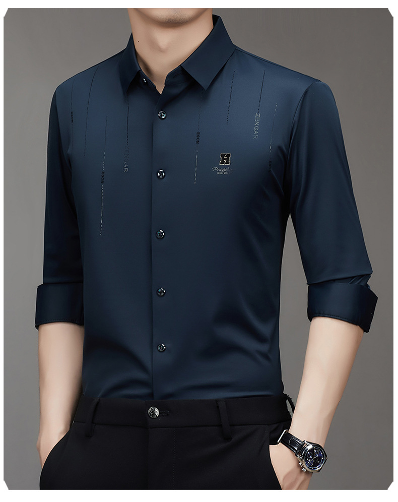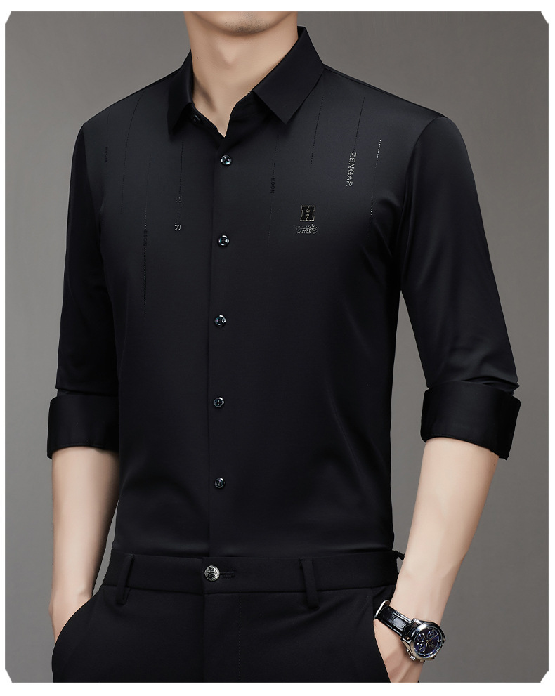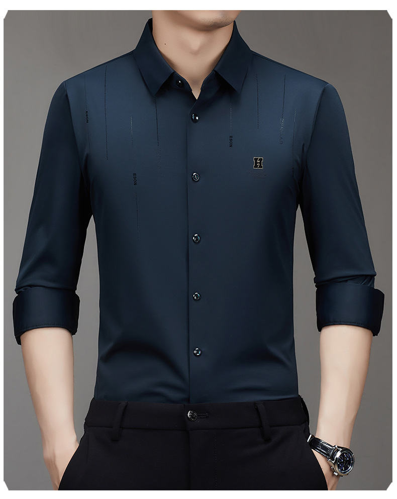 Linghao 의류 버건디 셔츠 2024 가을 남자 셔츠 광장 칼라 얇은 중년 비즈니스 신사 아빠의 옷
