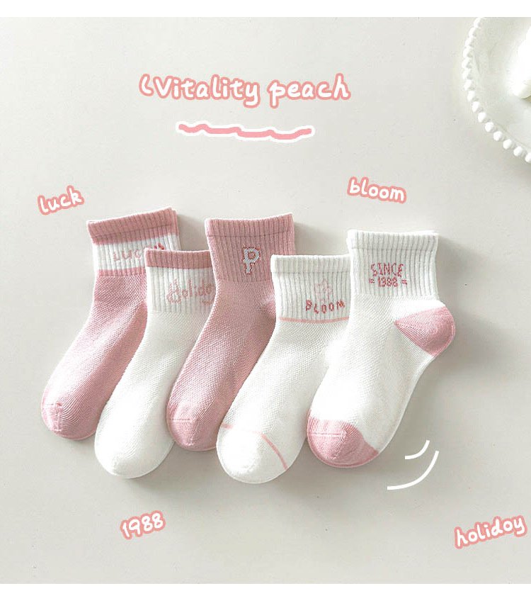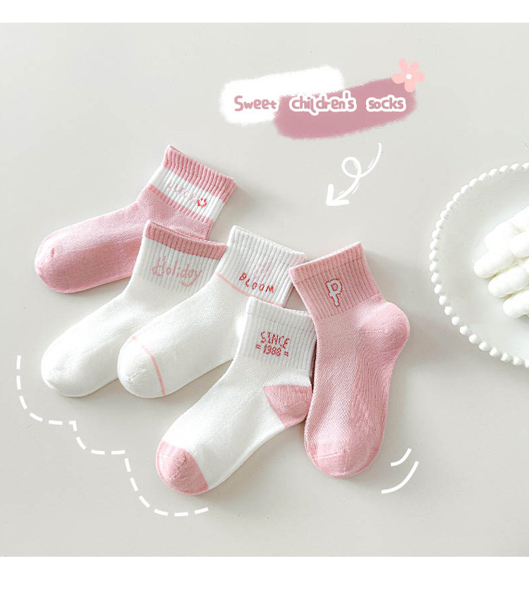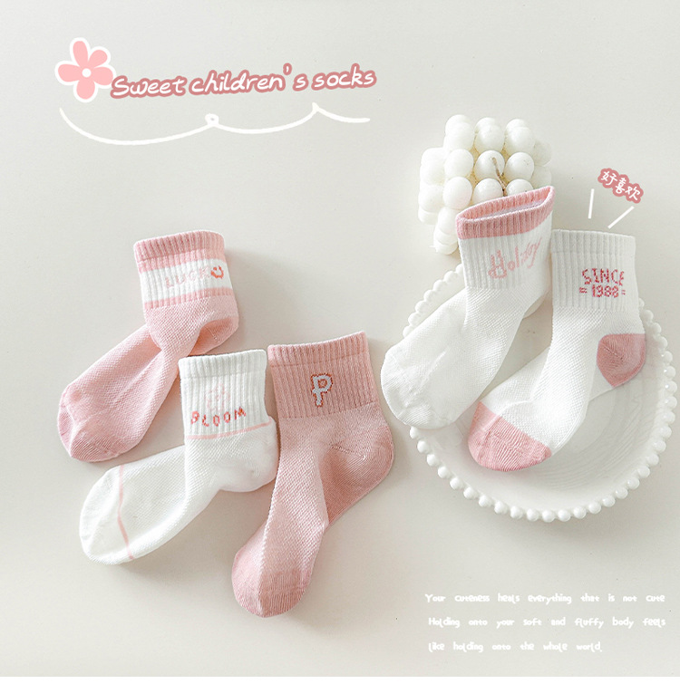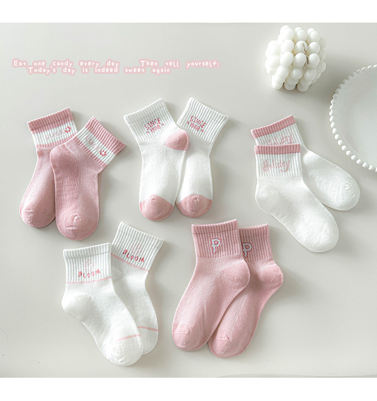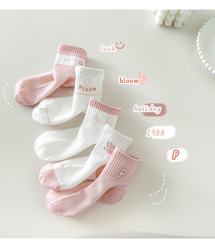 2024 여름 새로운 도매 5 쌍의 한국어 버전 흑백 문자 어린이 양말스토어 가기