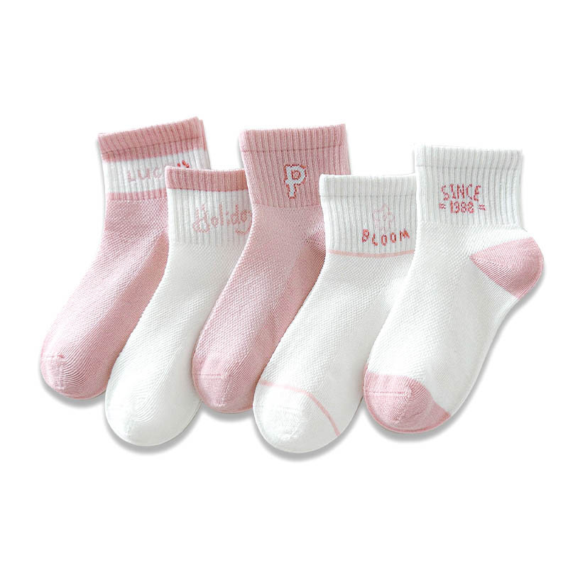 2024 여름 새로운 도매 5 쌍의 한국어 버전 흑백 문자 어린이 양말