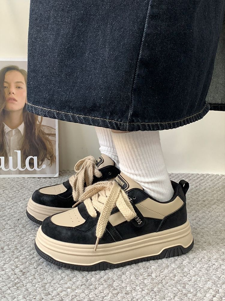 메일라드 여성용 두꺼운 밑창 운동화, 2025 봄 신상품, 다용도 캐주얼 운동화, 홍콩 스타일 복고풍 여성 신발스토어 가기