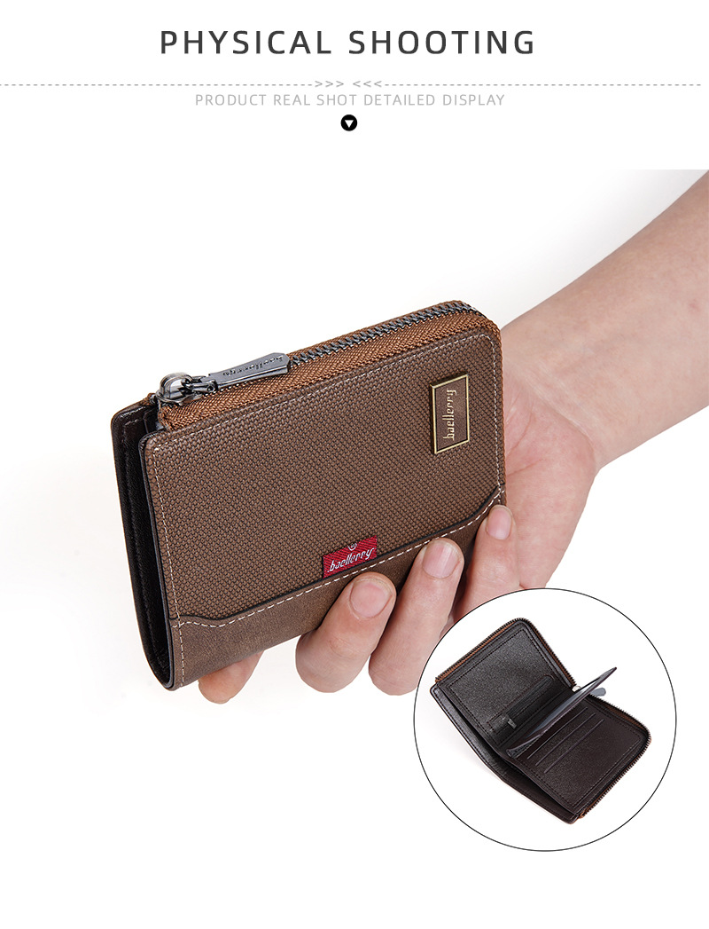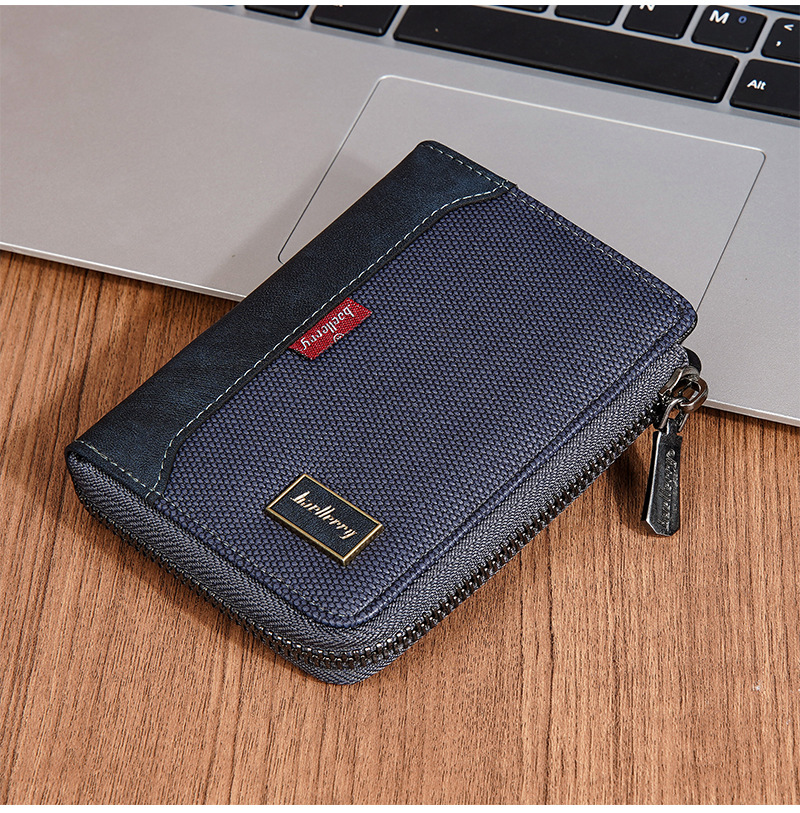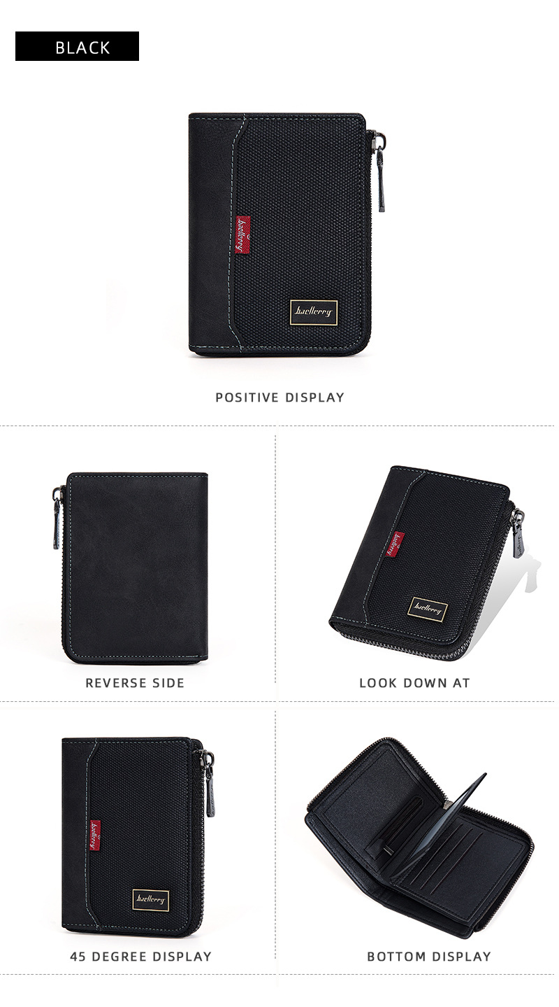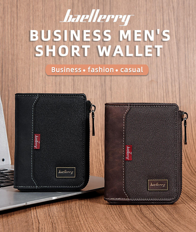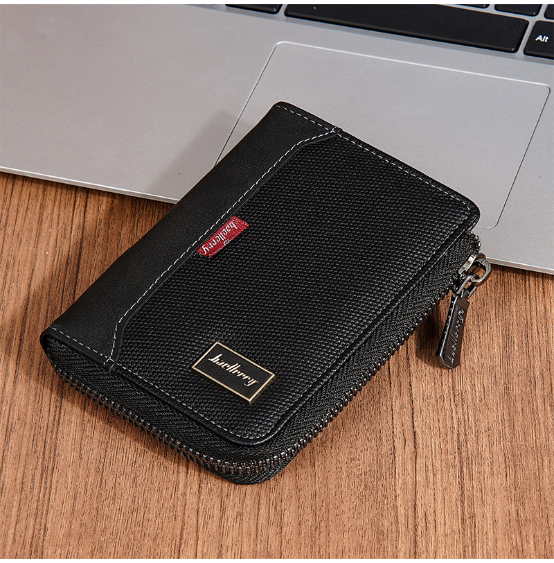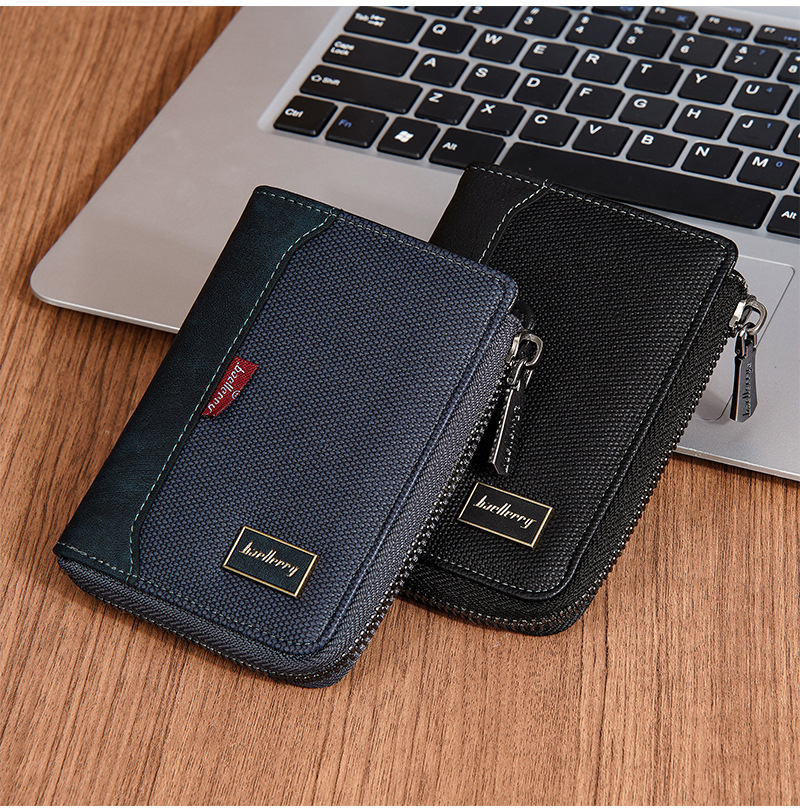 새로운 지갑 남성용 짧은 고급 학생 도난 방지 동전 지갑 대비 색상 비즈니스 남성용 간단한 지퍼 지갑