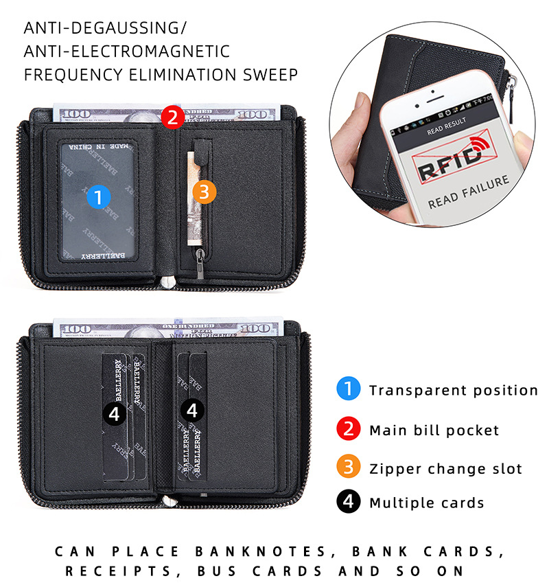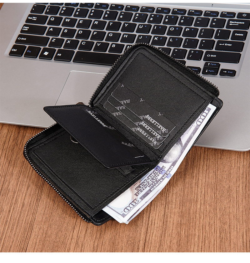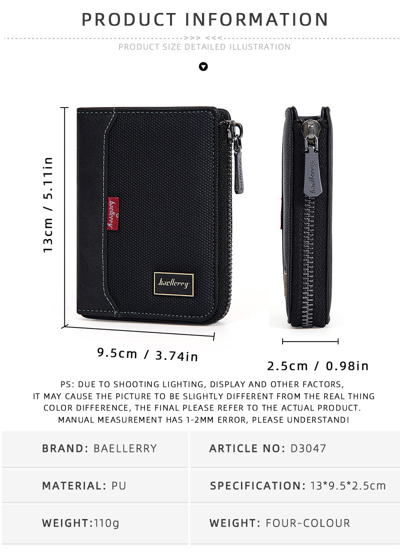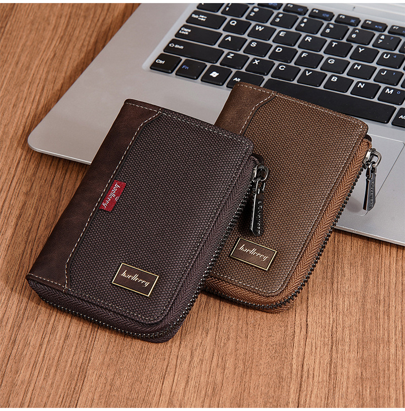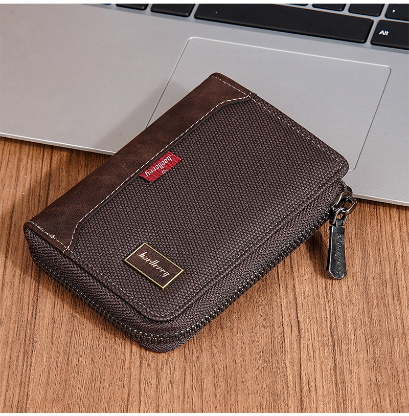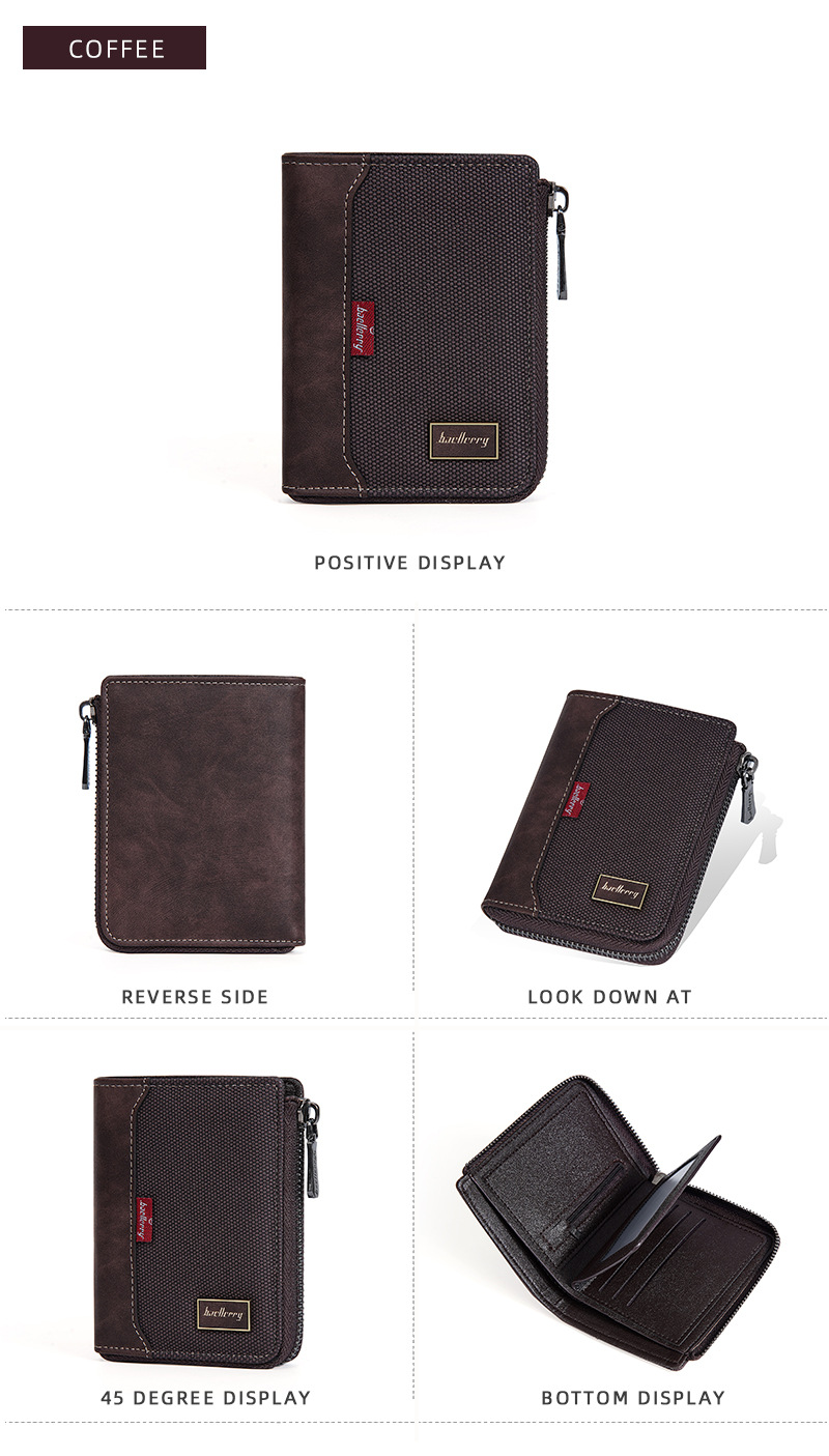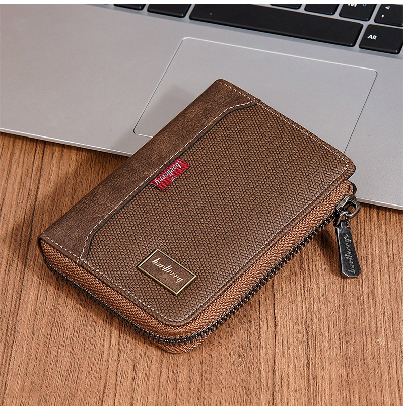 새로운 지갑 남성용 짧은 고급 학생 도난 방지 동전 지갑 대비 색상 비즈니스 남성용 간단한 지퍼 지갑