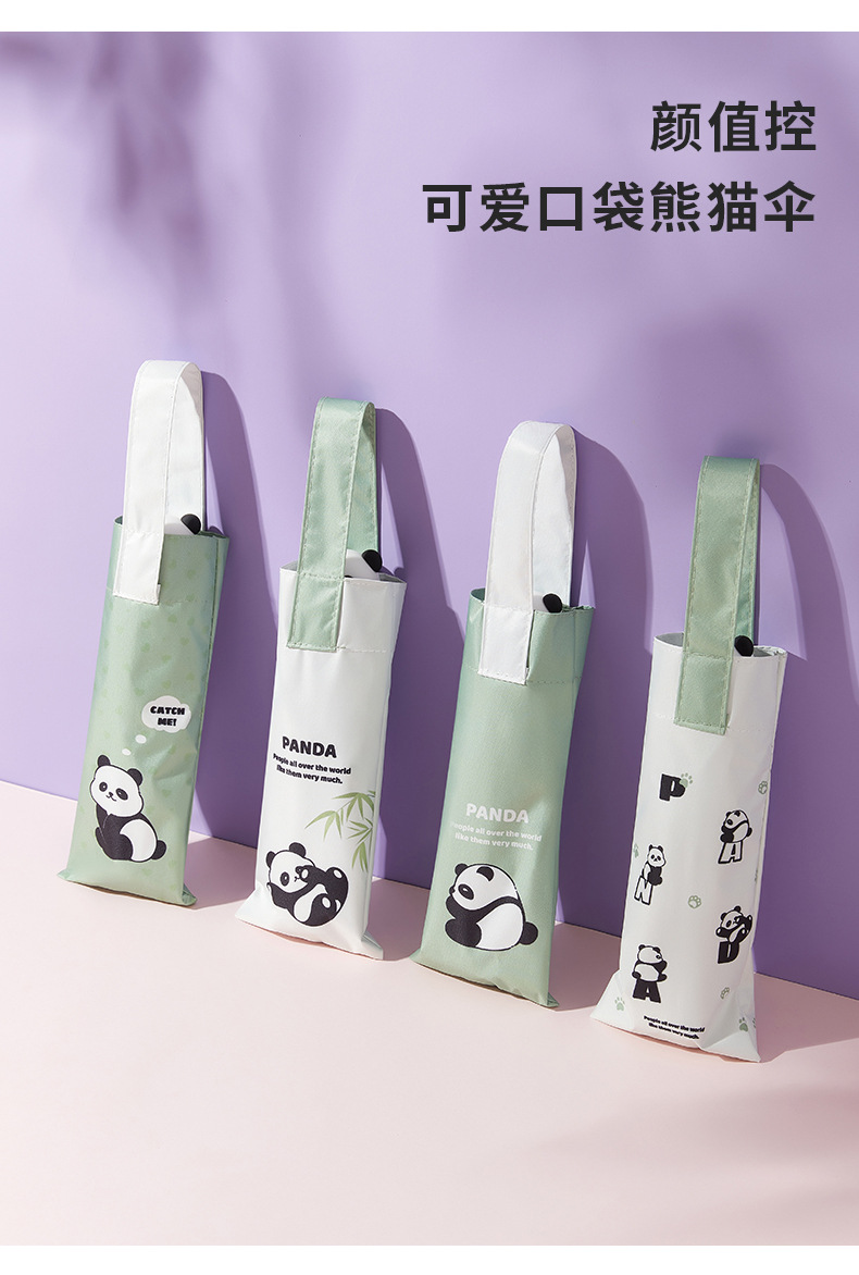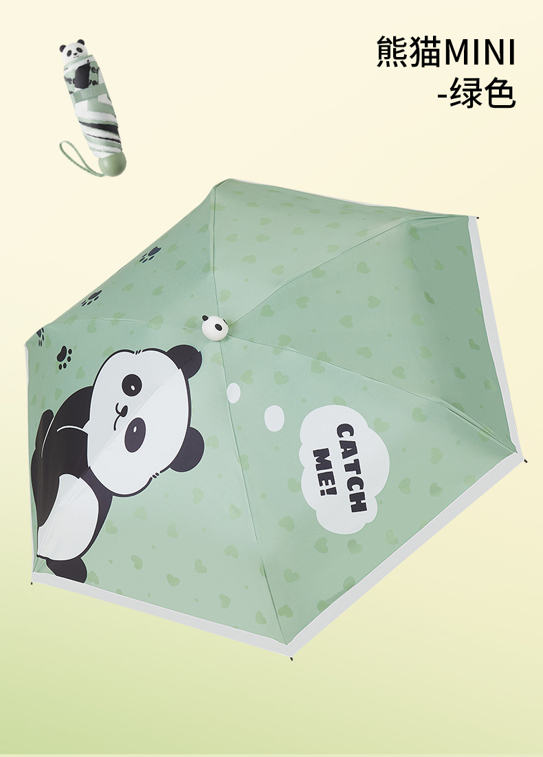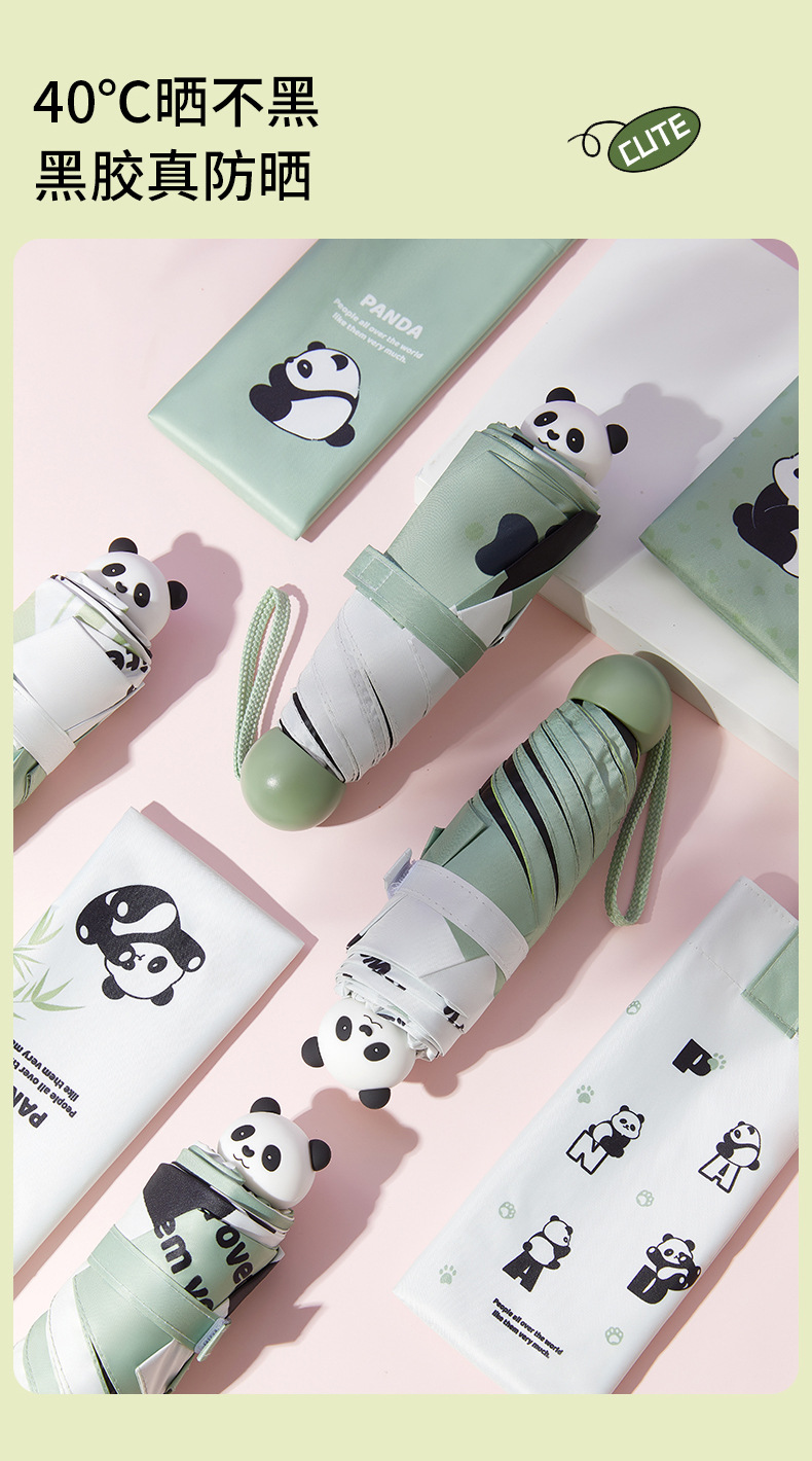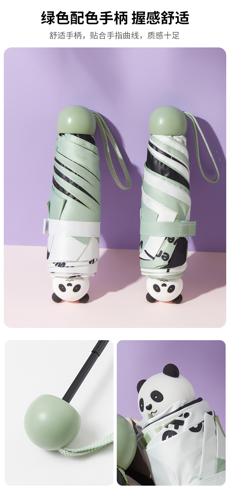 Zhiyu 팬더 헤드 캡슐 우산 50% 접어 작고 쉬운 휴대용 검은 고무 태양 보호 자외선 보호 햇빛과 비 보호 이중 목적 햇빛 우산스토어 가기