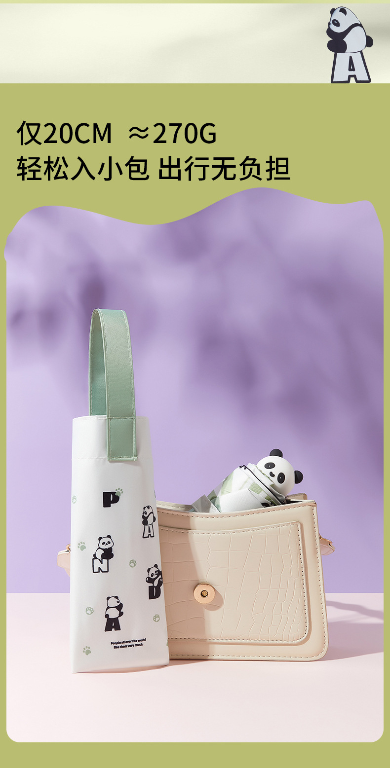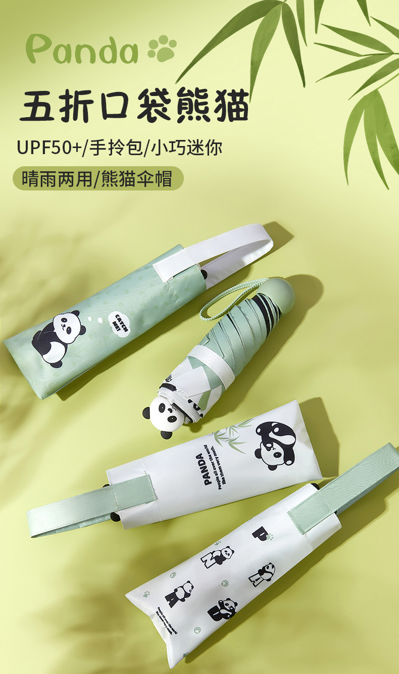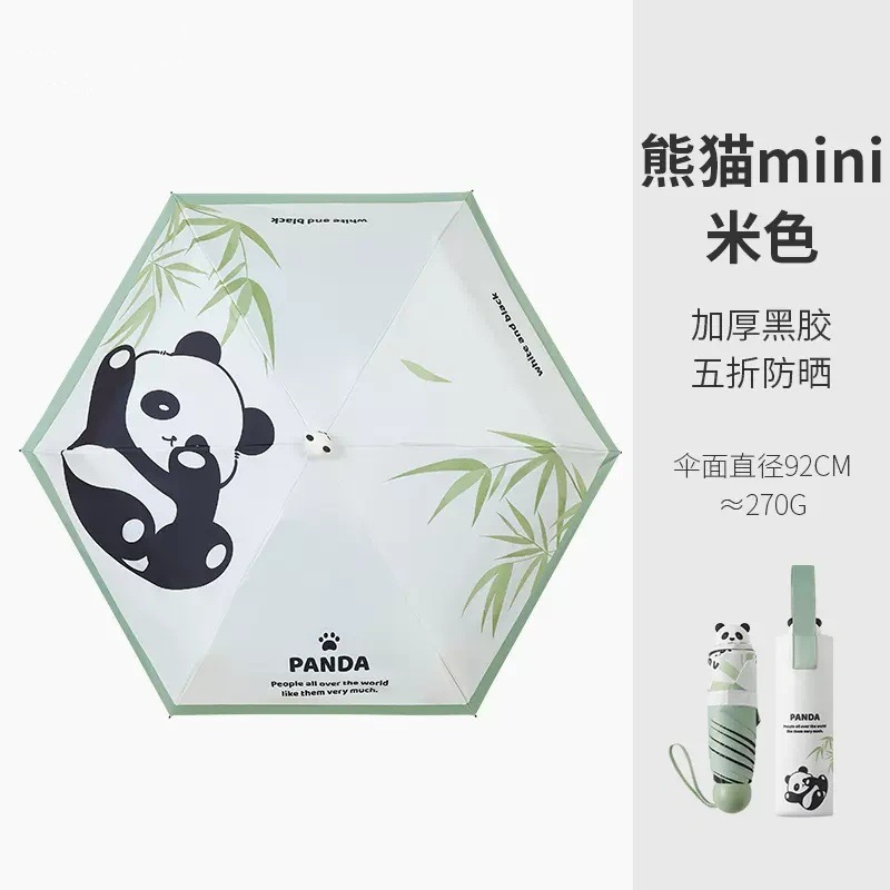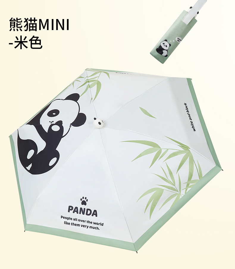 Zhiyu 팬더 헤드 캡슐 우산 50% 접어 작고 쉬운 휴대용 검은 고무 태양 보호 자외선 보호 햇빛과 비 보호 이중 목적 햇빛 우산스토어 가기