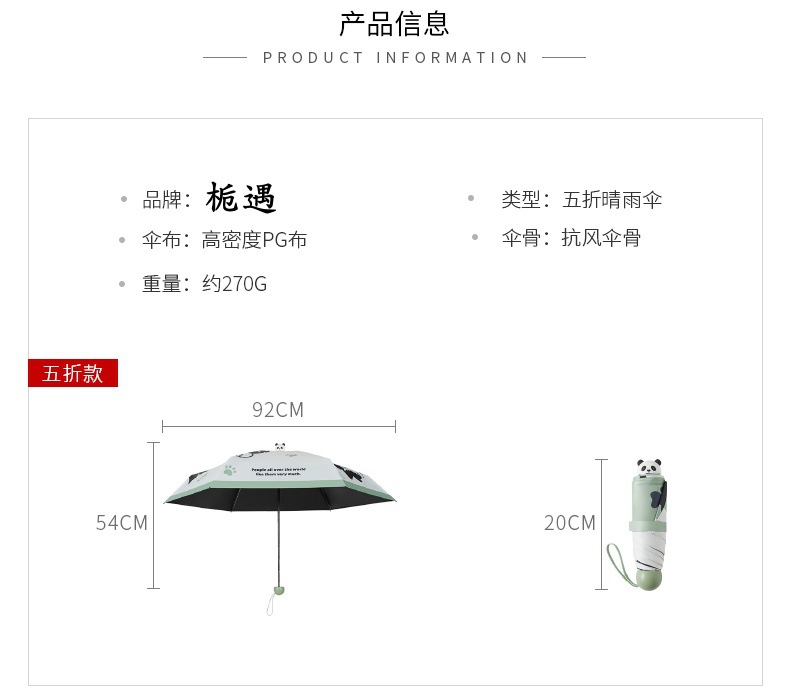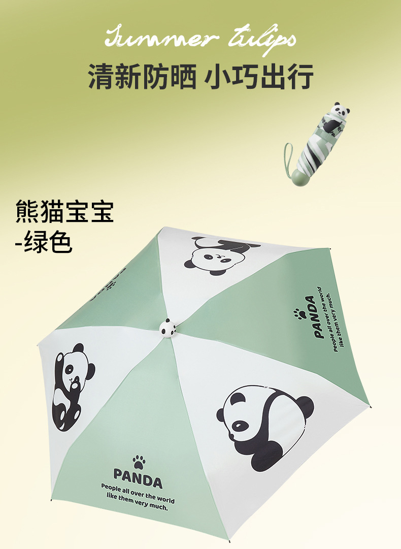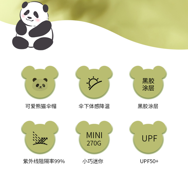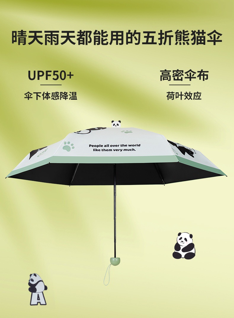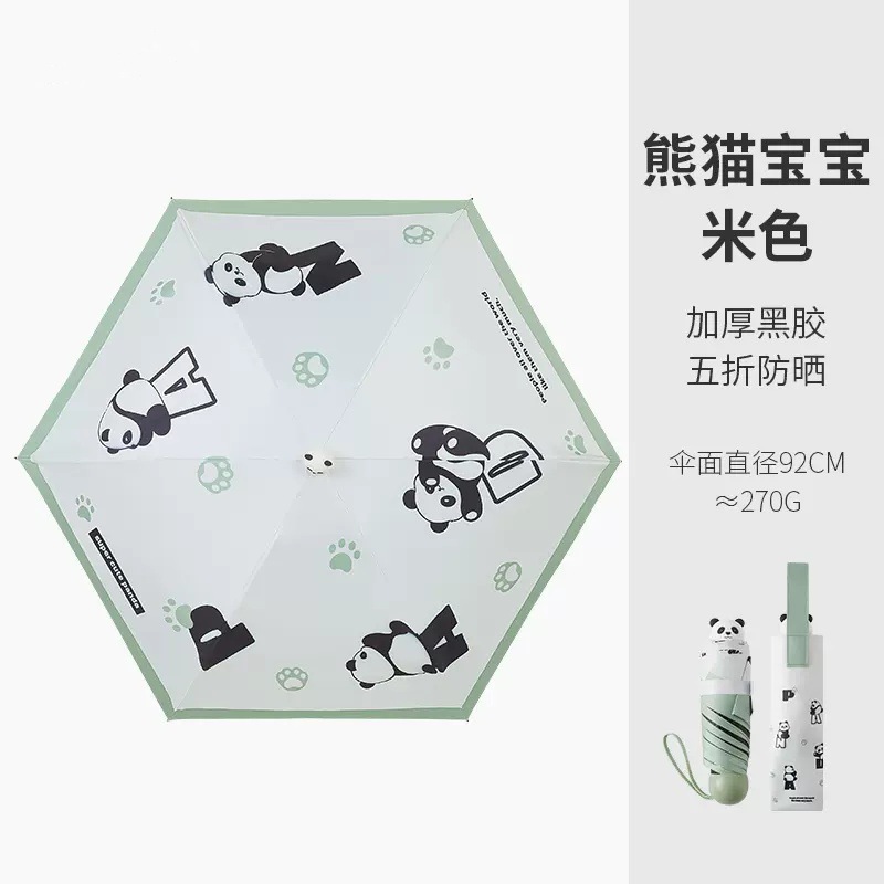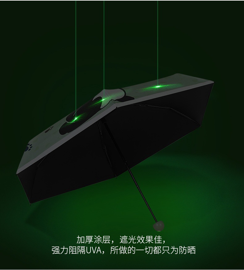 Zhiyu 팬더 헤드 캡슐 우산 50% 접어 작고 쉬운 휴대용 검은 고무 태양 보호 자외선 보호 햇빛과 비 보호 이중 목적 햇빛 우산