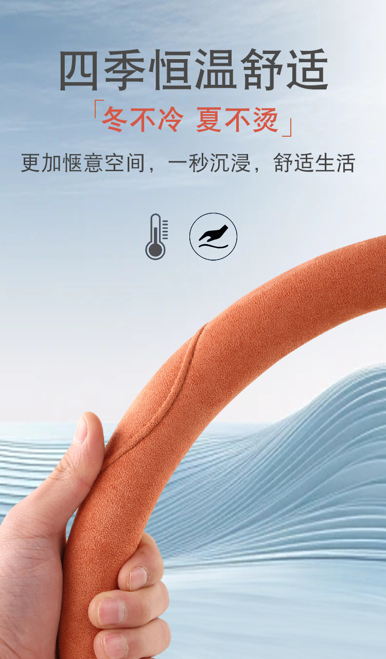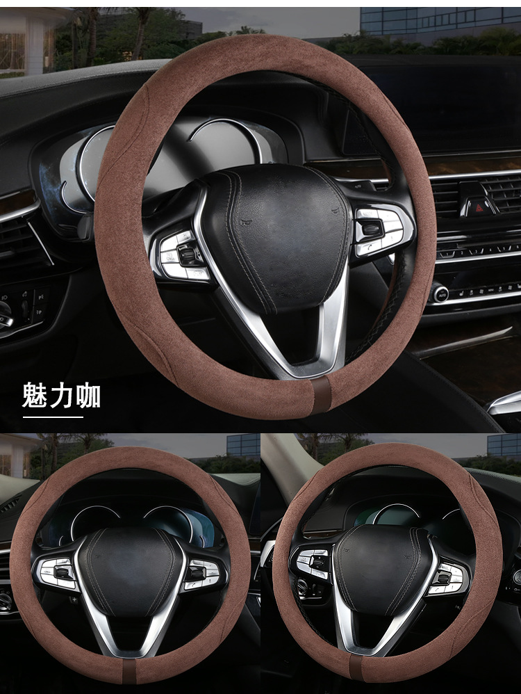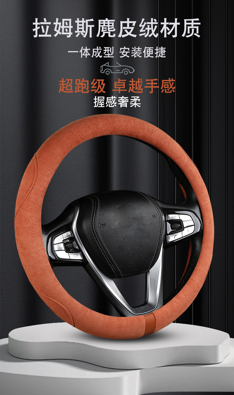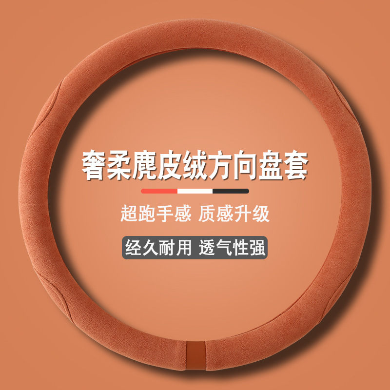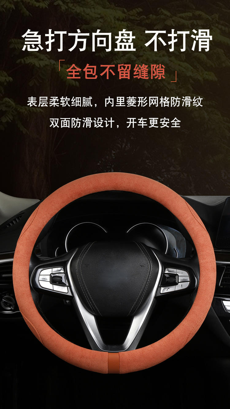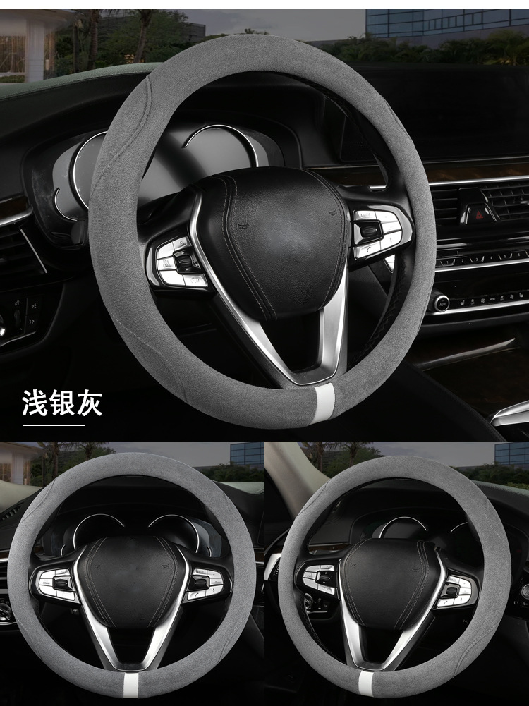 스웨이드 스티어링 휠 커버, 땀 흡수, 미끄럼 방지, 내마모성, 편안함, 통기성, 사계절 사용 가능, 고급스러운 느낌