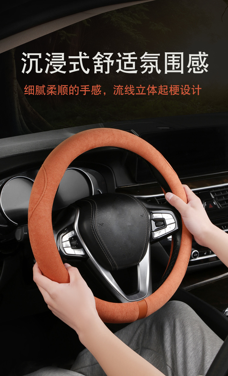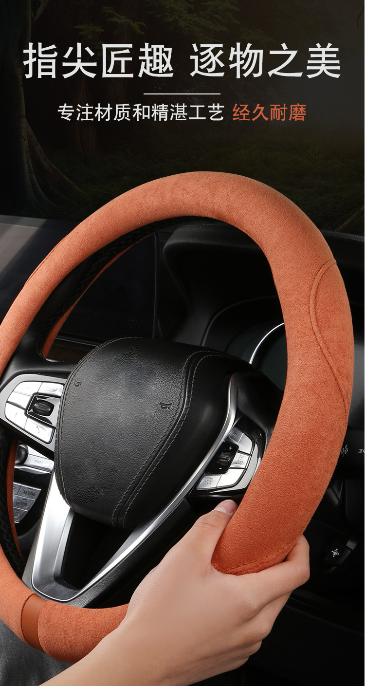 스웨이드 스티어링 휠 커버, 땀 흡수, 미끄럼 방지, 내마모성, 편안함, 통기성, 사계절 사용 가능, 고급스러운 느낌스토어 가기