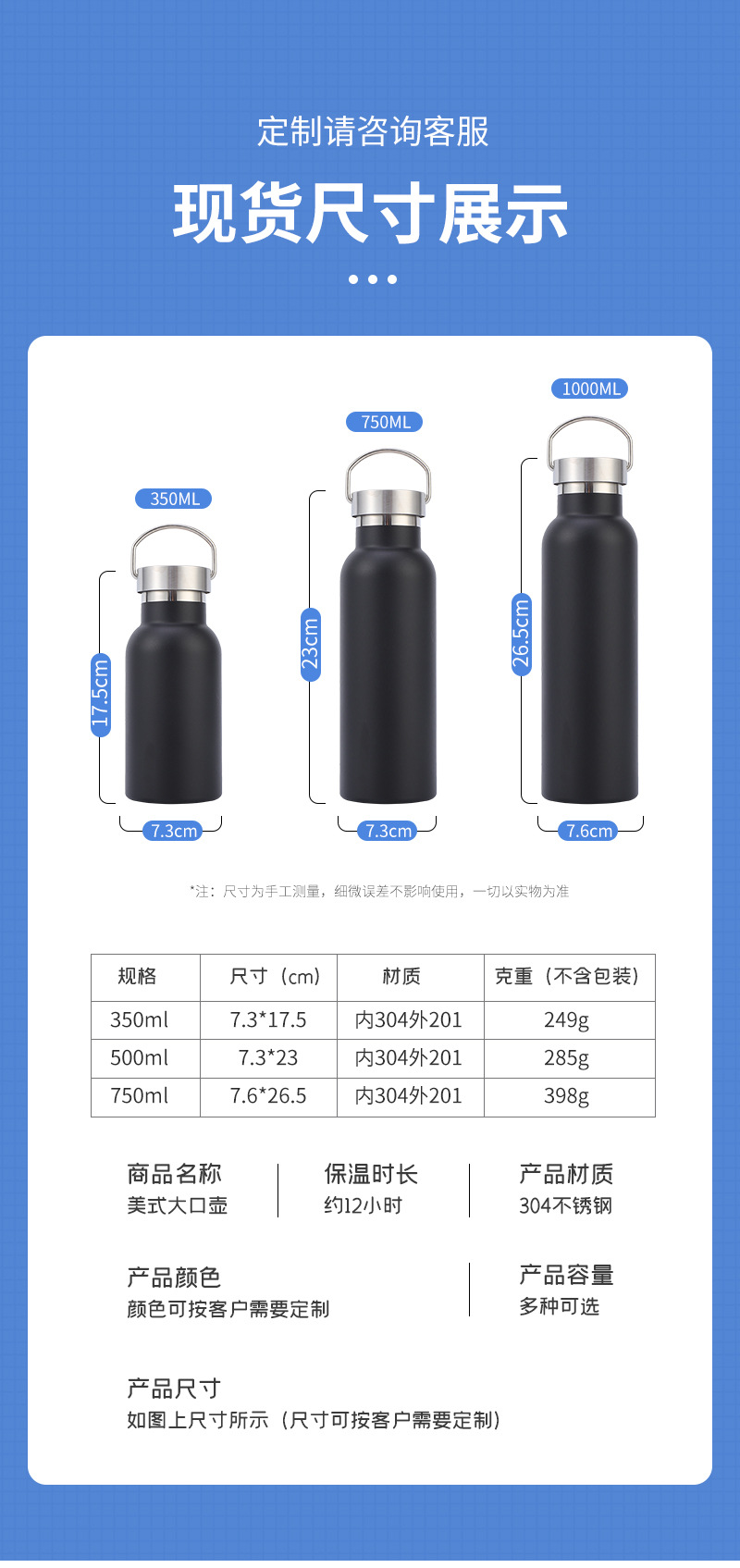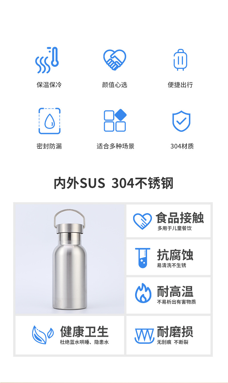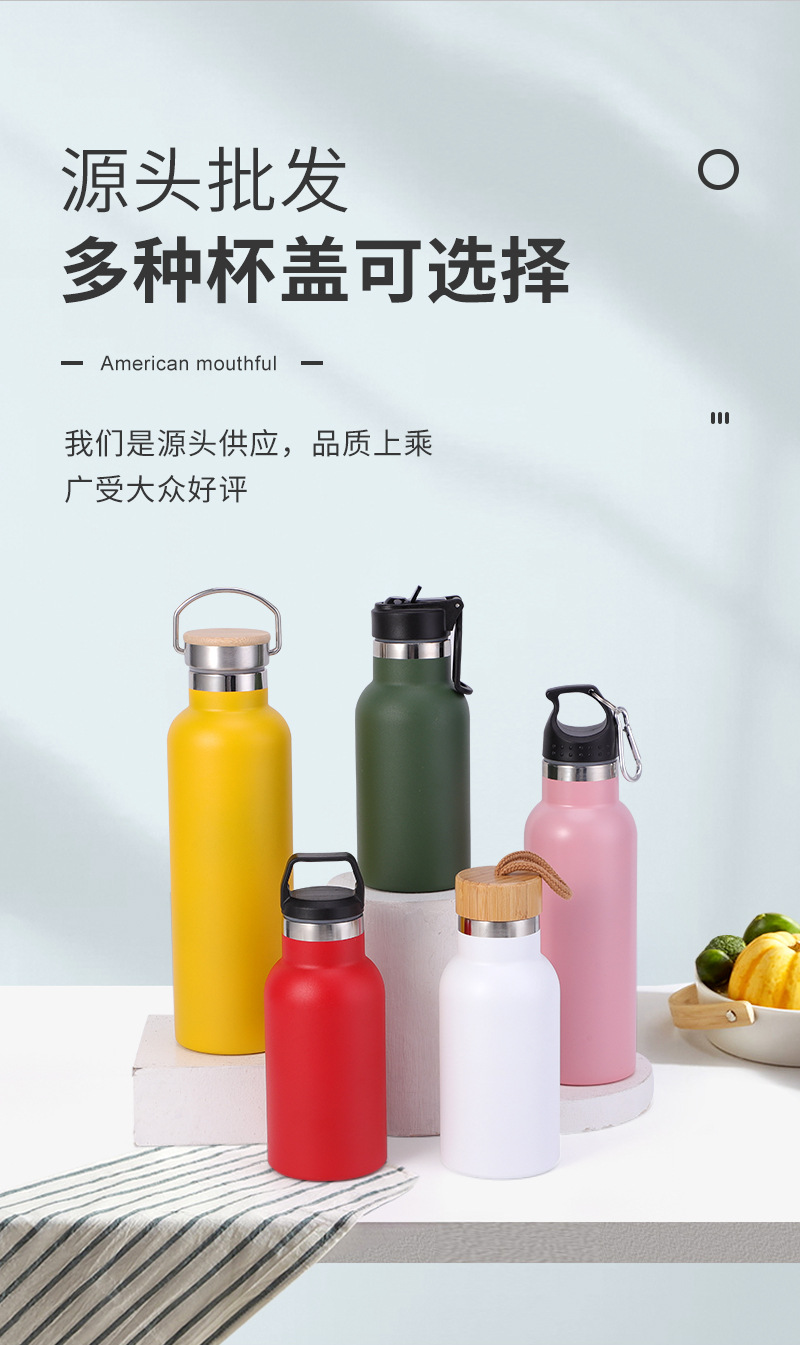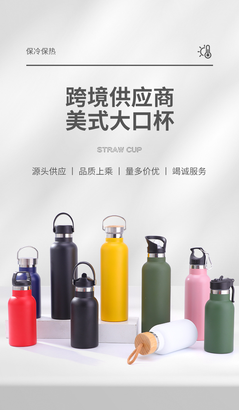 맞춤형 야외 여행 휴대용 등산 주전자 휴대용 컵 미국식 대형 입 스포츠 물병 304 스테인레스 스틸 단열재스토어 가기