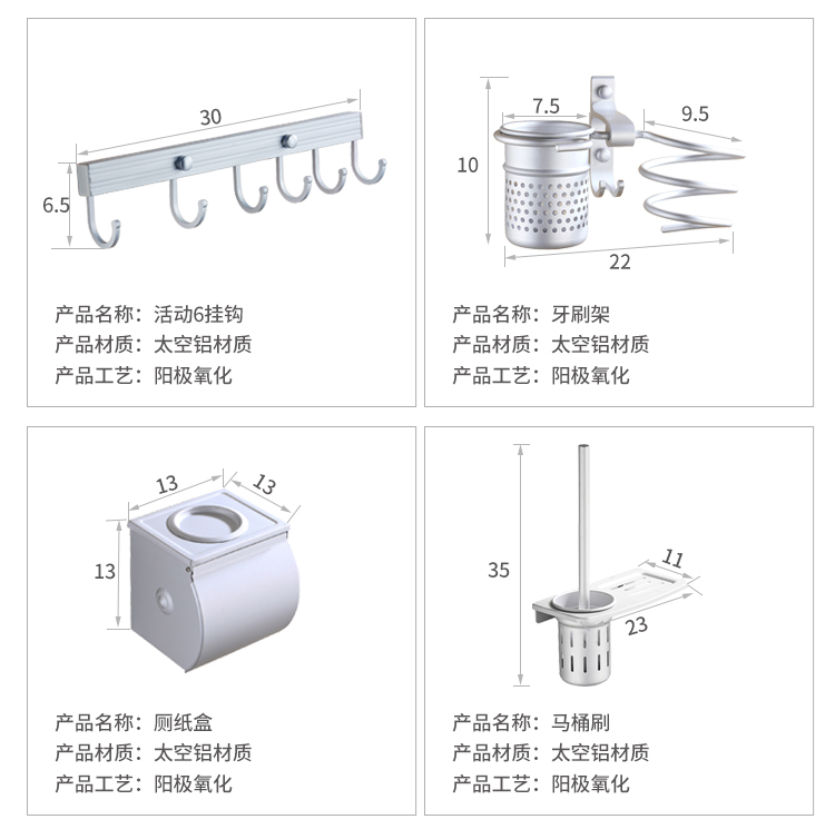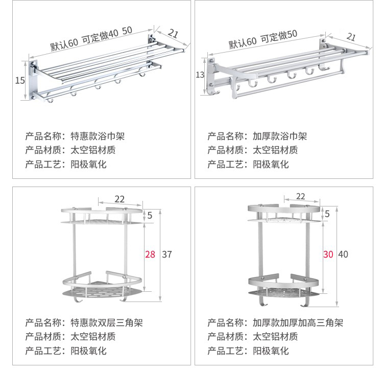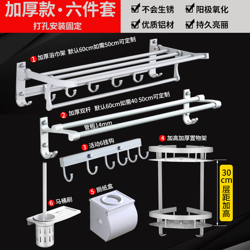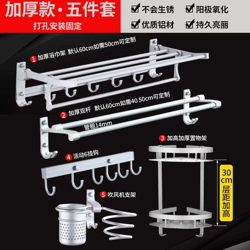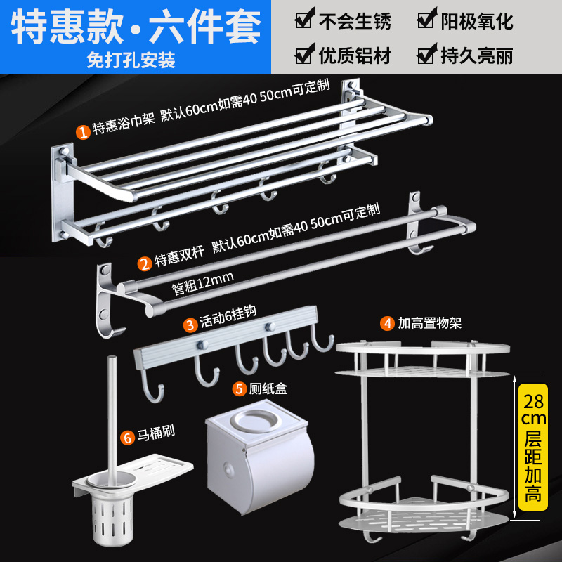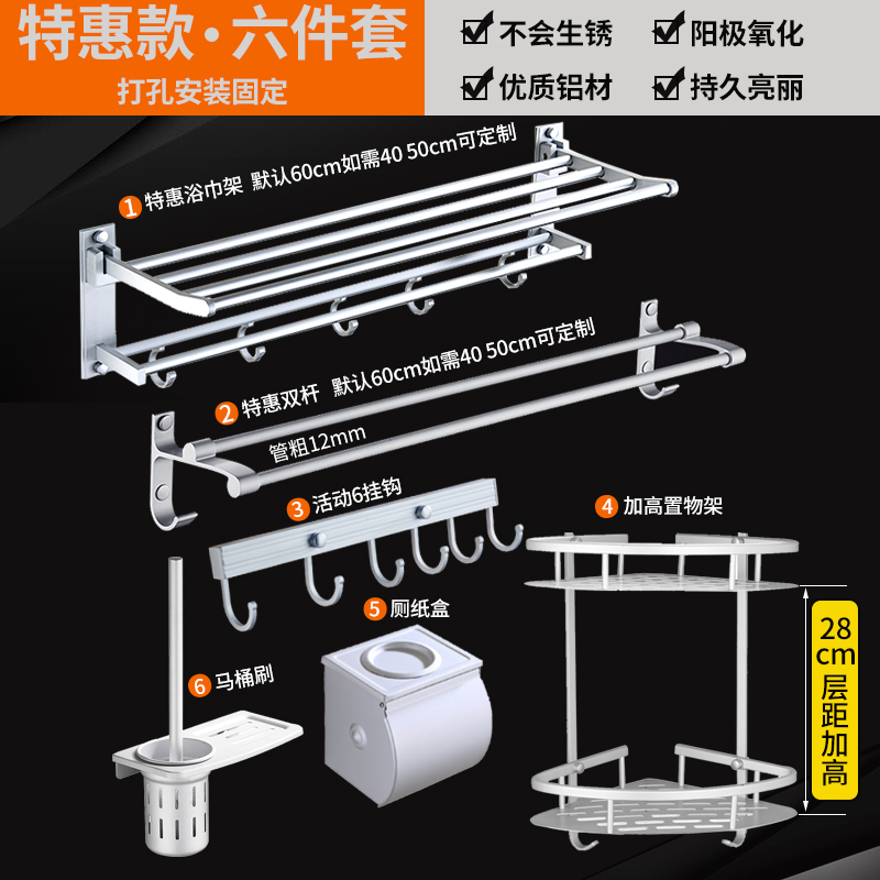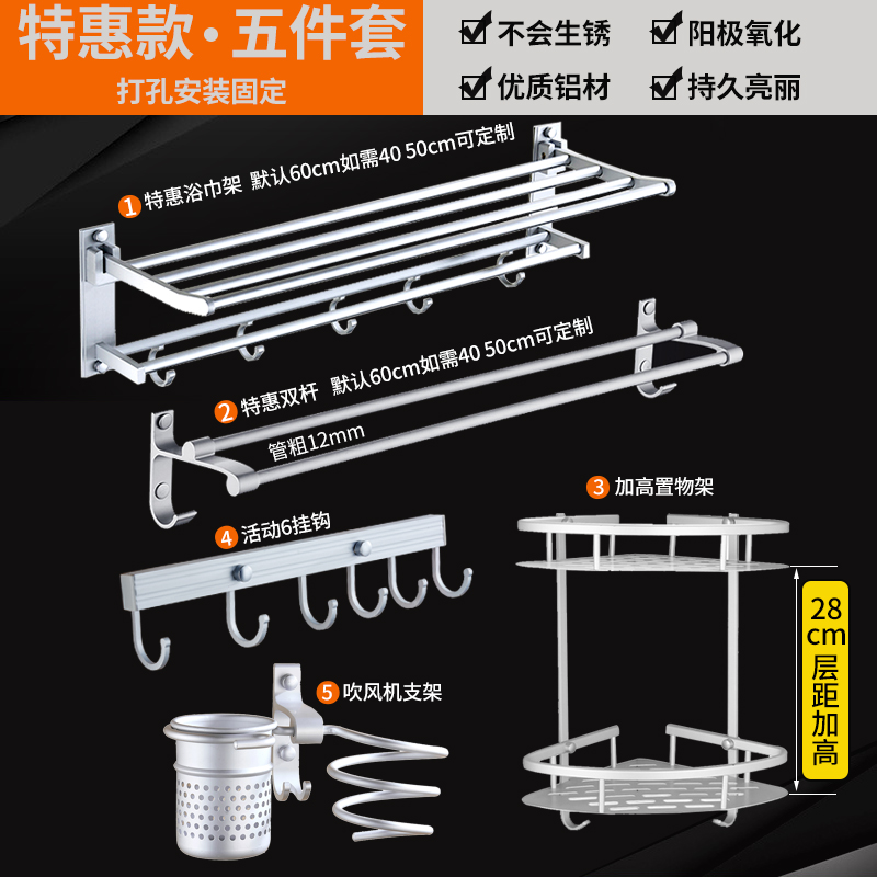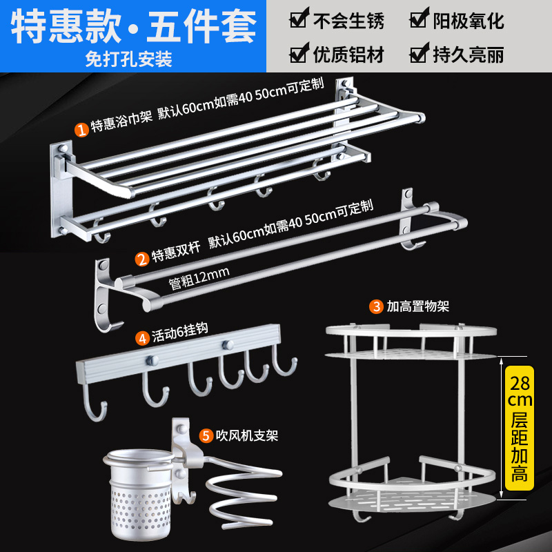 수건 랙 공간 알루미늄 화장실 랙 벽걸이 형 욕실 하드웨어 펜던트 욕실 화장실 5 개 또는 6 개 세트