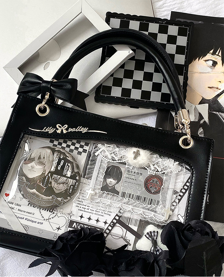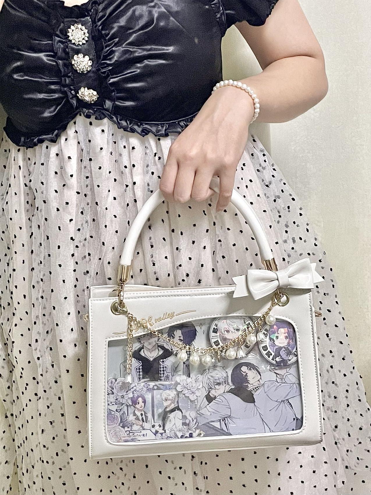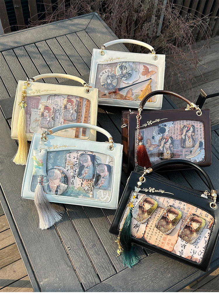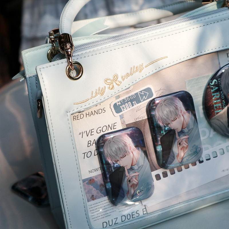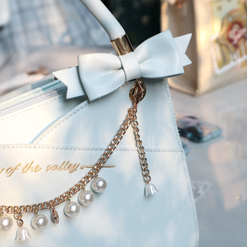 [릴리 오브 더 밸리 봄 프롤로그] 녹색 박공 오리지널 통증 가방 휴대용 어깨 메신저 가방 투명 올 매치 골동품 여성 간식스토어 가기