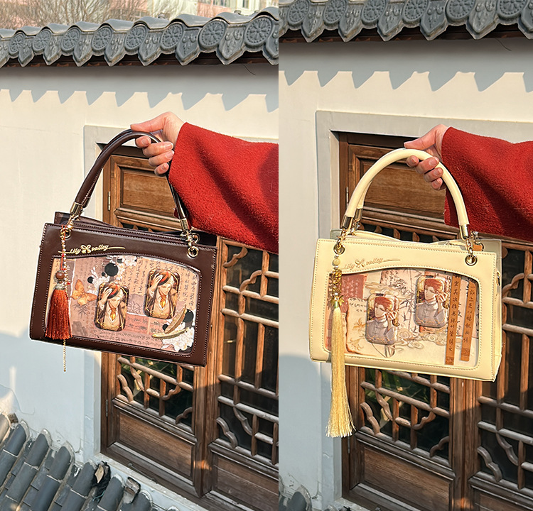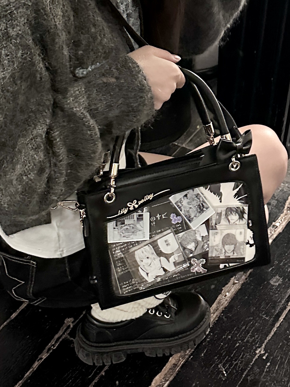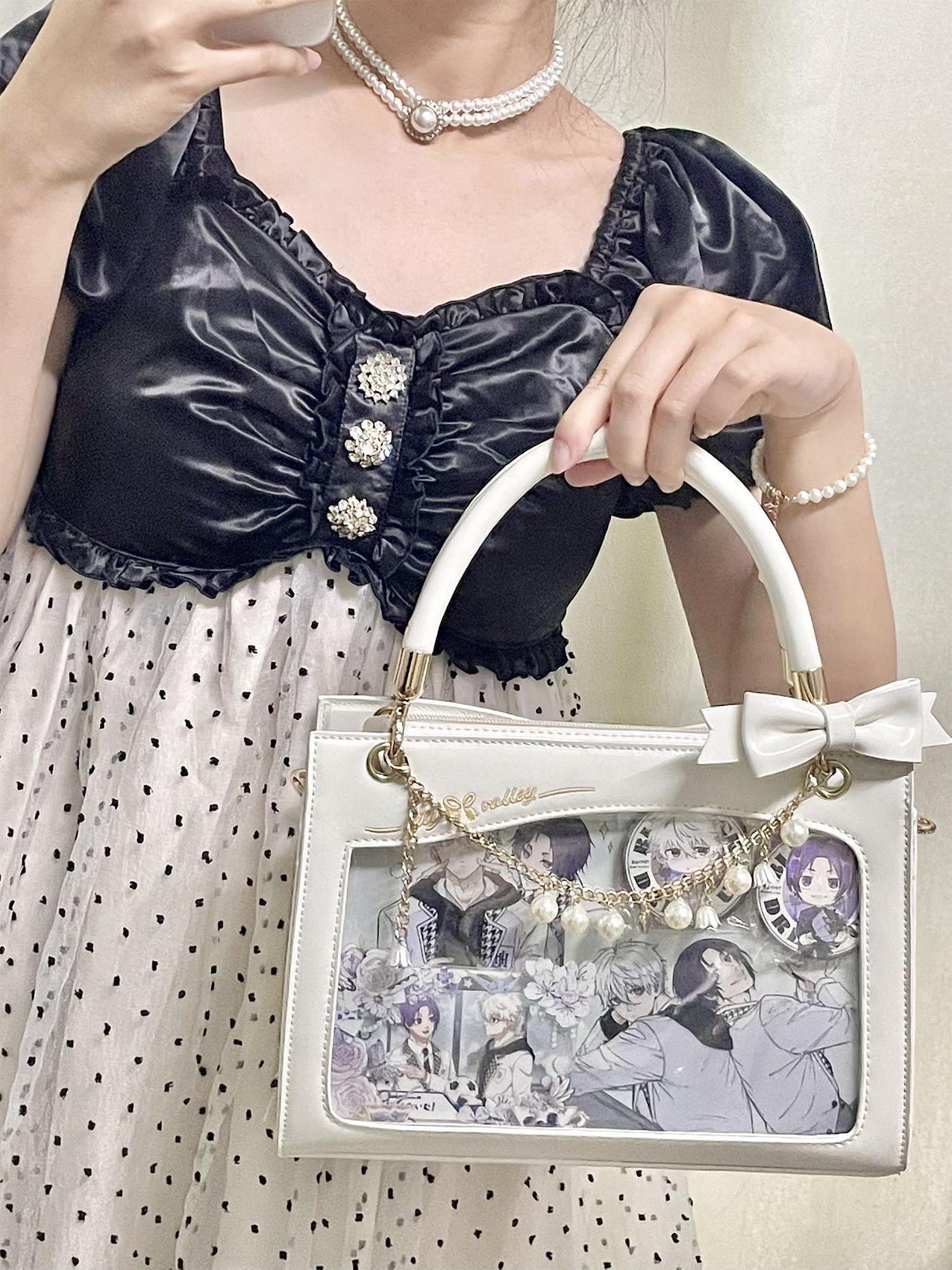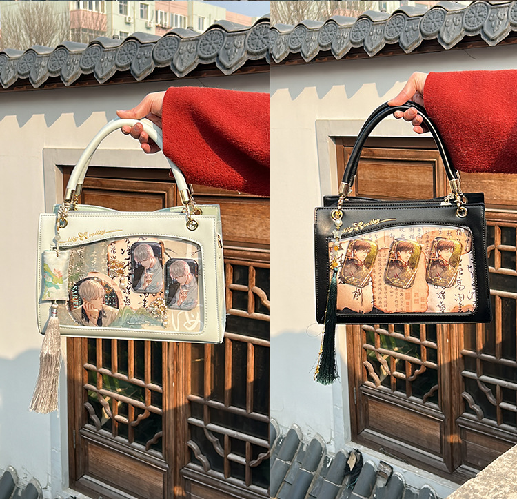 [릴리 오브 더 밸리 봄 프롤로그] 녹색 박공 오리지널 통증 가방 휴대용 어깨 메신저 가방 투명 올 매치 골동품 여성 간식스토어 가기