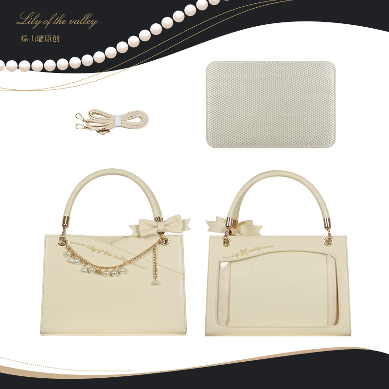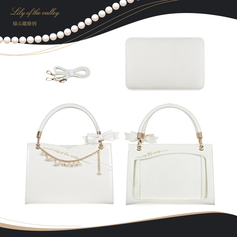 [릴리 오브 더 밸리 봄 프롤로그] 녹색 박공 오리지널 통증 가방 휴대용 어깨 메신저 가방 투명 올 매치 골동품 여성 간식