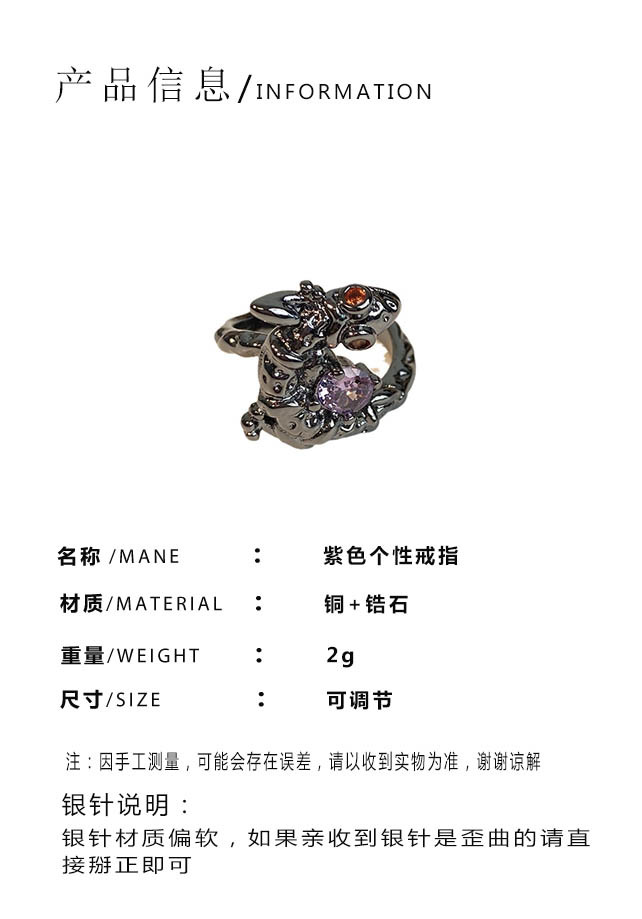 새로운 어두운 성격 틈새 디자인 센스 퍼플 오픈 링 패션 하이 센스 콜드 스타일 패션 링 여성스토어 가기