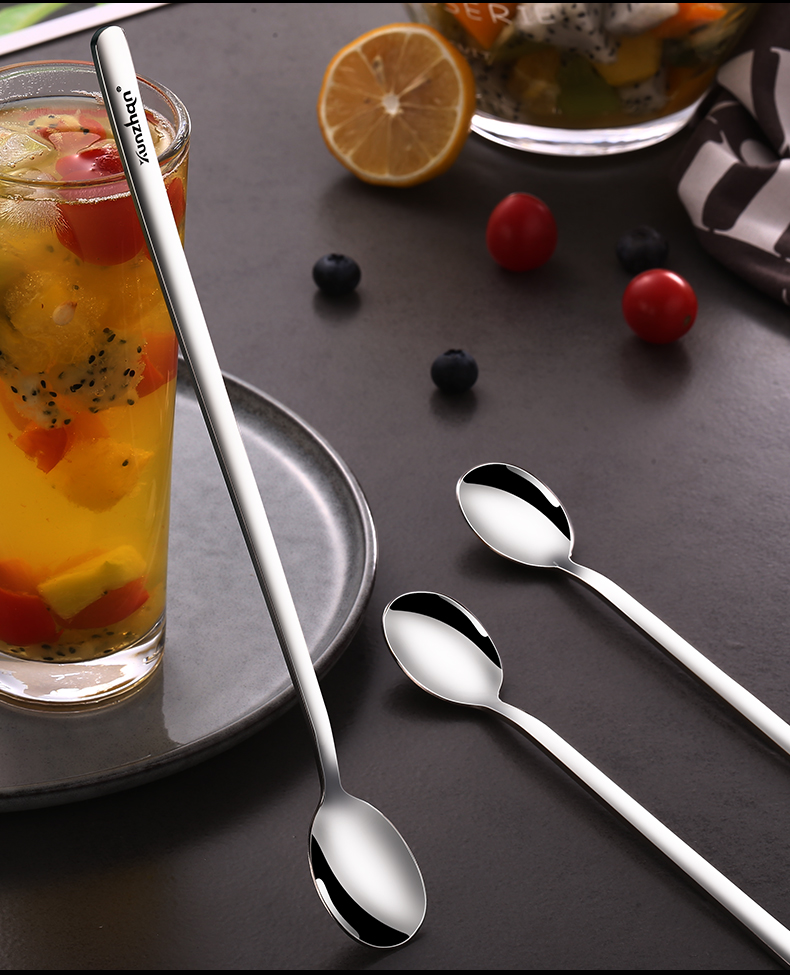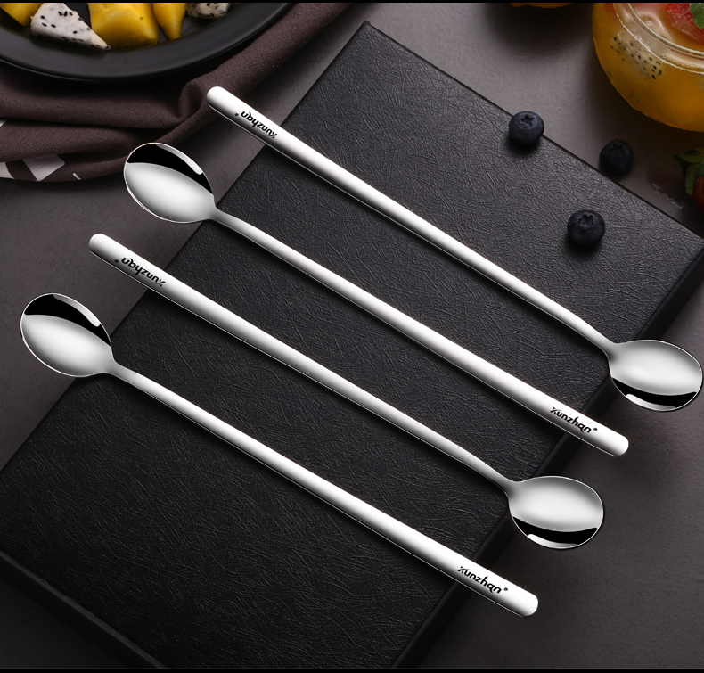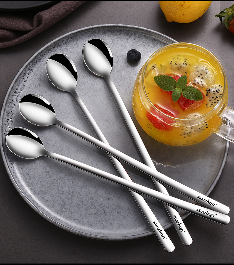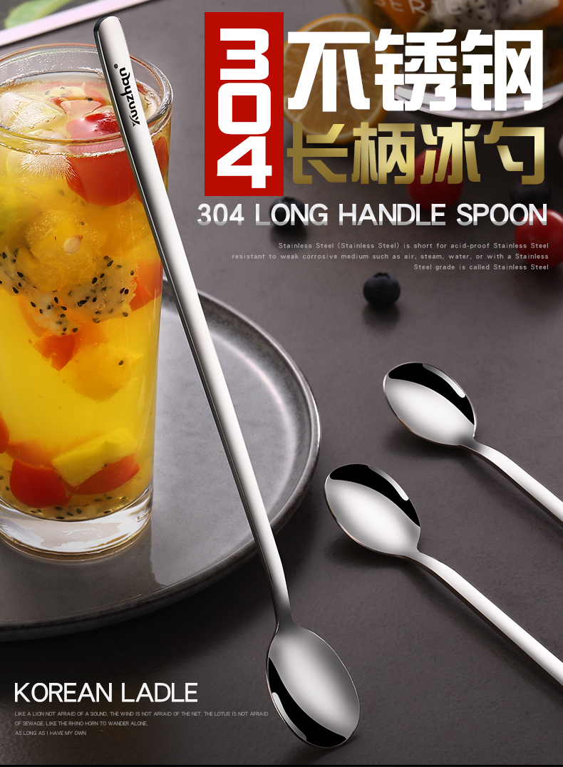 304 스테인레스 스틸 혼합 숟가락 긴 손잡이 작은 숟가락 조미료 커피 숟가락 길쭉한 창조적 인 얼음 숟가락 디저트 꿀 철스토어 가기