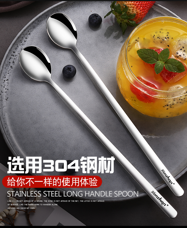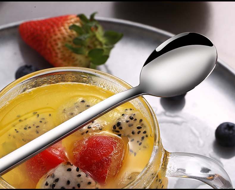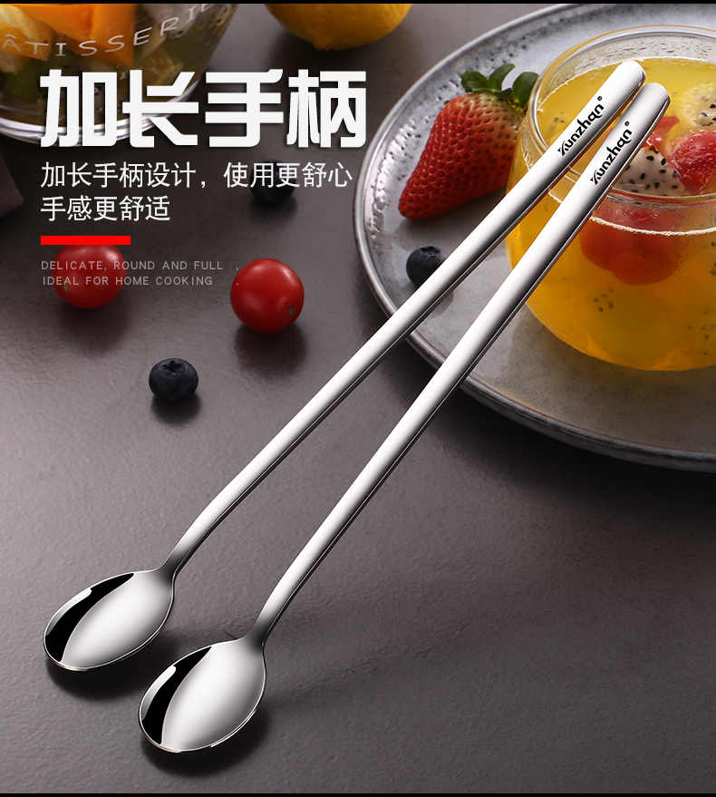 304 스테인레스 스틸 혼합 숟가락 긴 손잡이 작은 숟가락 조미료 커피 숟가락 길쭉한 창조적 인 얼음 숟가락 디저트 꿀 철