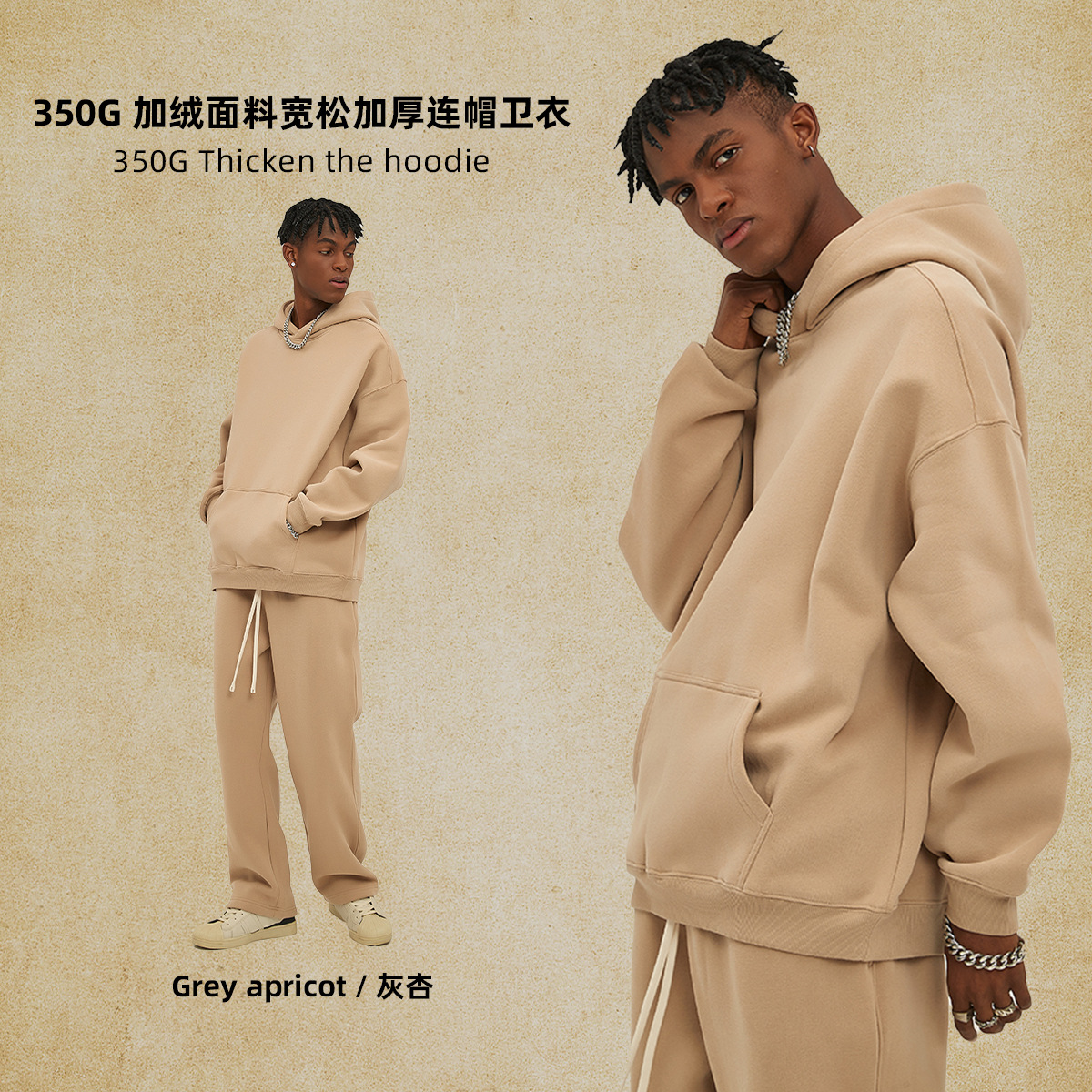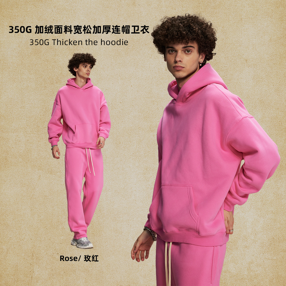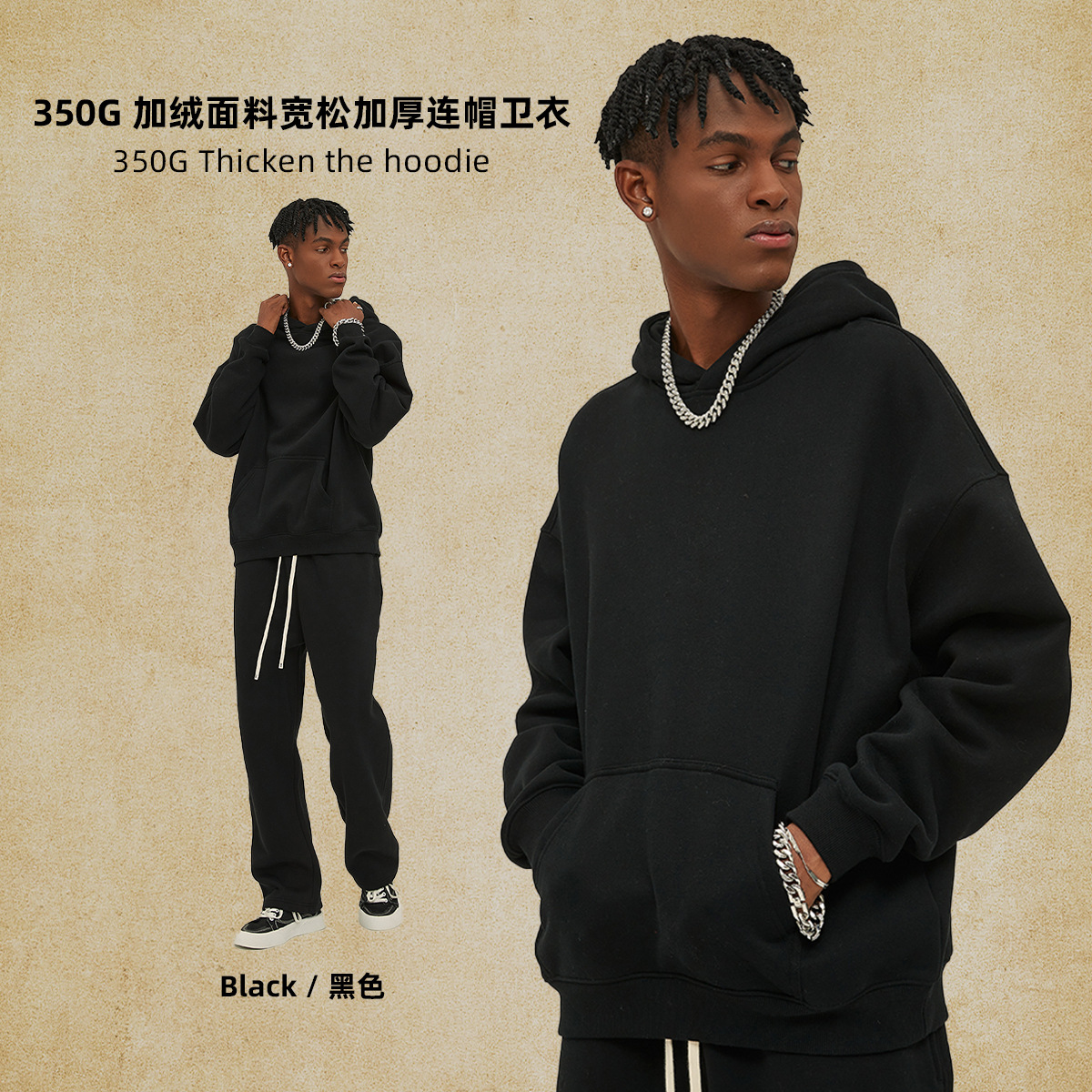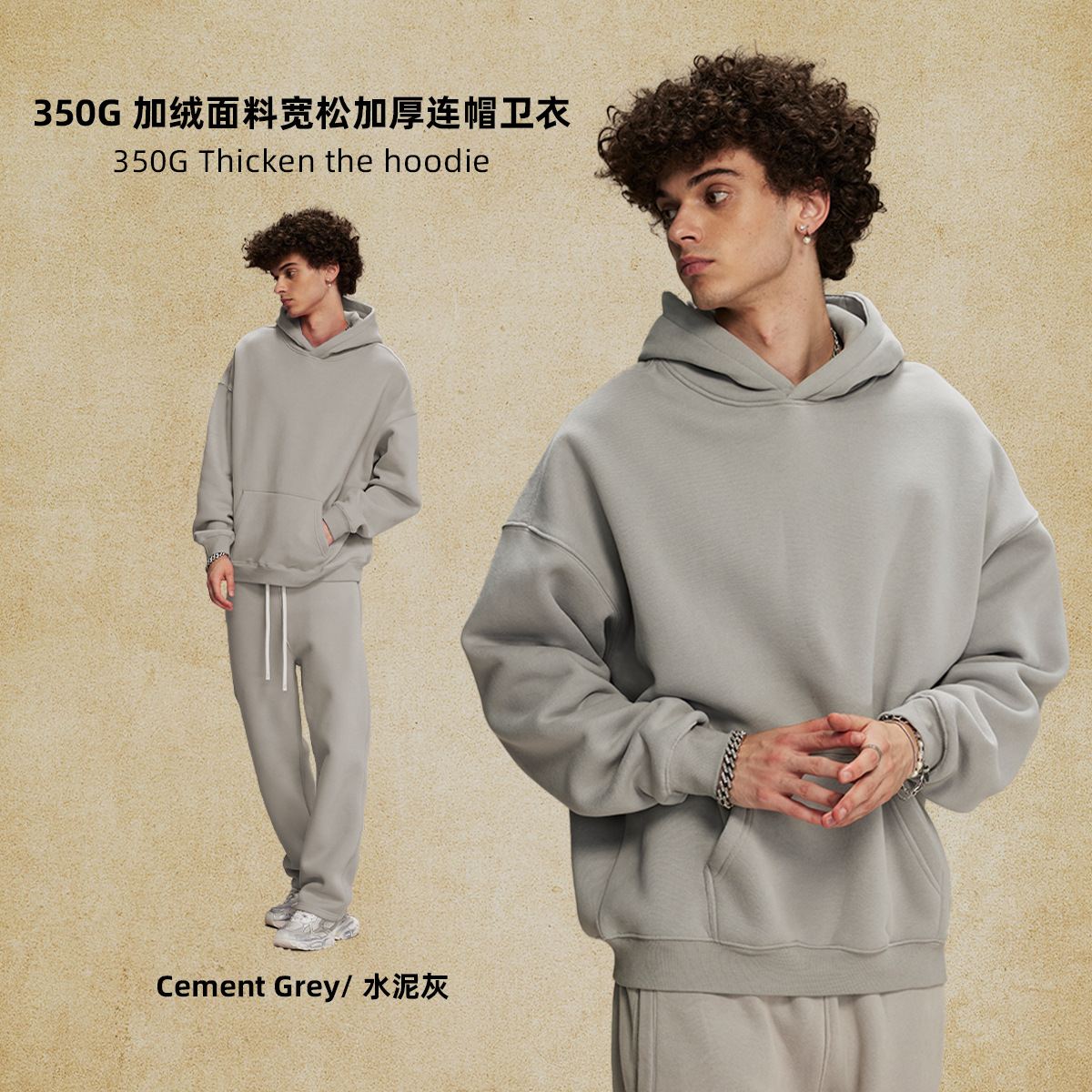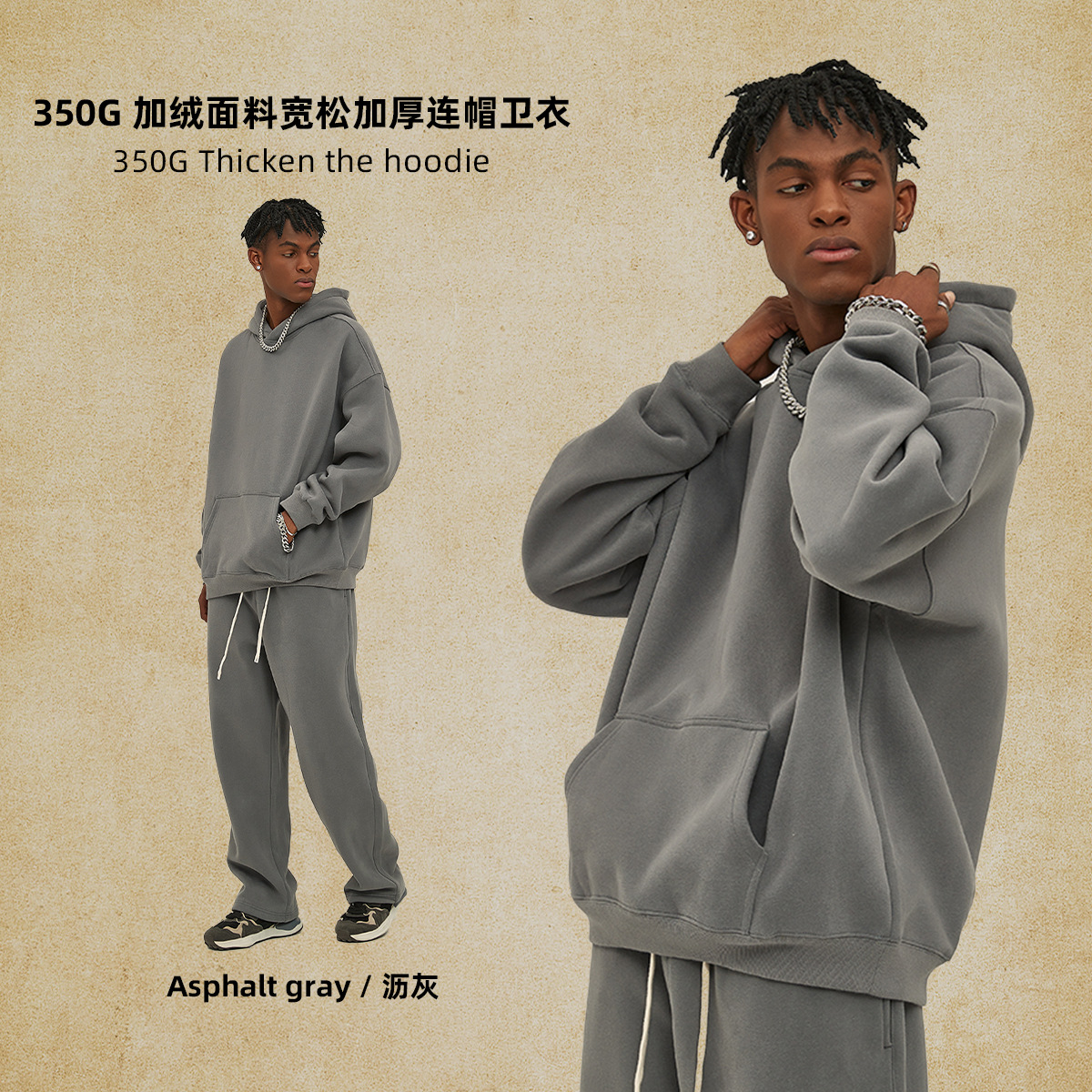 2025 가을, 겨울 신제품 특대 두꺼운 후드 유행 브랜드 남성 운동복 미국 풀오버 350g 남성용 단색 운동복