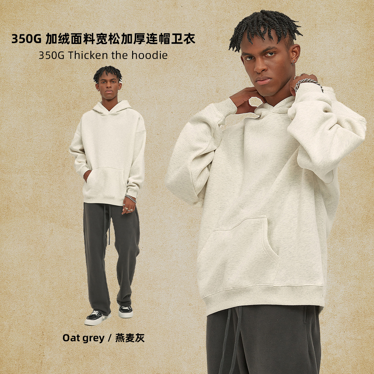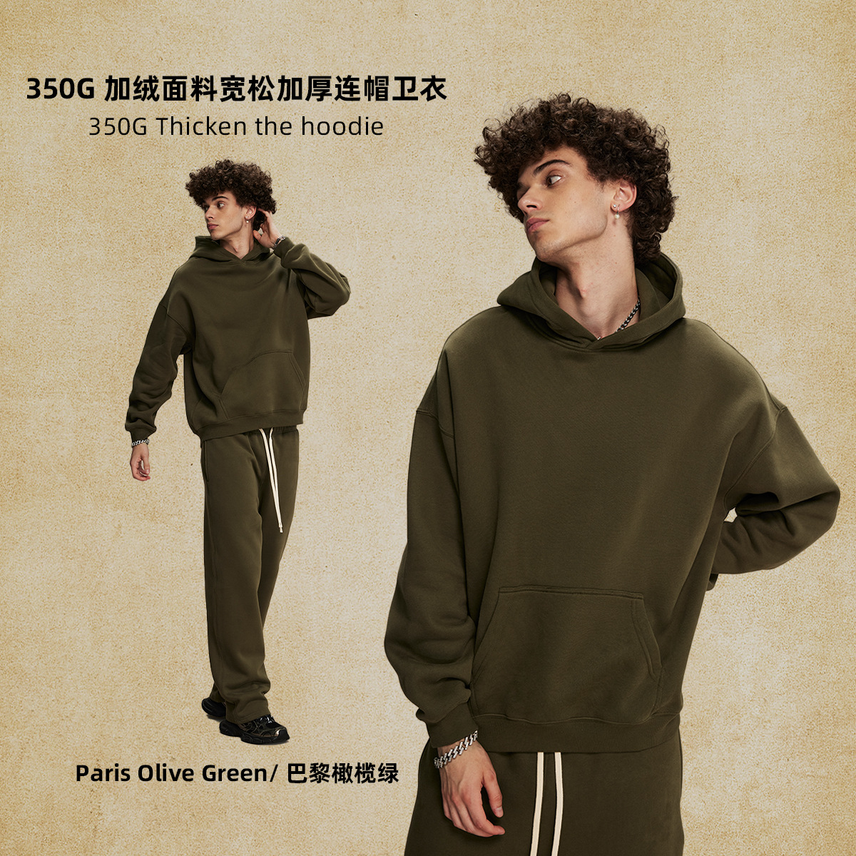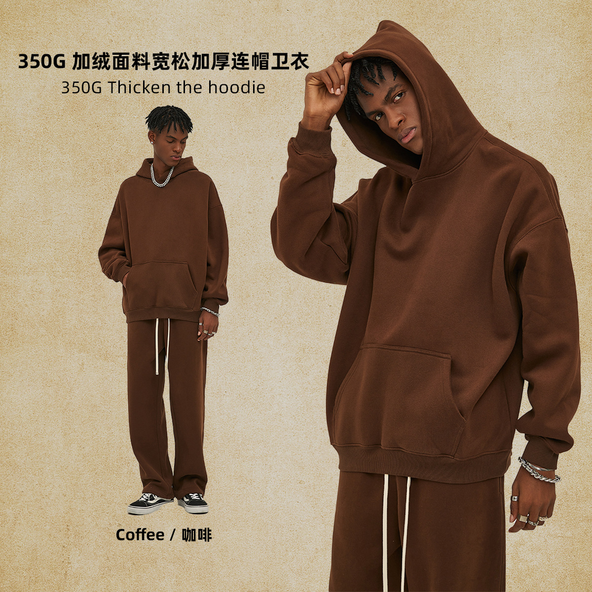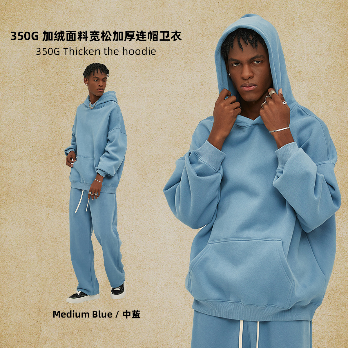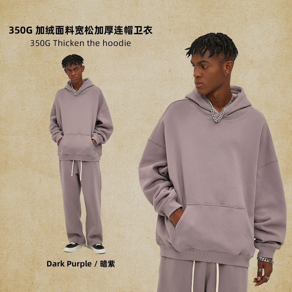 2025 가을, 겨울 신제품 특대 두꺼운 후드 유행 브랜드 남성 운동복 미국 풀오버 350g 남성용 단색 운동복