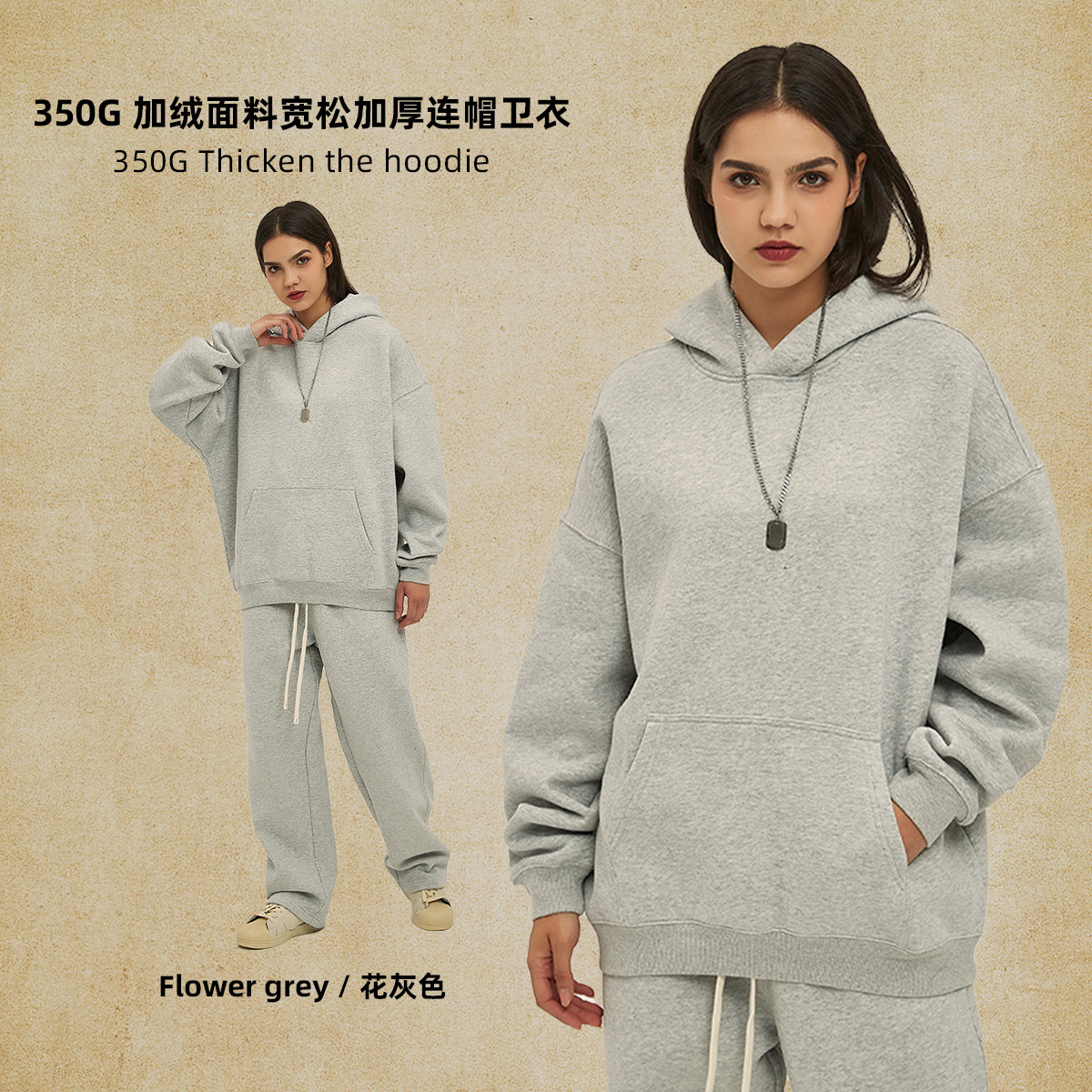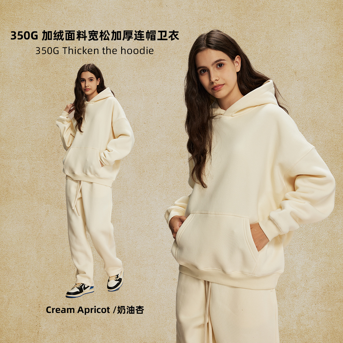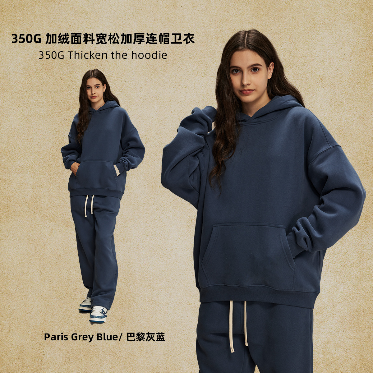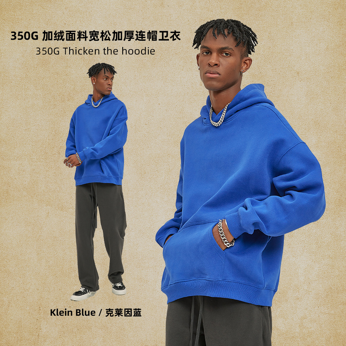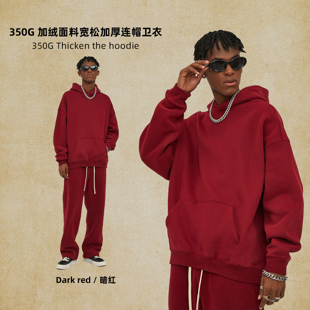 2025 가을, 겨울 신제품 특대 두꺼운 후드 유행 브랜드 남성 운동복 미국 풀오버 350g 남성용 단색 운동복