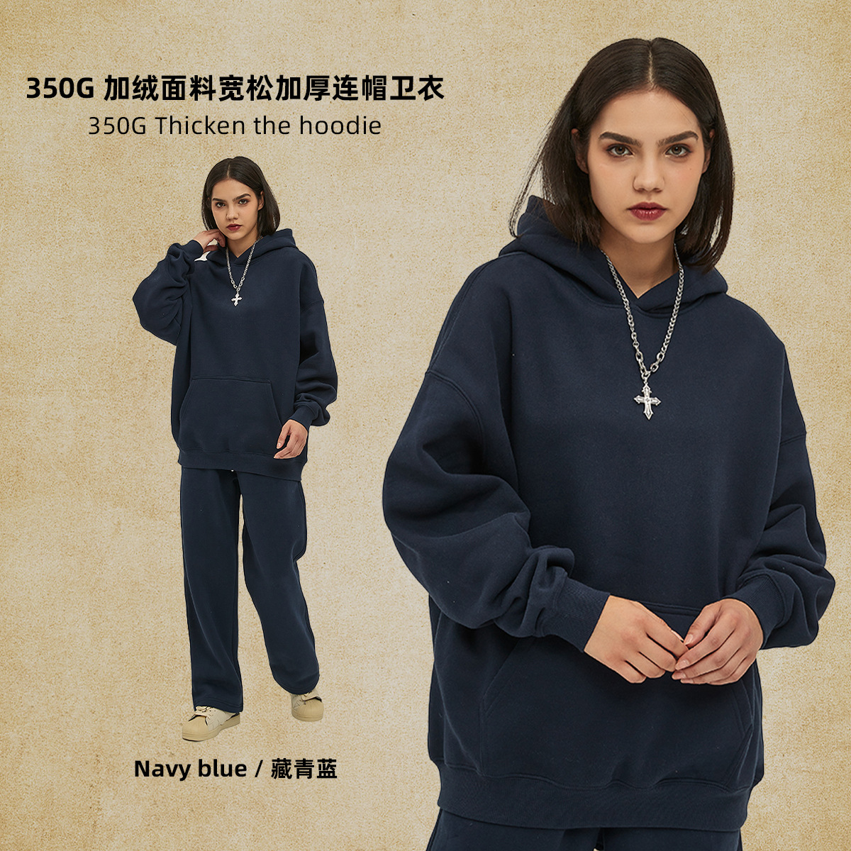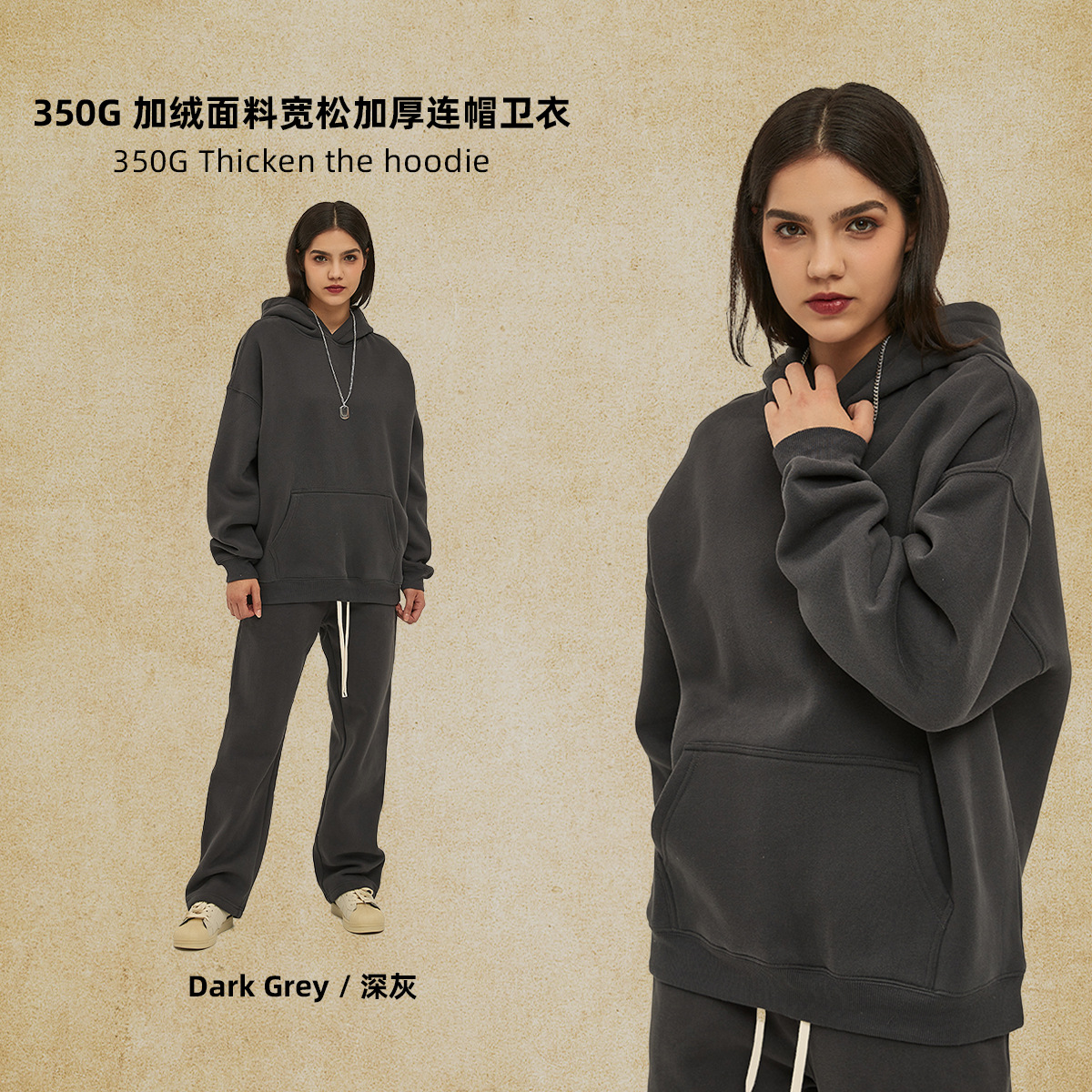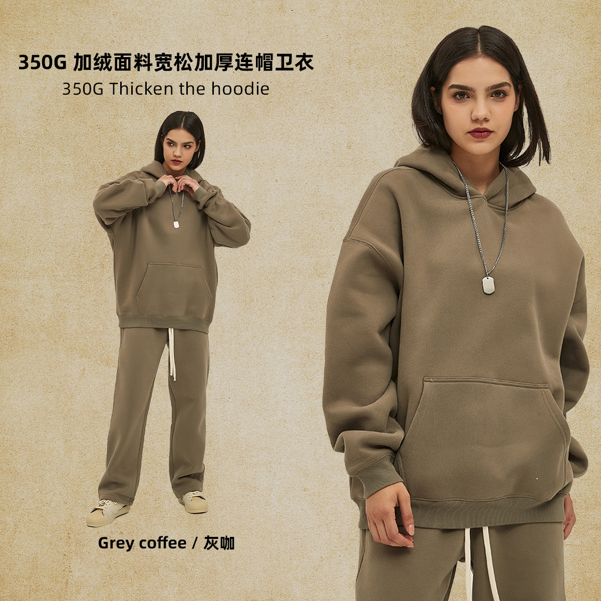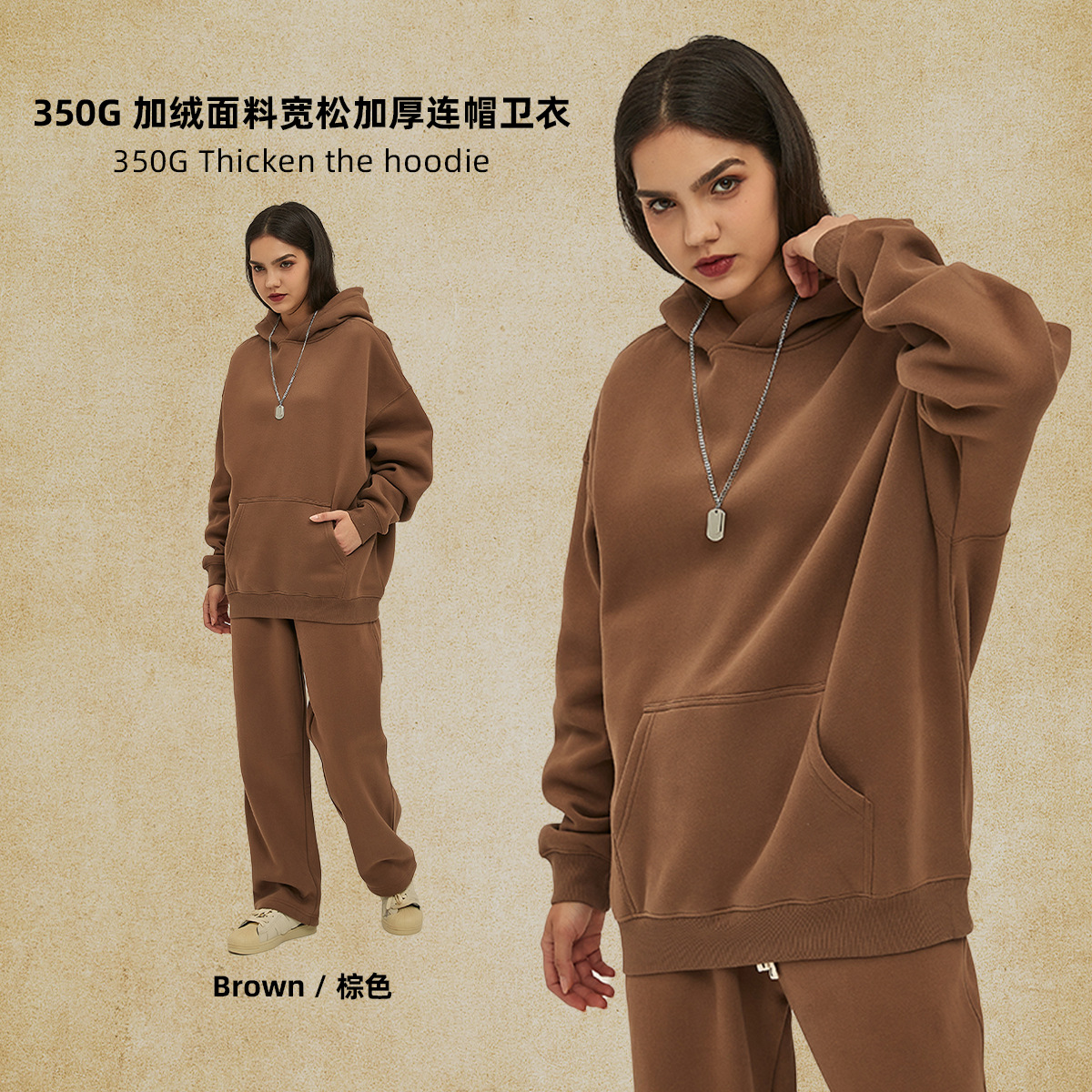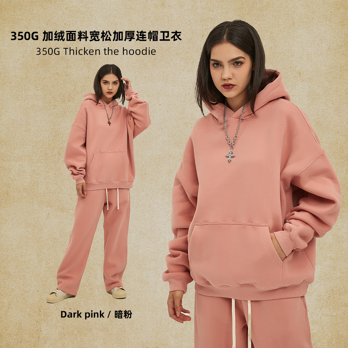 2025 가을, 겨울 신제품 특대 두꺼운 후드 유행 브랜드 남성 운동복 미국 풀오버 350g 남성용 단색 운동복