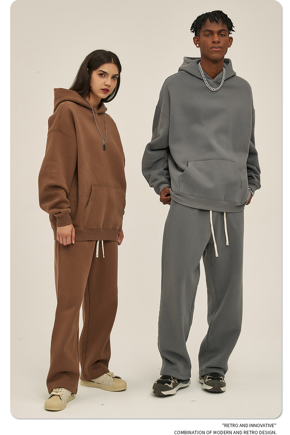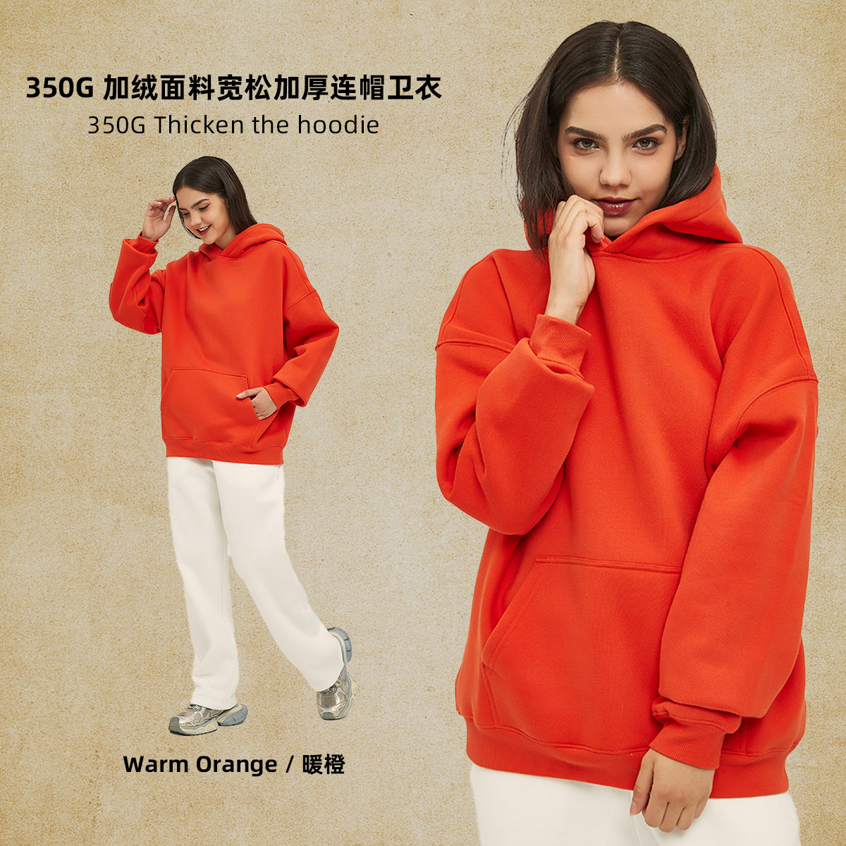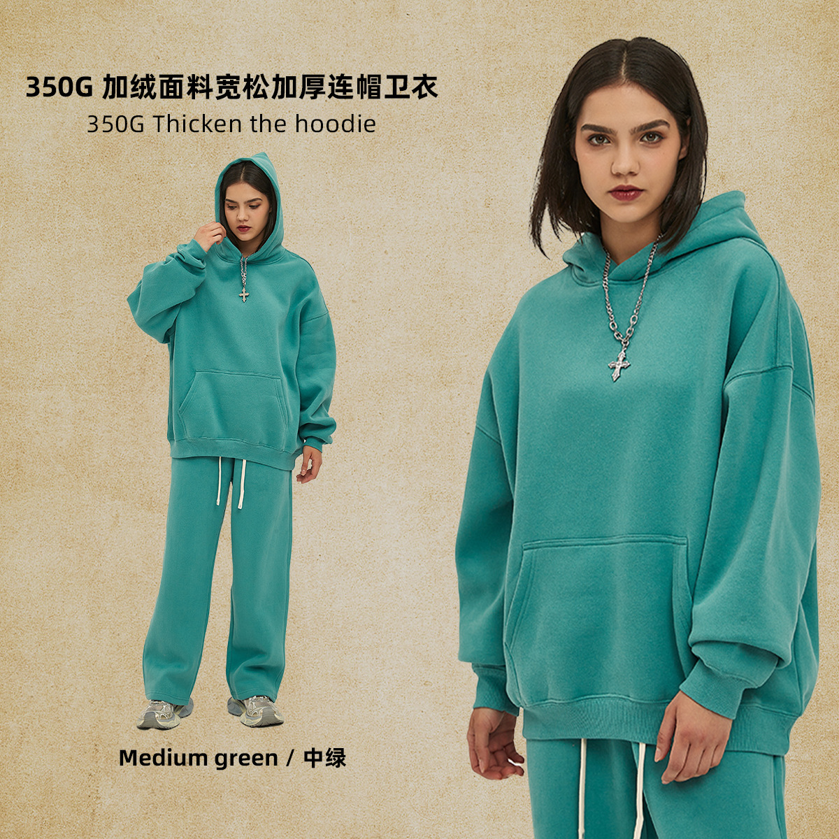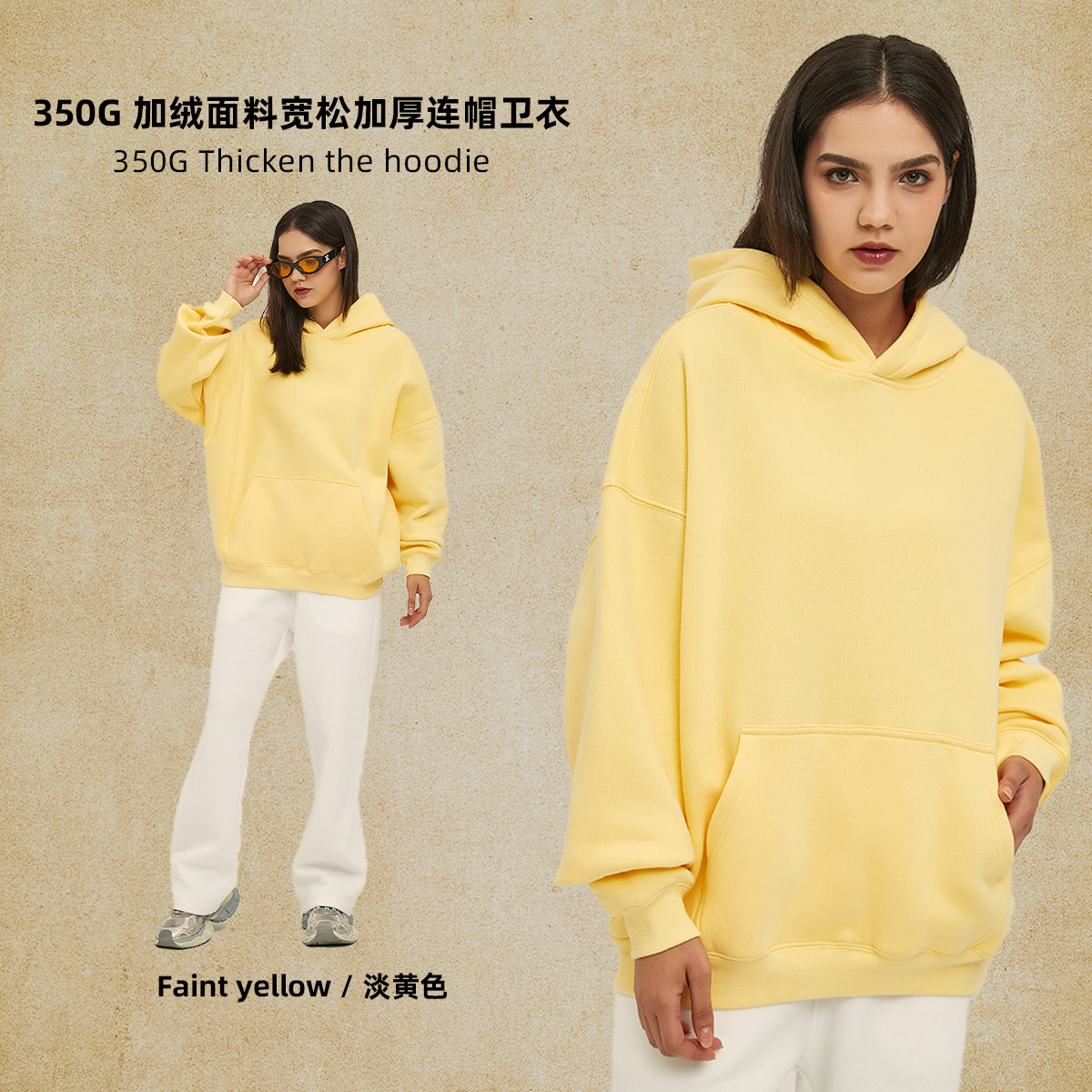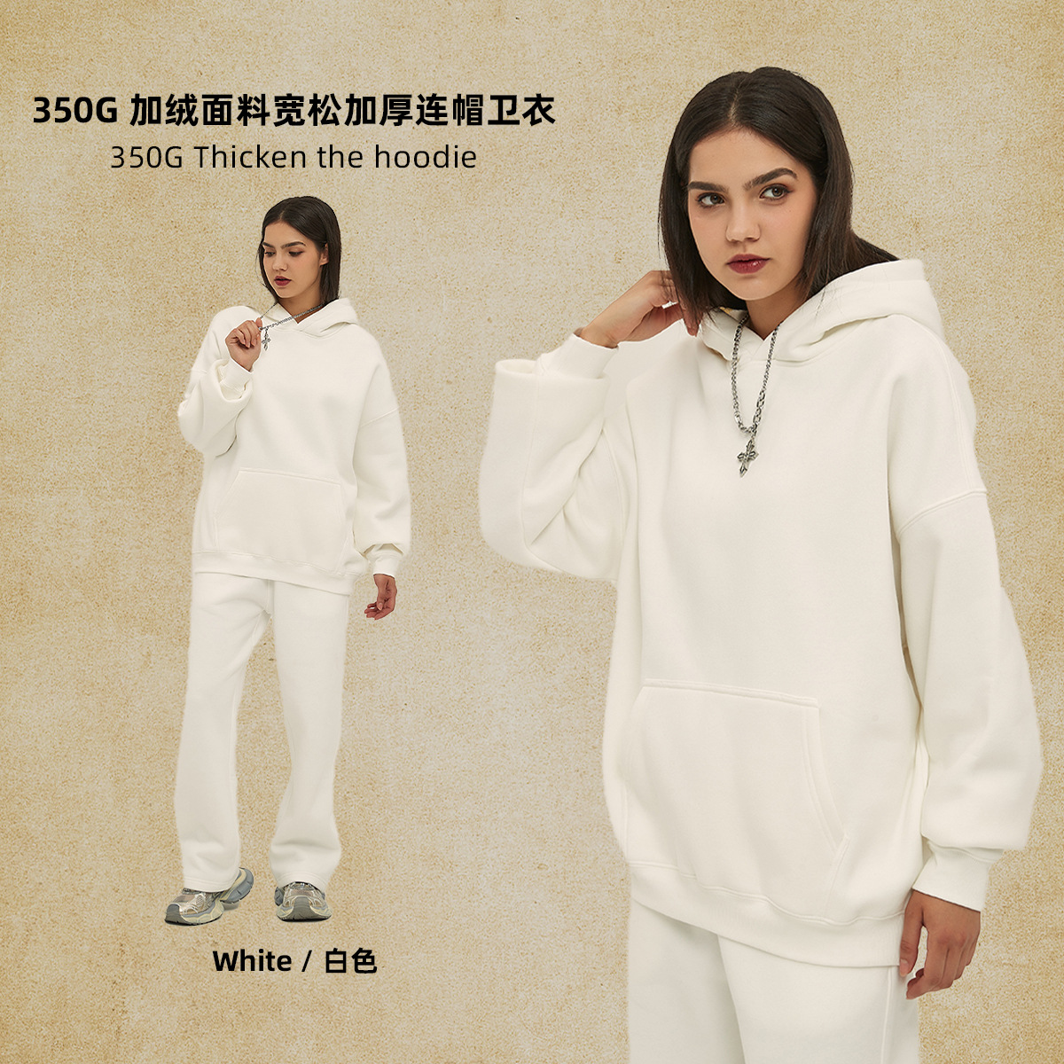 2025 가을, 겨울 신제품 특대 두꺼운 후드 유행 브랜드 남성 운동복 미국 풀오버 350g 남성용 단색 운동복