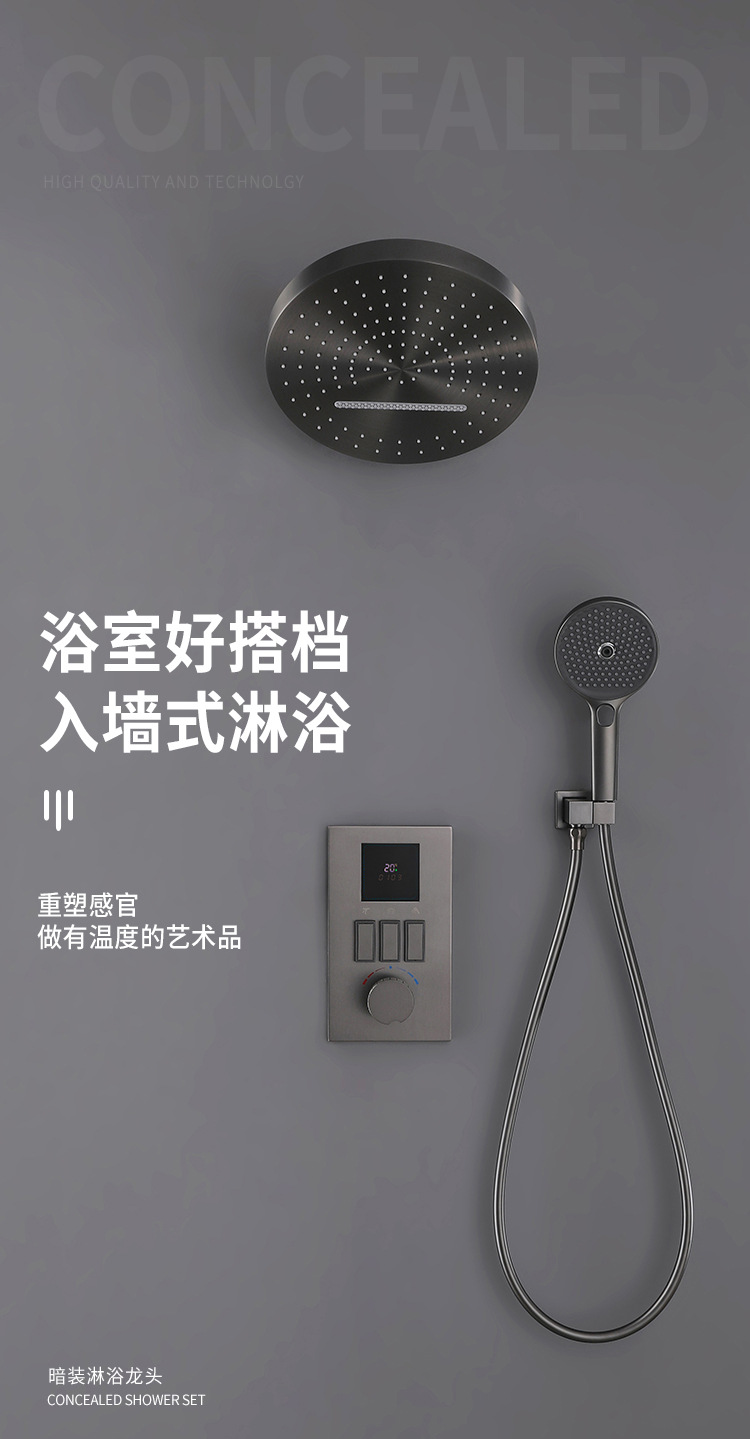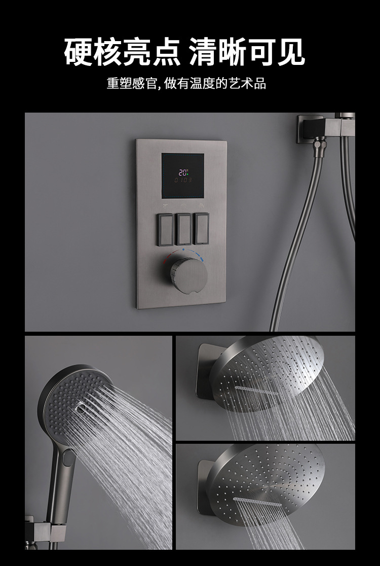 현대식 순동 매립형 샤워 세트 가정용 욕실 샤워기 온도 조절 내장형 레인 샤워기 가압 샤워기스토어 가기
