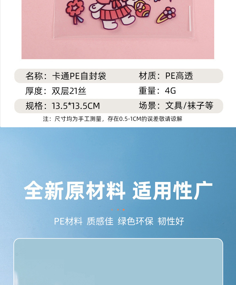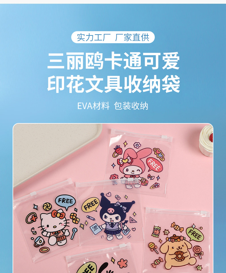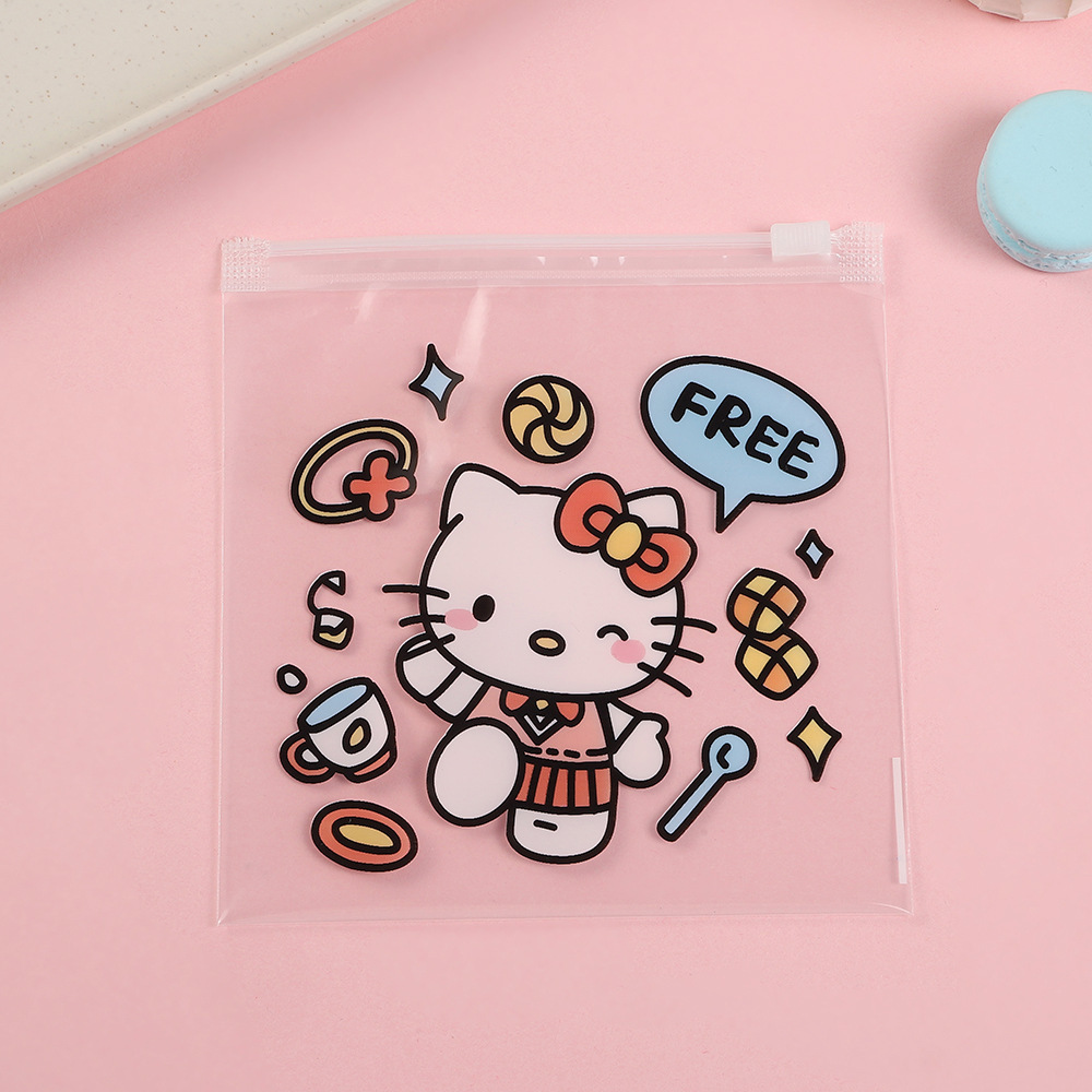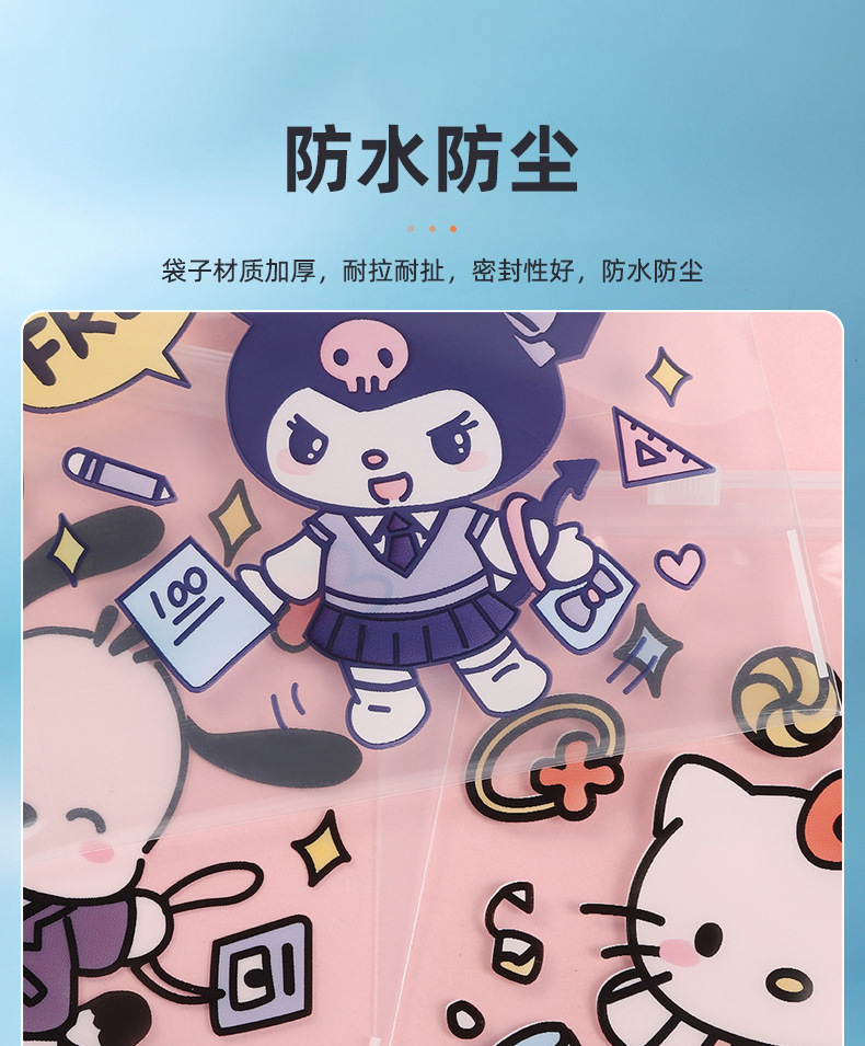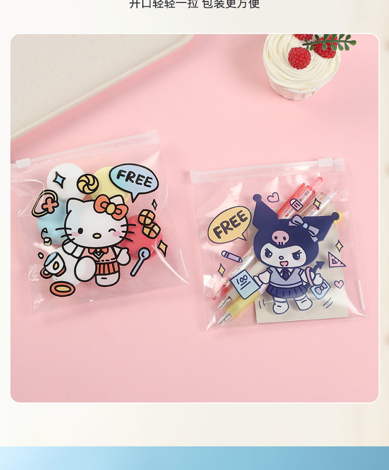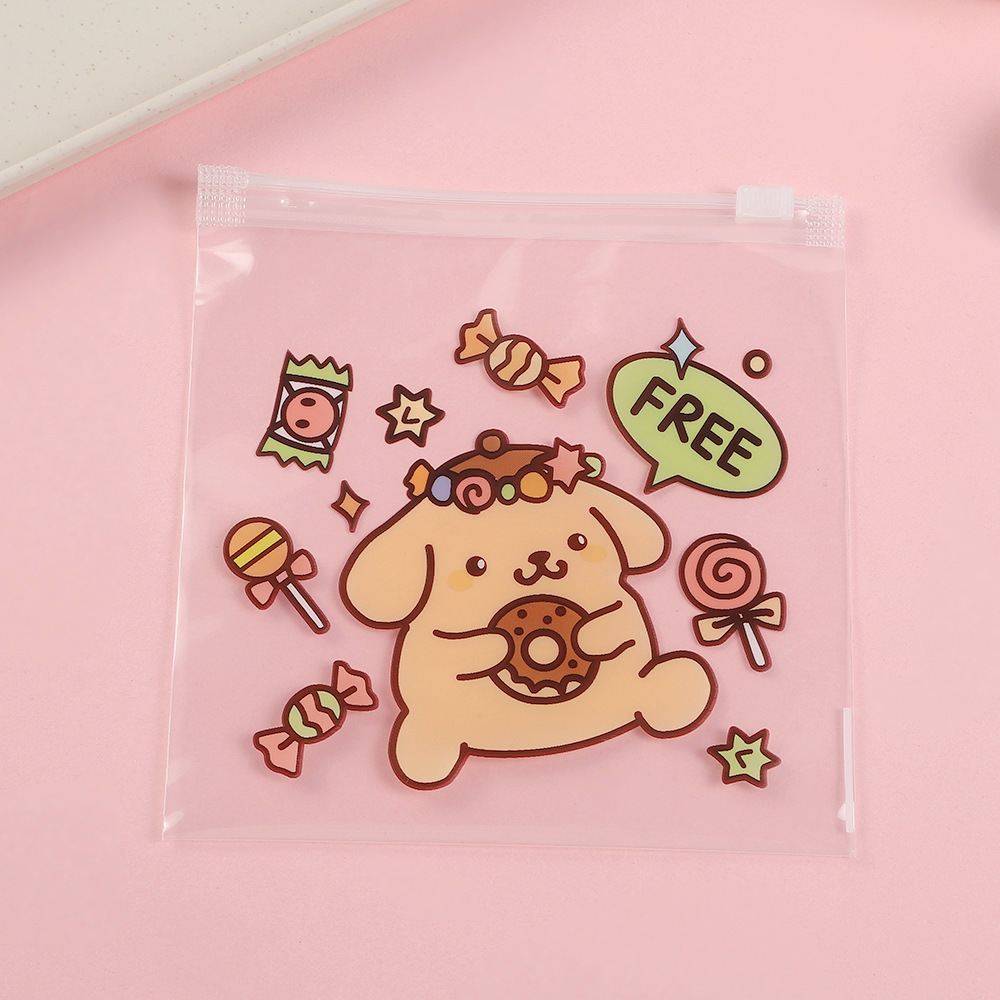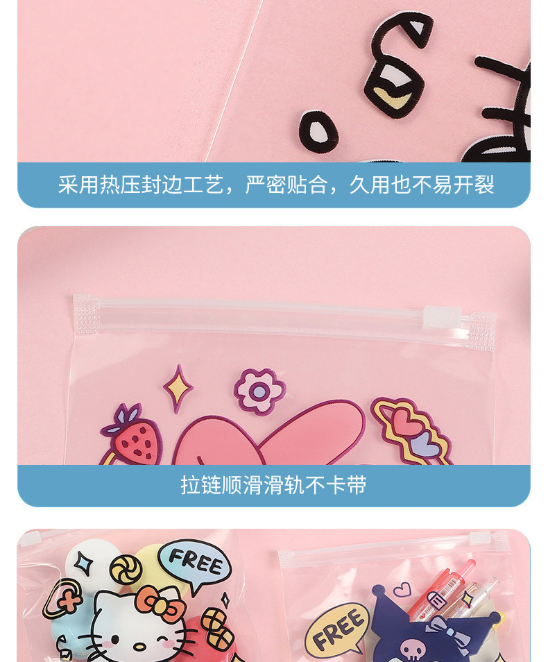 Sanrio 만화 귀여운 인쇄 편지지 보관 가방 투명 방수 PE 지퍼 가방 Kuromi 선물 지퍼 가방